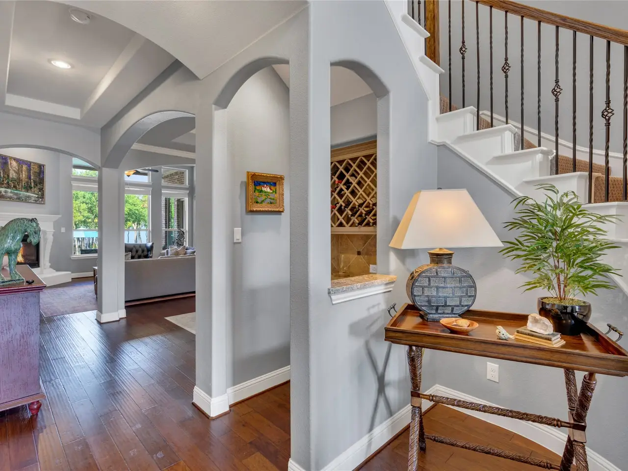 Experience true lakefront living with direct access to Lake Ray Hubbard from your own backyard. Nestled in the quiet, gated community of Waters Edge in Rowlett, this luxury property offers privacy, security, and a lifestyle centered around the water. The homes open floor plan flows seamlessly from the living room into the kitchen and dining areas, where walls of windows frame stunning lake views. The chefs kitchen features stainless steel appliances, granite countertops, an island, and a breakfast area that overlooks the water. The living room boasts a fireplace and expansive windows showcasing the backyard oasis. The first floor offers a private primary ensuite, an additional bedroom, a bonus room, and an executive office with French doors. Upstairs, youll find three bedrooms, two full baths, a game room with a covered balcony overlooking the lake, and an oversized media room. Outdoors, relax in the resort-style backyard with a saltwater pool, sun shelf, spa, and water features. A covered outdoor living center with TV hookup and multiple seating areas make entertaining effortless. A steel seawall is already in place, and boat docks are allowed. Perfectly located with convenient access to major highways, the property provides easy access to George Bush-190 without having to cross the lake, putting dining, shopping, and downtown Dallas within easy reach.