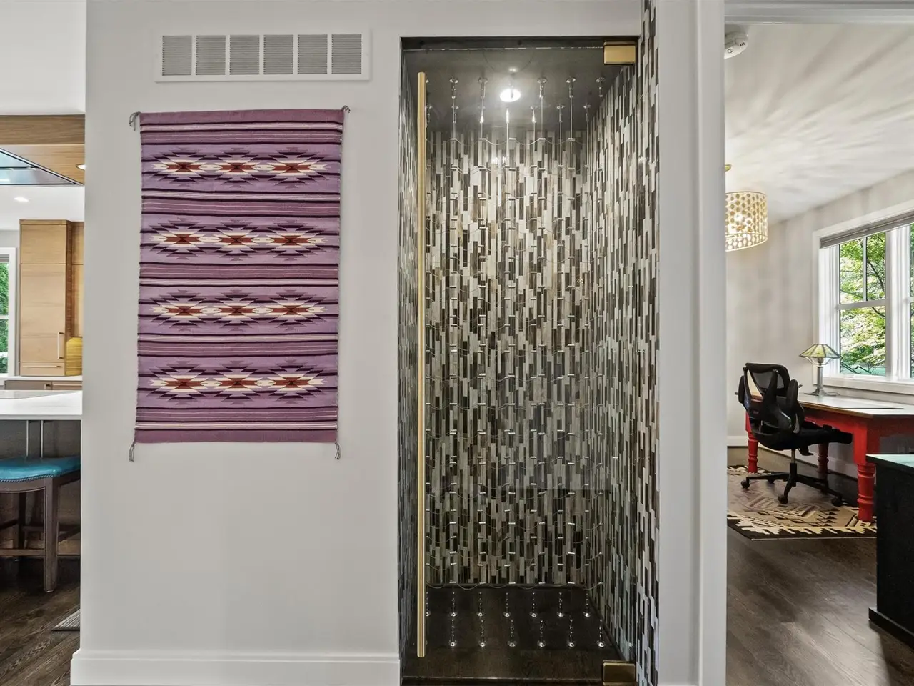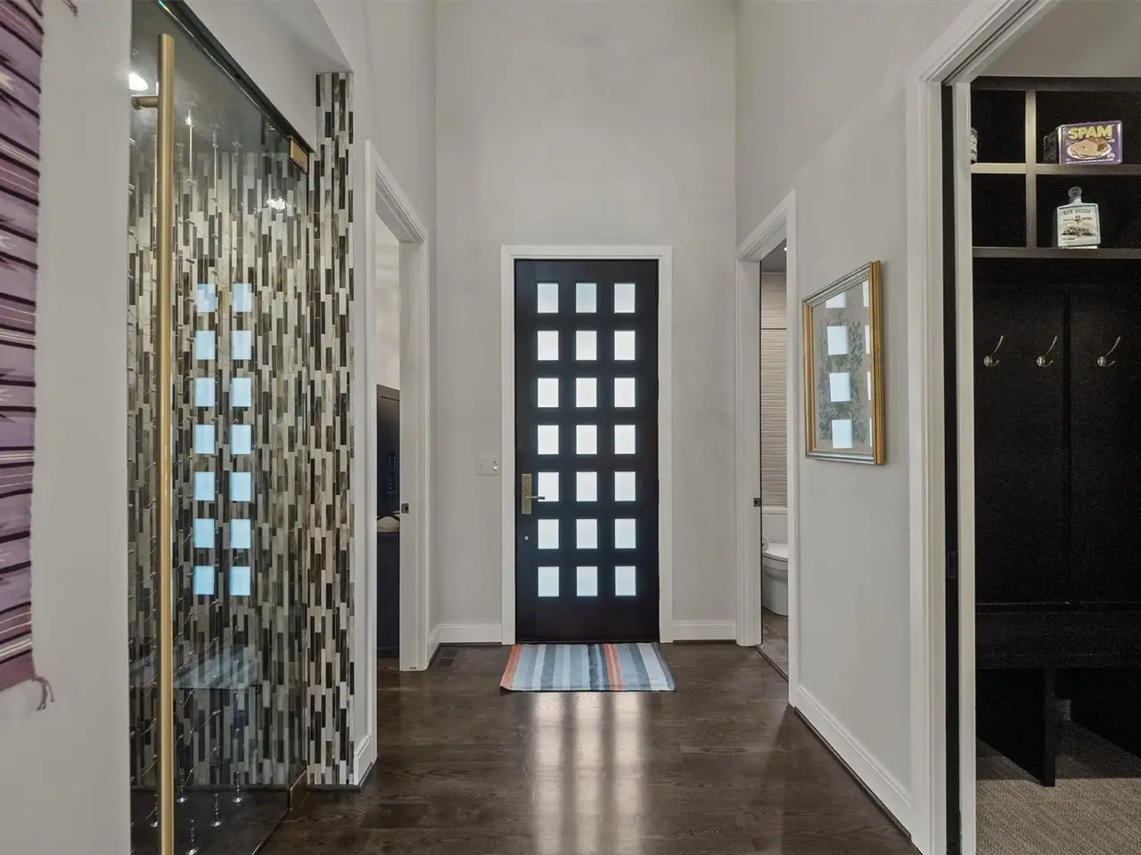 Custom mahogany and frosted glass front door