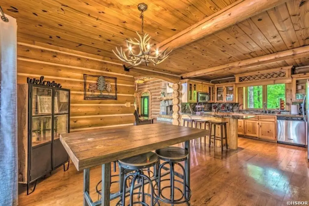 Custom log cabin with open floor plan