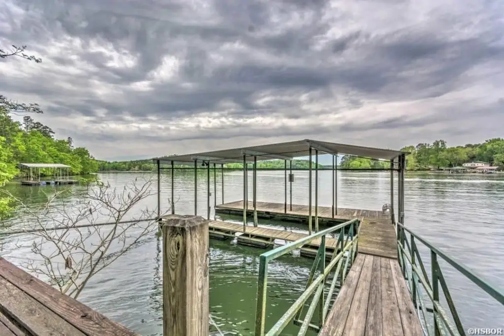 Breath-taking views with year around water makes this beautiful 2,960 sqft+/- remote log cabin on Lake Hamilton a gem! This home invites you to take advantage of its open floor plan, 4 gorgeous bedrooms, 2.5 bathrooms, a cozy loft, wet bar, outdoor fireplace, screened in patio, open air pavilion, 2 slip floating boat dock, over 200' of lake frontage, and much more. Currently, operated as one of the most successful vacation rentals on Lake Hamilton and in the area!