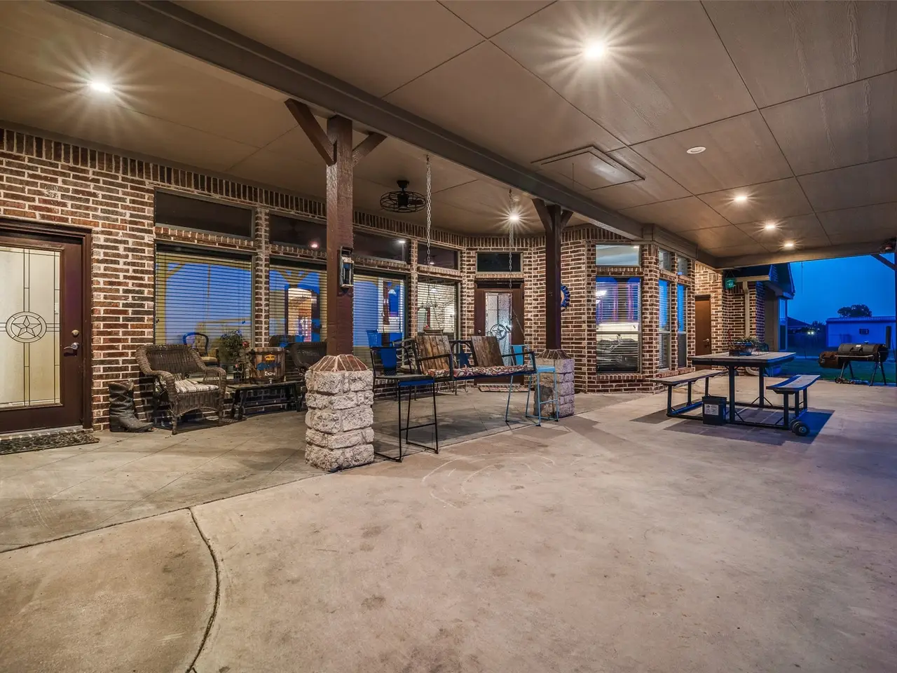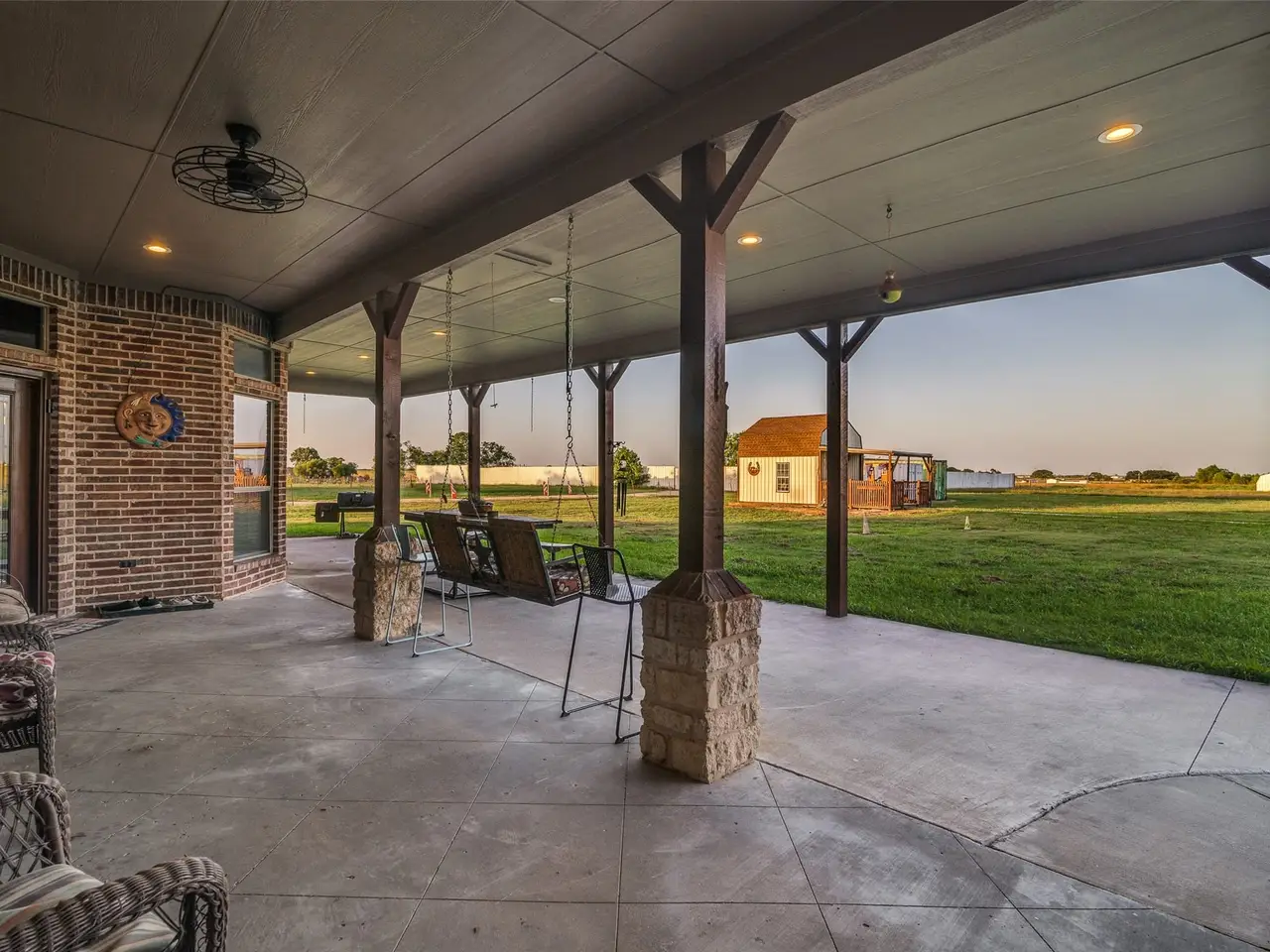 Spacious covered back porch with sunset views