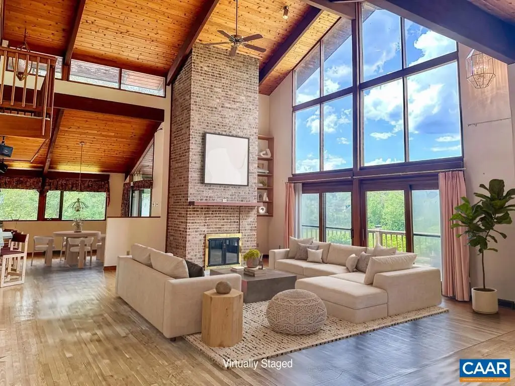 Stunning contemporary retreat on premier lot in Greene Mountain Lake. Built 1991, thoughtfully maintained, unique home offers soaring ceilings, walls of glass and panoramic views of the Lake. Enjoy morning, coffee or evening sunsets from expansive decks overlooking the water. The open concept living spaces are filled with natural light blending with modern architecture and the tranquility of a wooded waterfront setting. Minutes to Charlottesville. This home is a perfect blend of privacy and accessibility for the ideal get away or year-round living. Enjoy the photo gallery & plan to visit.