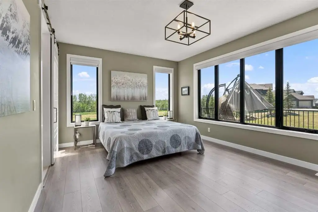 Discover this beautiful home just outside of Cochrane in Monterra. Offering nearly 3,400 sq ft of thoughtfully developed living space on a generous 0.45-acre lot, it delivers the top-tier essentials buyers crave. The main floor impresses with an open, airy design featuring vaulted ceilings that create a bright, inviting atmosphere. The spacious kitchen boasts a large island and soft-close cabinets, flowing seamlessly into the dining and living areas—ideal for hosting family and friends. The primary suite is a private sanctuary, with an elegant ensuite that includes a soaker tub, shower, and dual sinks, complemented by a large walk-in closet with built-in organizers. Convenience is key with a well-appointed laundry room located along the corridor to the heated, insulated triple garage. Step outside onto expansive decks—12x28 feet on both levels—that are perfect for outdoor entertaining. The lower deck features a hot tub, offering a relaxing retreat with stunning mountain views. Throughout the home, you’ll find custom built-ins, including a dedicated office with custom cabinetry and a built-in pantry for ample storage. The finished basement provides additional living space with two bedrooms, a spacious rec room that opens to a large patio, and a versatile three-season room equipped with retractable screens to enjoy the outdoors in comfort. This property combines luxurious finishes, practical design, and breathtaking natural scenery—making it an exceptional place to live and entertain.