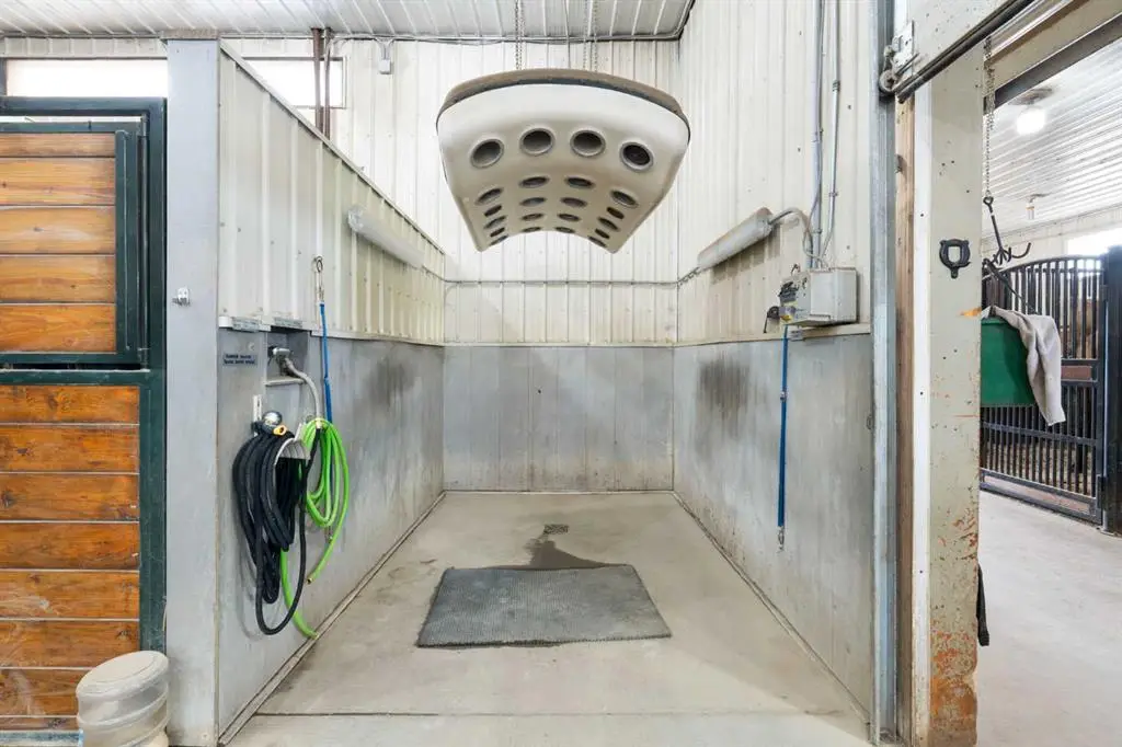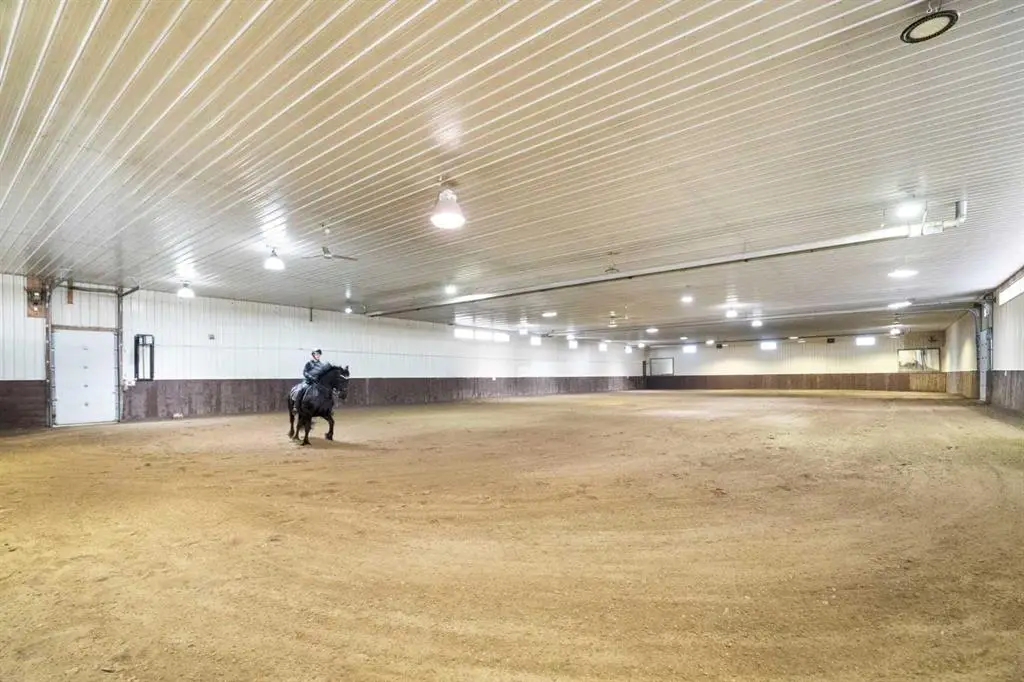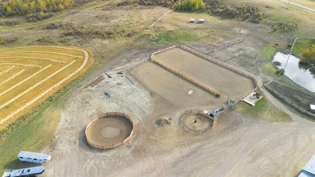 You can let the horses out of the barn—but you can’t take the passion out of a property like this. Thoughtfully designed for serious horse enthusiasts, this 107-acre equestrian facility just north of Calgary offers an exceptional blend of functionality, efficiency, and comfort. Every element has been designed with purpose, making daily operations smoother and the lifestyle truly rewarding. Step into a meticulously planned barn and arena complex that combines practicality with modern efficiency. Features include: heated indoor arena (80’ x 175’) with freshly releveled sand footing; two outdoor arenas (100’ x 210’ and 120’ x 140’); 65-ft, 8-ft-high round pen; hot walker; infrared solarium in the wash rack for year-round conditioning; auto waterers to all stalls; 17 paddocks and 24 shelters across the property; three ~10-acre pastures with excellent grass; insulated lean-to with bobcat bay; Energy Regulation System currently saving up to 28% on utilities; and three shipping containers (one fully converted for blanket storage with racks). The back 70+ acres is ready for the new year with a custom horse hay-blend, previously producing 200-280 round bales per season. Set on 107 private acres, this property offers space, seclusion, and natural beauty. The land is quiet and private, with neighbours rarely around, yet still benefits from school bus service with priority snow clearance and proximity to schools in Cochrane. The main residence is impeccably maintained and showcases a mountain view out of your living room windows. This bungalow has a walkout basement with illegal suite, and newer windows, electrical panel, furnace and hot water tank. A triple-car garage with 220V power adds versatility for tools or trailers, while a concrete parking pad out front adds even more practicality. This is not your average acreage — it’s a turnkey, intelligently designed equestrian operation with proven systems, established supplier relationships, and the perfect blend of form and function. If you’re looking for a facility that works as smart as you do, with the peace and privacy of Alberta’s countryside, this property delivers on every level. **See iGuide of House and Barn)