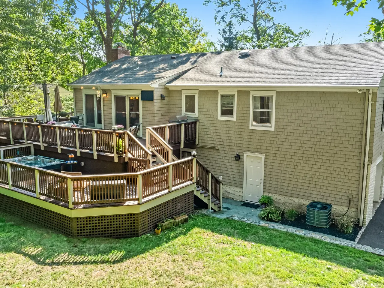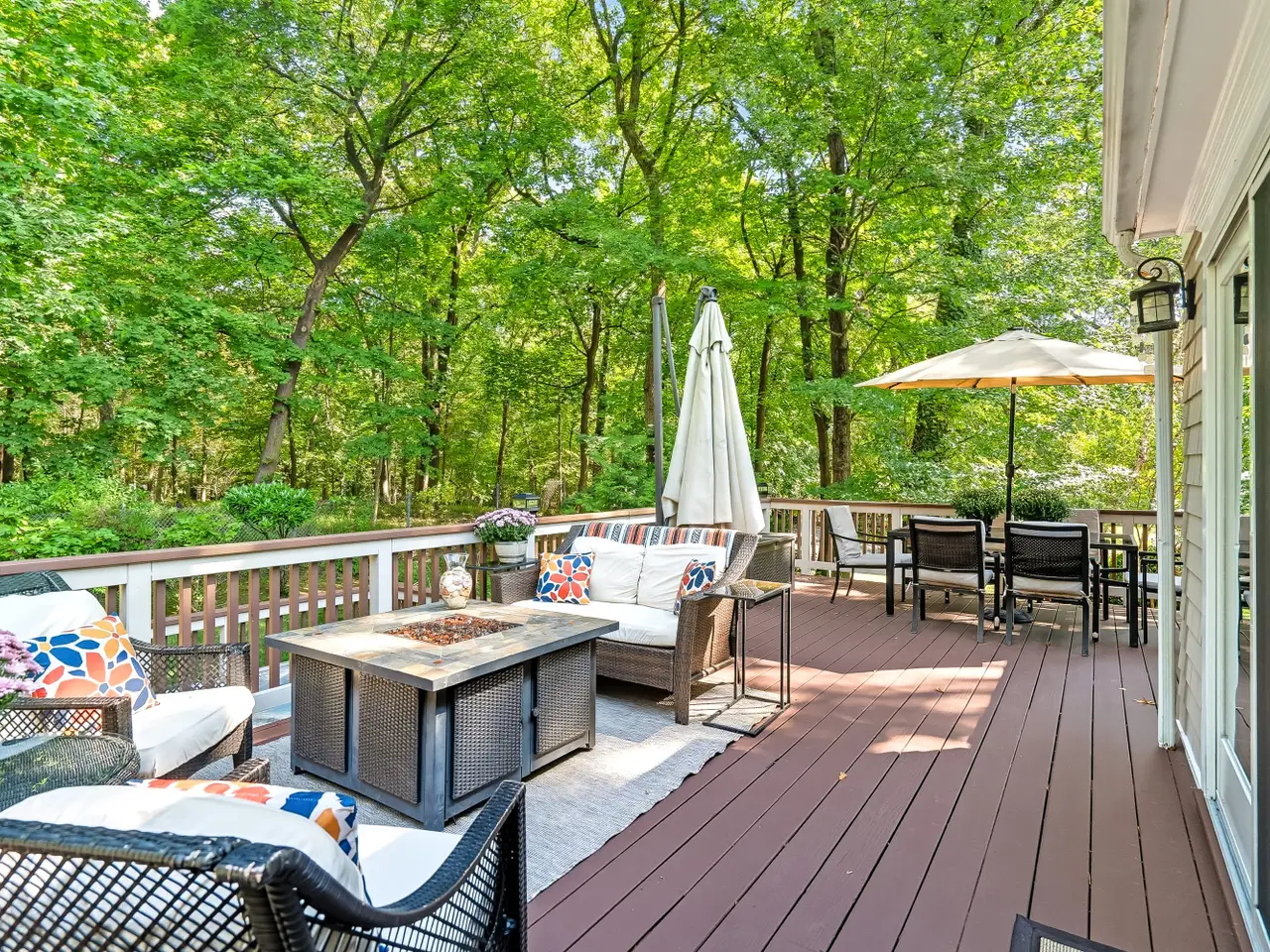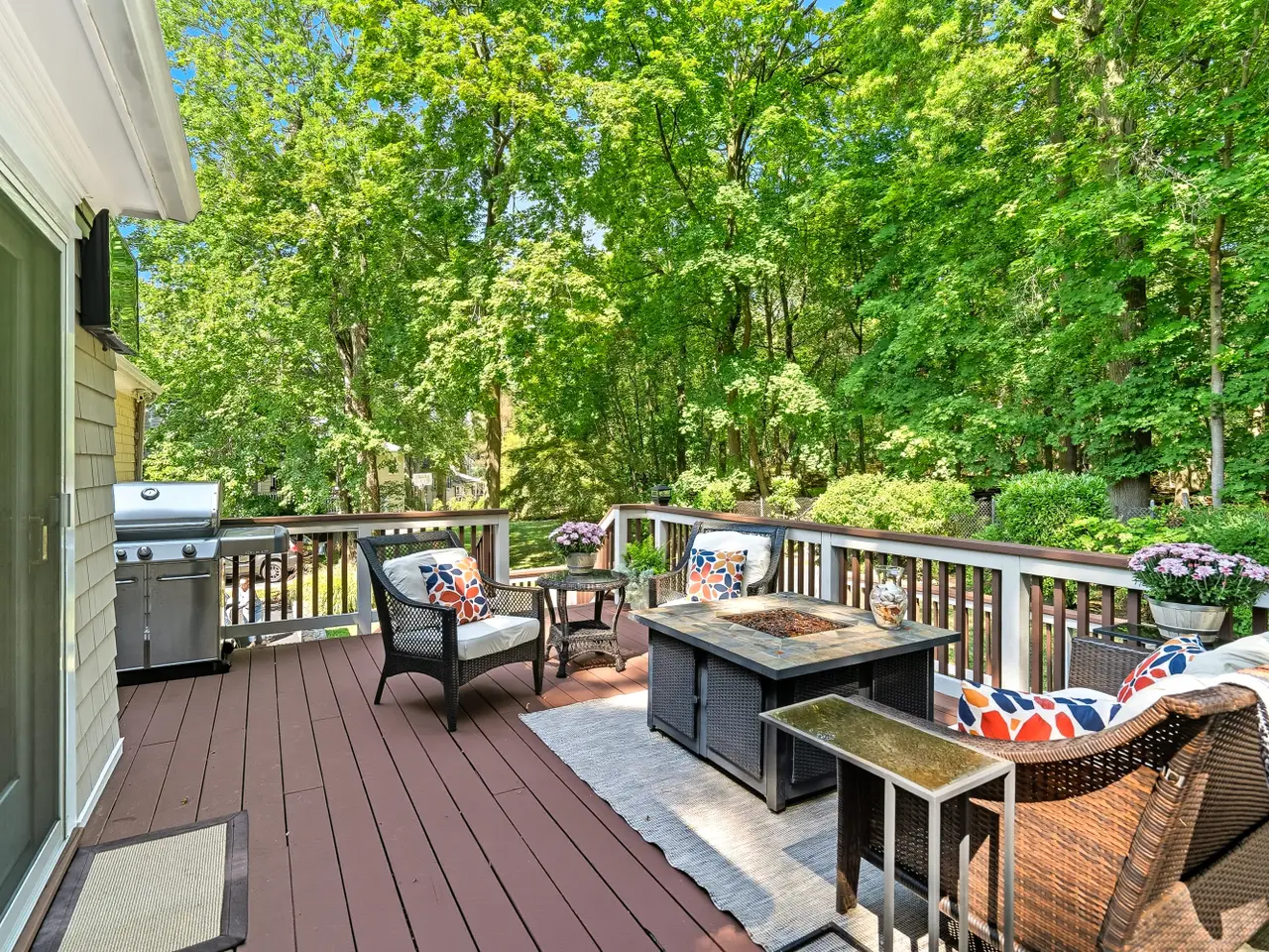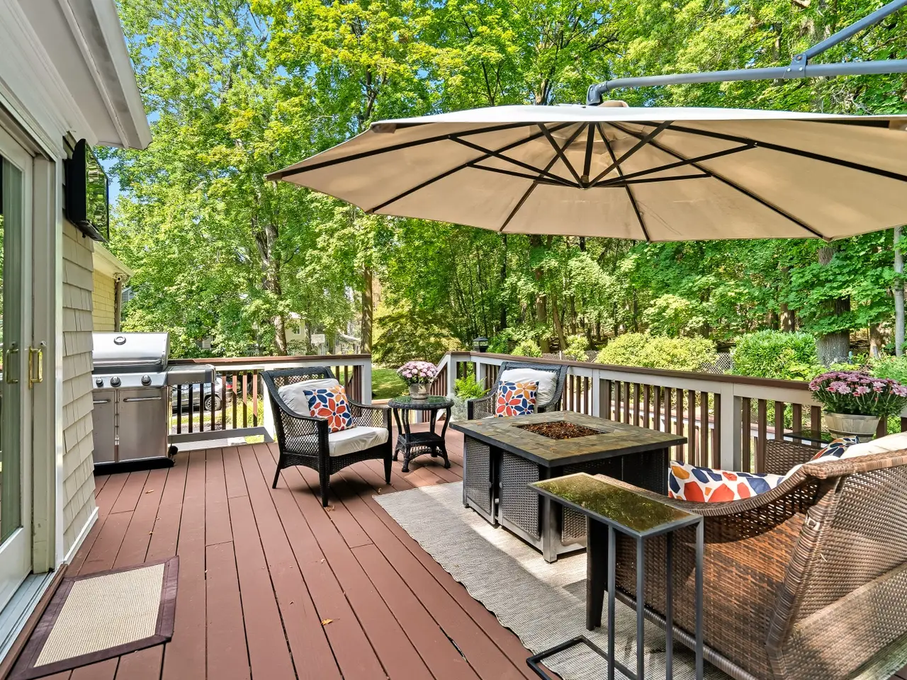 Set back and high above North Street on .38 ac, #80 is private & quiet. This Must-see location features an amazing OUTDOOR setting: 2-tiered deck overlooking Rye Nature Center creates a private sanctuary + addtl 3-Season living space. Covered lower patio & generous level backyard complete the outdoors. Step INSIDE to this MOVE-IN READY light-filled home. Open Floor Plan Lge LR opens to entertainment-size DR w/ glass doors to deck & wooded views. Kitchen w/ quartz countertops, new appliances, rich wood cabinetry & glass doors bringing nature inside. The KIT/DR combo offers great everyday family living & entertaining flow. Main Floor incl: Primary BR/ensuite Bath, Full BR, Queen BR, Double Vanity Hall Bath, Custom Closets throughout. Lower-Level living: Lge Fam Rm/Rec Rm w/fireplace, Doors to patio & backyard + 4thBR /Home Office/Playroom offers flexibility to fit all lifestyles. Completing this level: Full Bath, Laundry Rm, RARE 550+ 2Car GAR. Addtl highlights: NEW UPDATES throughout including brand new roof, Ring system, outdoor TV/Audio wiring, hot tub, gas grill hook-up, radiant-heated upper baths, storage galore. Centrally located, walk to all schools, downtown Rye, and equidistant to Rye & Harrison trains.