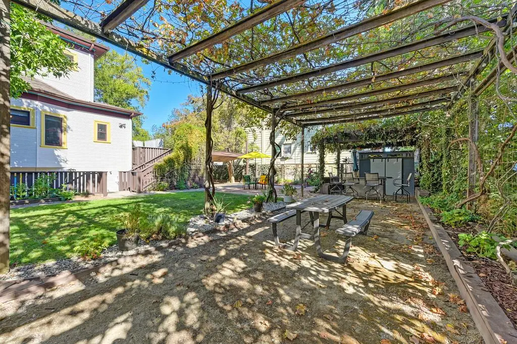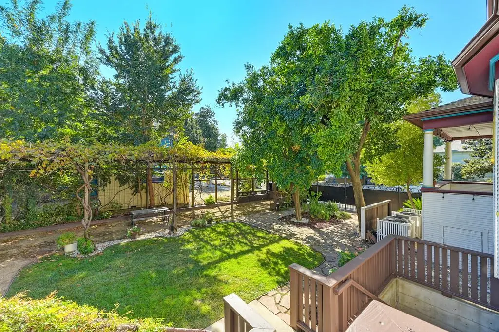 Gorgeous 1912 craftsman home in Mansion Flats w/ period details on huge corner lot updated for modern living. Gracious entry w/ wrap-around porch leads to an open floor plan w/ cove ceilings, Bradbury wallpaper, timeless wainscoting and original wood floors. The front parlor w/ corner window seat opens to a den w/ cozy gas stove and bay window. The formal dining room has wood clad beamed ceilings w/ service window into a stylish chef's kitchen w/ quartz counters, stainless steel appliances, gas range and abundant storage. Off the kitchen is an enormous deck for social gatherings. A grand stairway leads upstairs to the main bedroom w/ remodeled en-suite bath and walk in shower. Two guest bedrooms share an updated guest bath including dual vanity and claw foot tub under stained glass windows. The remodeled lower level provides a large in-law suite w/ private entry. The large side yard is a park-like setting w/ driveway and pedestrian gates, custom iron fence, storage shed, mature orange trees, raised planter bed, flagstone patio and bocce ball court under a grape vine covered pergola. Energy updates include custom dual pane windows, two zone HVAC, and a tankless water heater. Centrally located w/ walking distance to light rail, parks, shopping, restaurants and entertainment.