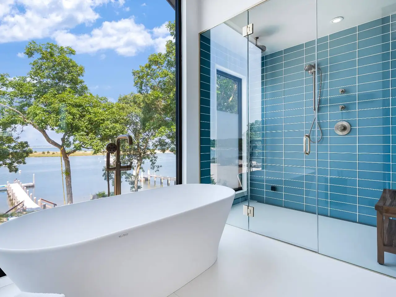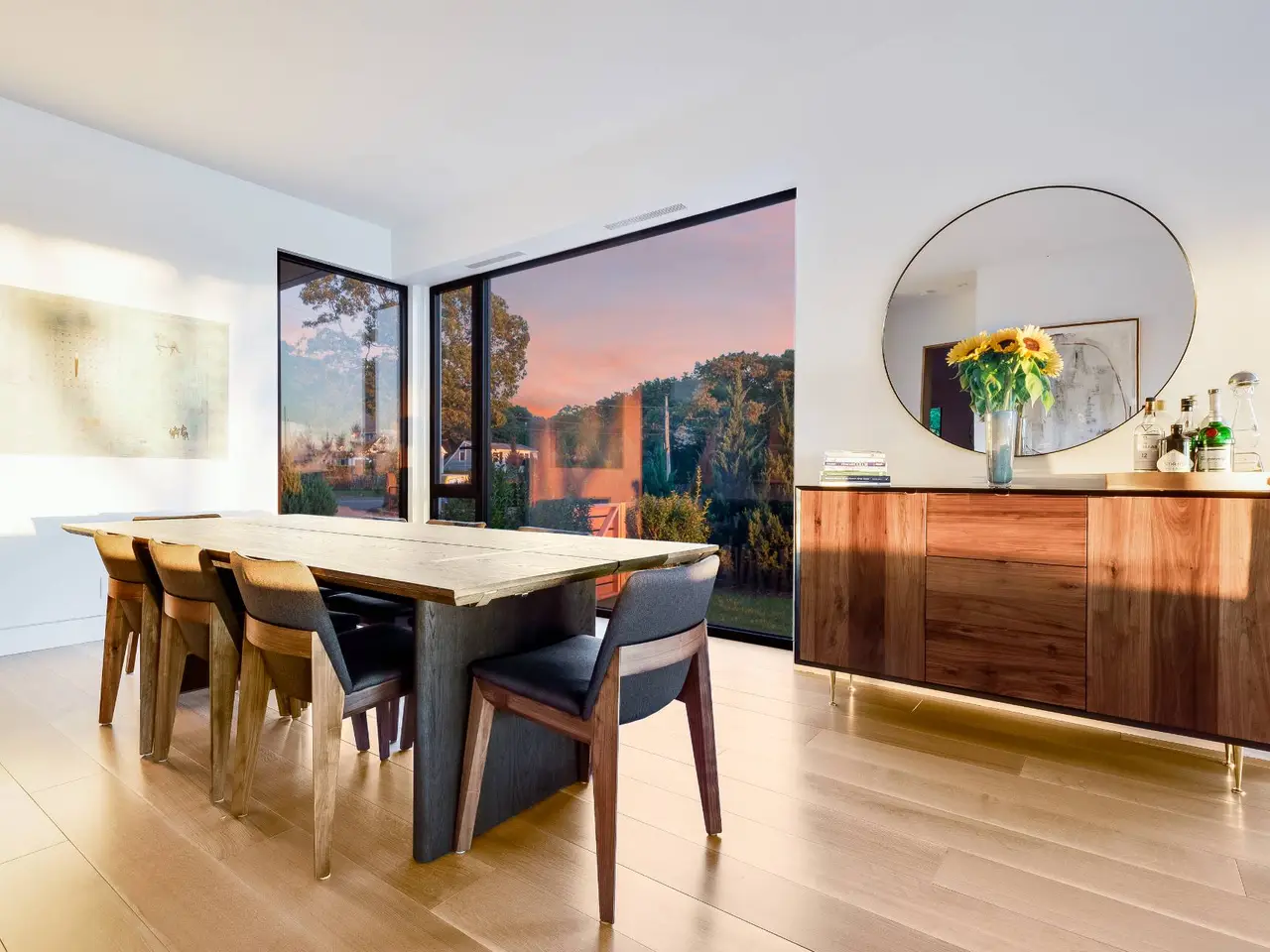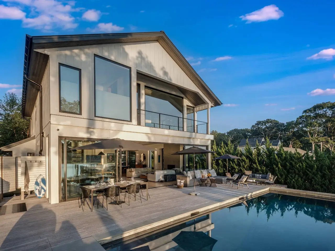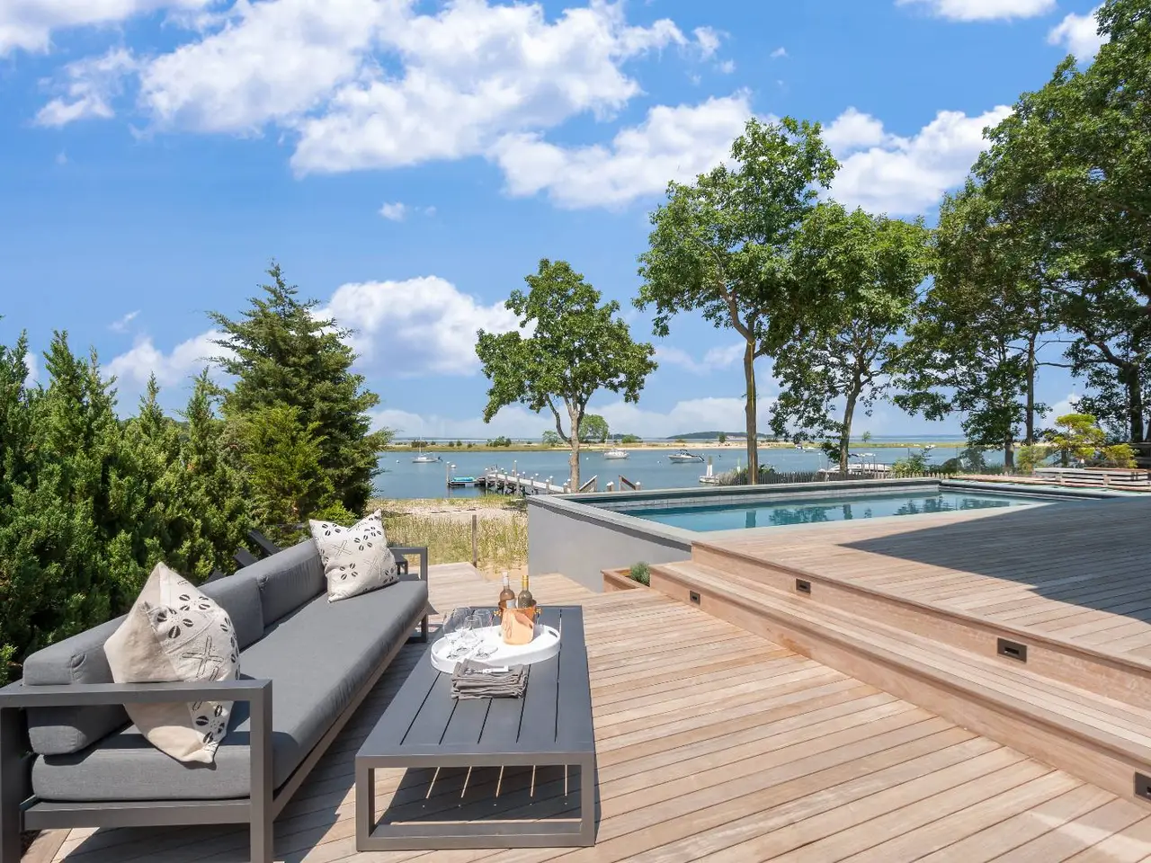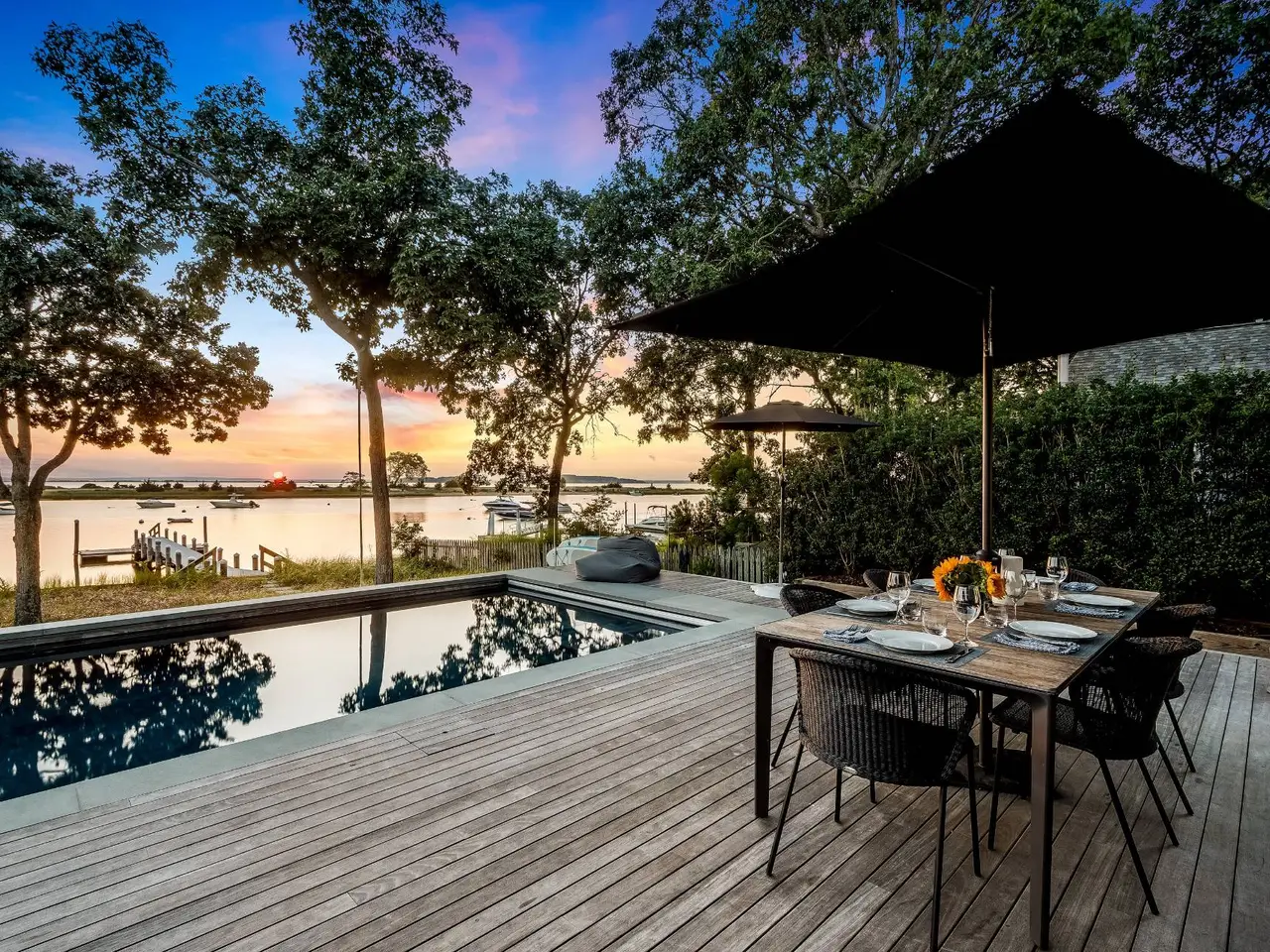 Beautiful Bucolic Waterfront -- Best Sunsets in the Hamptons. Overlooking Noyack Bay, this newly constructed, triple-mint, modern manor boasts breathtaking water views and stunning sunsets. The soaring floor to ceiling windows, expansive decking, heated gunite waterside pool, plush outdoor furniture, cozy fire pit, outdoor shower and Lynx professional grill, adorn the waterside veranda, creating a grand and sumptuous Hamptons experience. So, too, this property has a rare and coveted private deep water dock for backyard paddle boarding, kayaking or...bring your own boat. Ideal for entertaining, this home is appointed with an Il Forno pizza oven, sous vide technology, an outdoor herb garden and an enviable array of Japanese chef's knives, surely to fascinate the boldest of home chefs. With rich oak, warm walnut and modern steel finishes this property exudes serenity and grace and is sure to impress. Impeccably decorated and beautifully appointed, this modern retreat is mired among majestic marine sea grasses which, like a metronome, sway in time to the warm coastal breezes. Conveniently located in the up-and -coming beach community of Pine Neck. Minutes from ocean beaches, a stone's throw from historic downtown Sag Harbor and a short drive from Bridgehampton, this 5,200 square foot, five bedroom, six bath jewel is not to be missed.