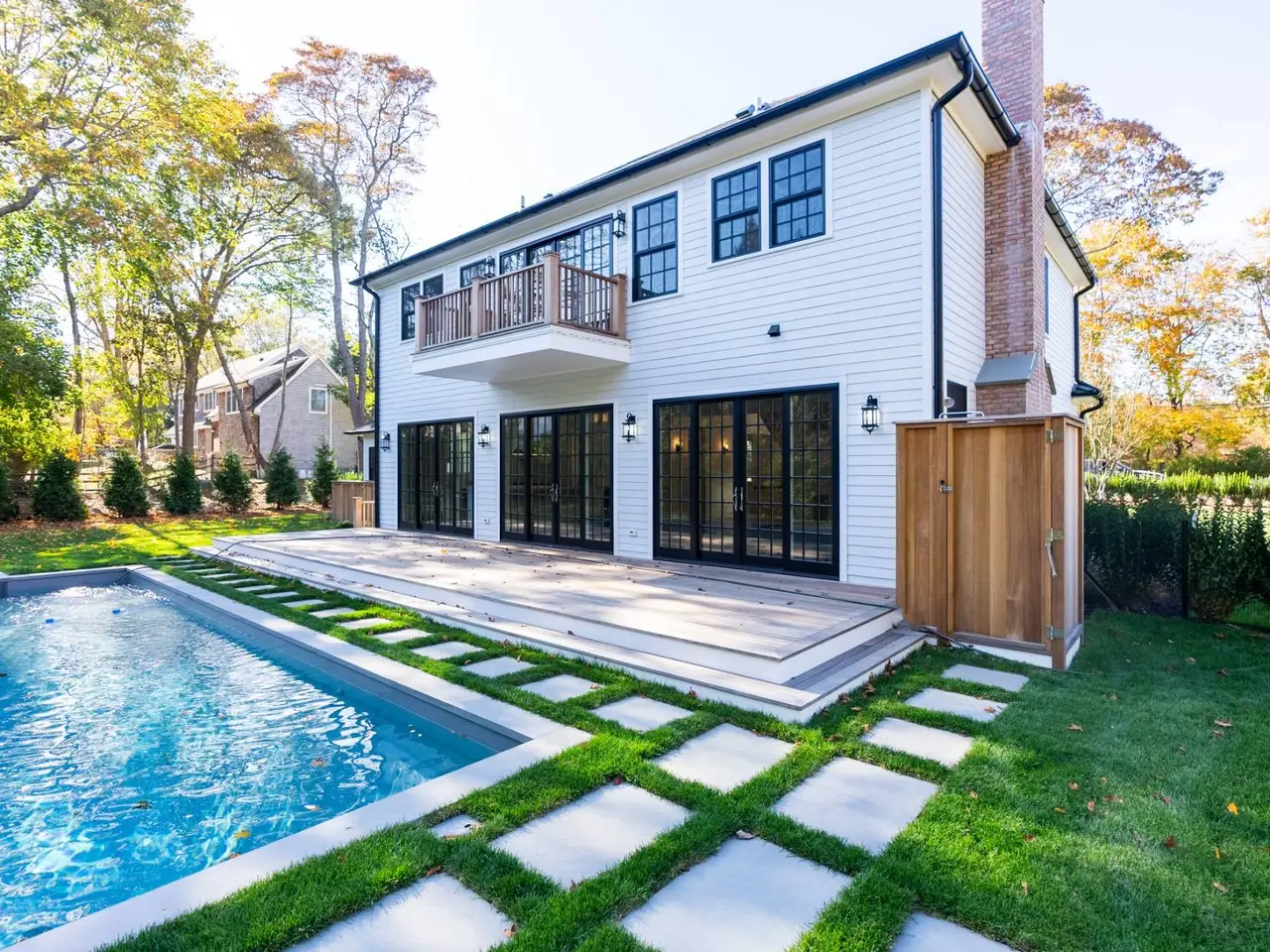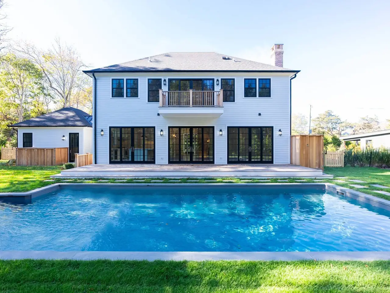 Welcome to 166 Ferry Rd, a luxurious black and white batten board home nestled on .48 acres in the picturesque hamlet of North Haven, Sag Harbor. This exquisite new construction offers a total of 4,200+/-sf of thoughtfully designed living space, featuring five bedrooms and five full and one half baths. Step inside to a grand great room, complete with a wood-burning fireplace, that seamlessly integrates indoor and outdoor living with views of the backyard and pool. The spacious gourmet kitchen is a chef's dream, boasting island seating, stainless steel appliances, and ample counter space. Retreat to the master bedroom, which includes a private balcony overlooking the pool and lush grounds. The lower level is designed for convenience and entertainment with a guest room with full bath, a family room/theatre, and space for a small wine cellar. A separate outdoor entrance adds an extra layer of accessibility. Enjoy the prime location only a stone's throw to Foster Memorial Beach and the charming Sag Harbor Village, offering a perfect blend of tranquility and convenience. Priced at only $5.75m, this property is a must-see for those seeking luxury and comfort in North Haven Village.