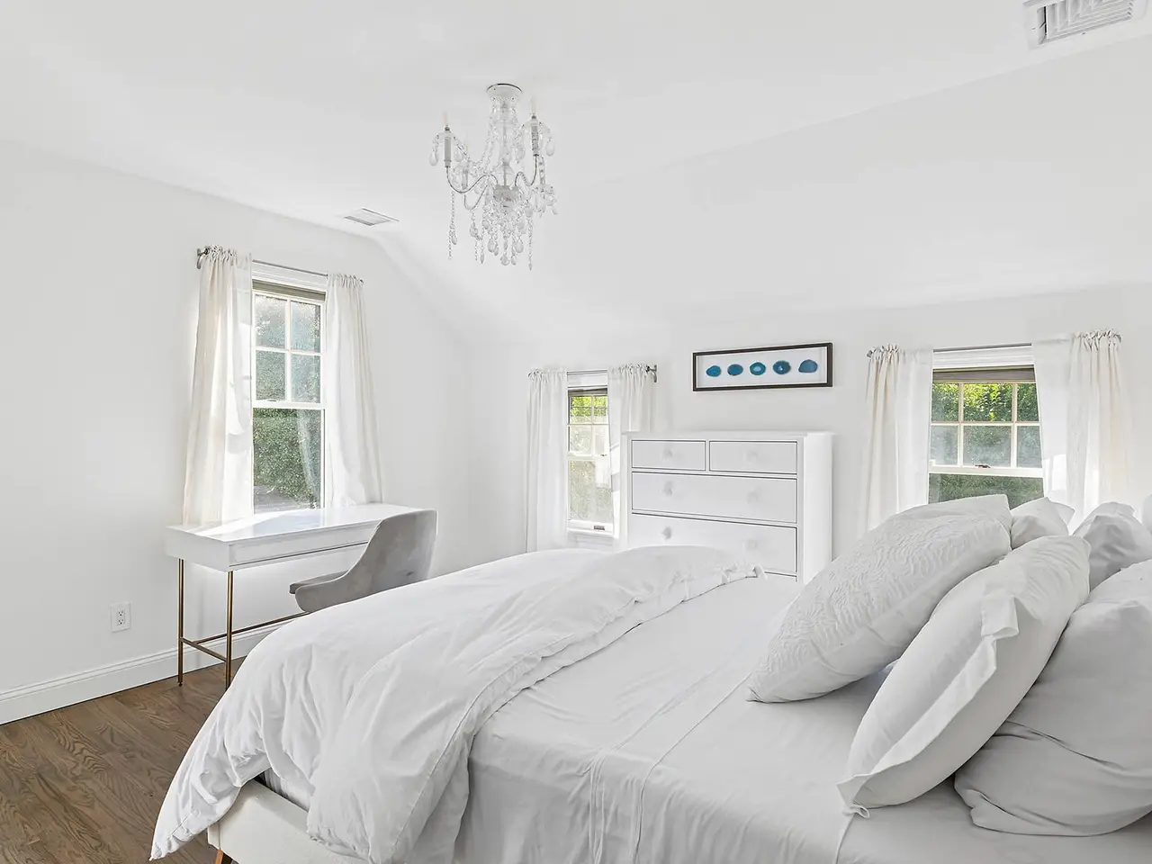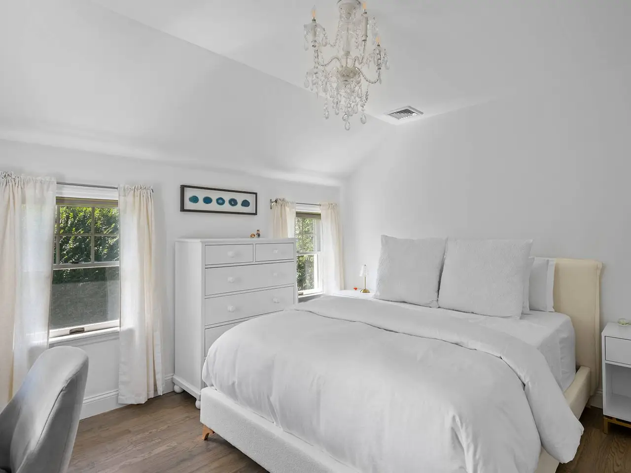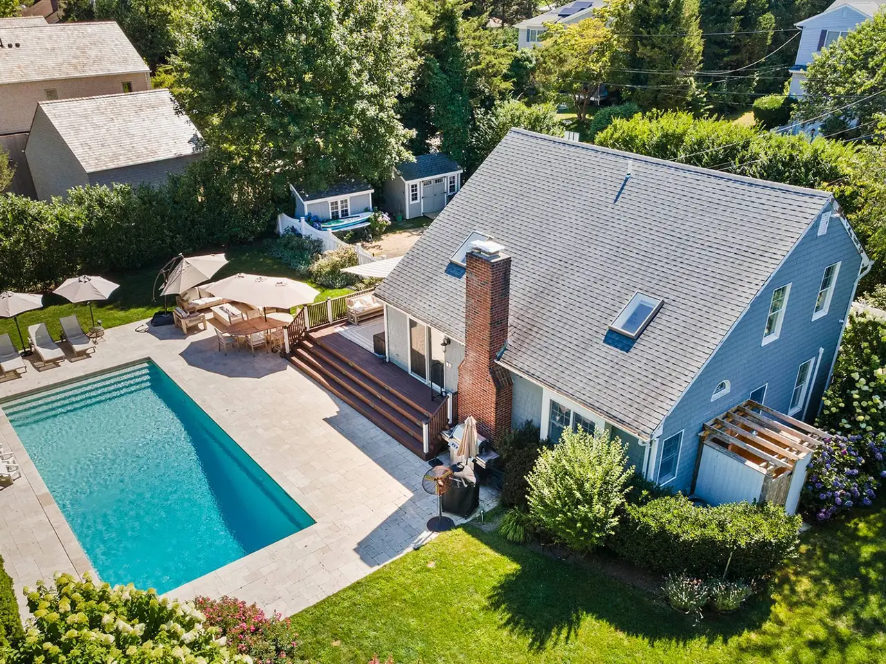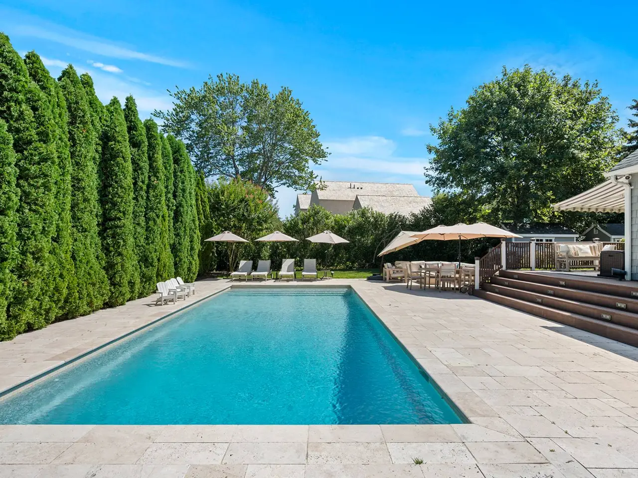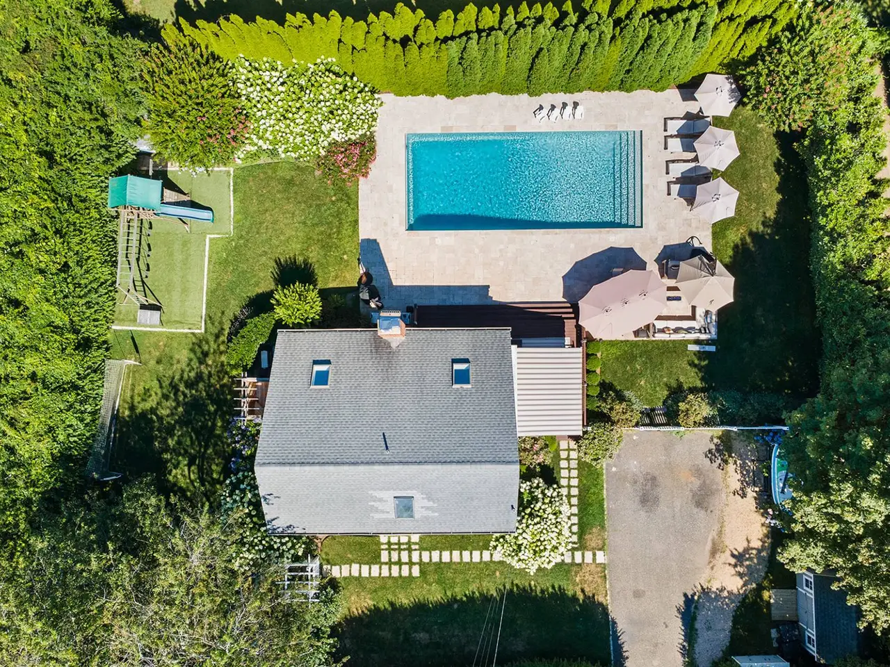 RP#: 240817: Sag Harbor Rental - Bay Point Spend your summer in style at this beautifully updated 4-bedroom, 3-bath rental in the coveted waterfront community of Bay Point, Sag Harbor. Just minutes from the village and a moments from Foster Memorial Beach, this tastefully appointed home offers a perfect blend of modern comfort and Hamptons charm. Step inside to an open-concept living area with cathedral ceilings and natural light streaming through skylights. The gourmet kitchen features top-tier stainless steel appliances-including a Bertazzoni range-white quartz countertops, a farmhouse sink, and stylish grey-beige-white interior tones throughout. The main-level primary suite offers a private entrance and barn doors for added seclusion. Upstairs, two guest bedrooms share a full bath with elegant finishes and raindrop showerheads. The lower level is ideal for entertaining, complete with a spacious media lounge, wet bar, a fourth bedroom, and an additional full bath featuring a glass walk-in shower and designer tile. Outside, enjoy a beautifully landscaped and private setting complete with a 20' x 40' heated in-ground pool, outdoor shower, and multiple seating areas for lounging or dining alfresco. Located just 1.5 miles from Sag Harbor Village and minutes from Serene Green Organic Farmstand, this home offers convenience, tranquility, and access to everything the Hamptons has to offer-including those unforgettable west-facing sunsets at the nearby beach.Listing ID 924714