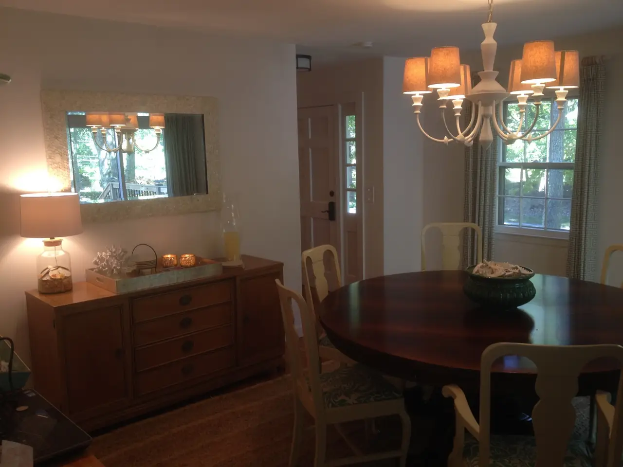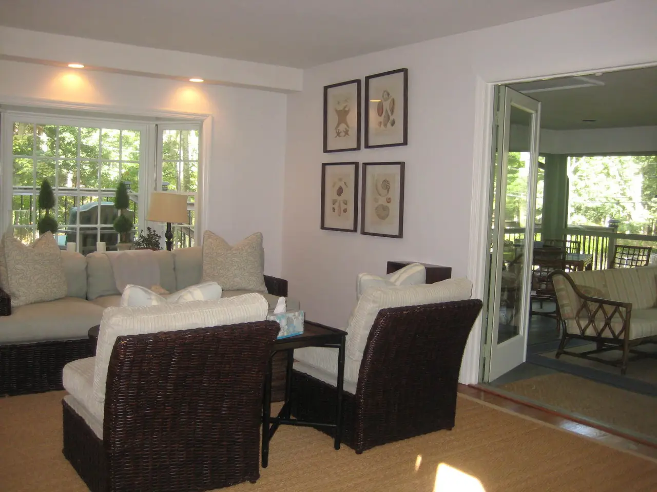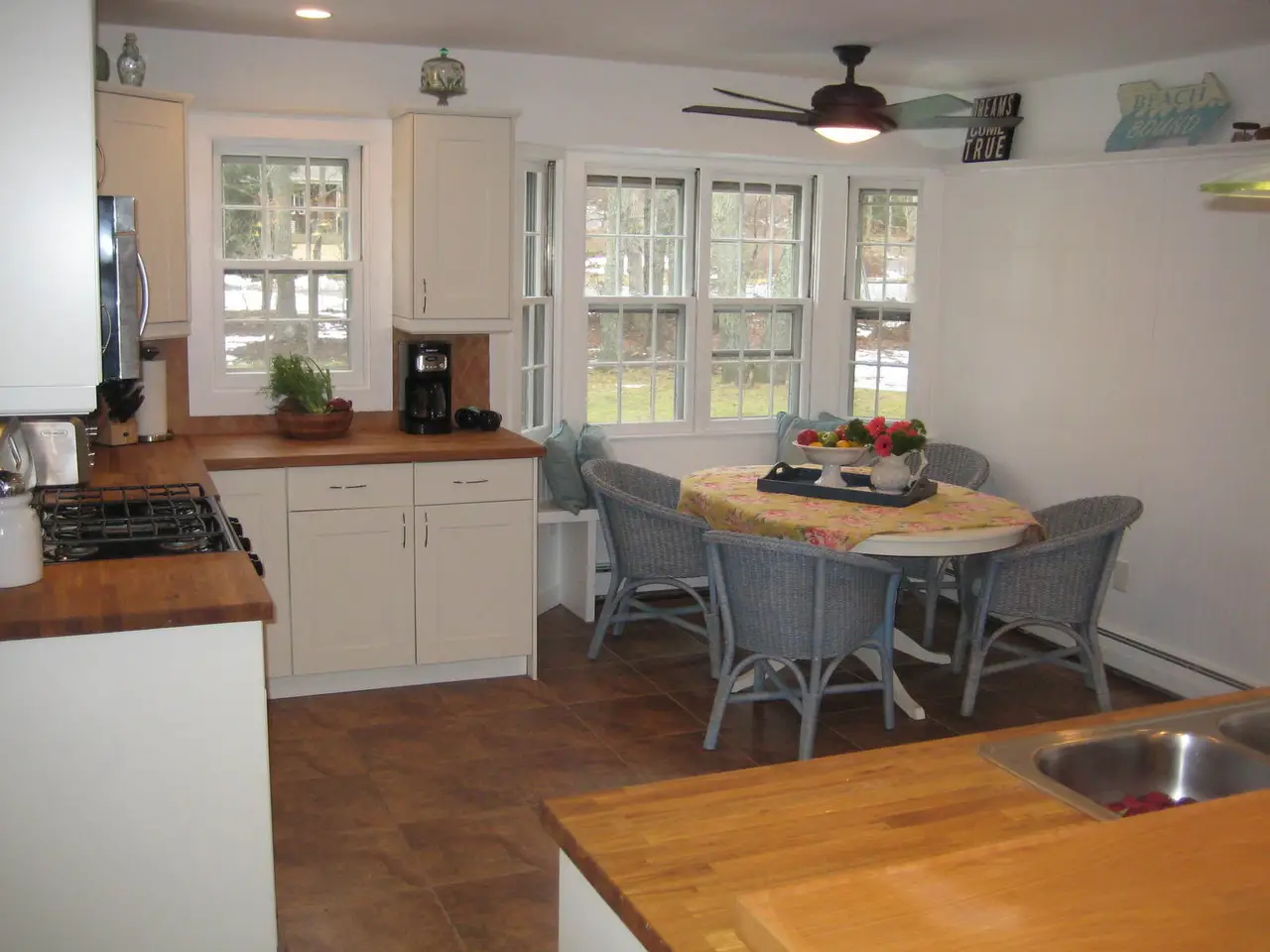 Rental Reg. # RP230430. This shingled Cape-styled home offers over 2,000 square feet of living space with an eat-in kitchen, dining room, living room, screened-in porch, four bedrooms, and 2 bathrooms. Outdoors is a large patio with outdoor dining, heated gunite pool with bluestone surround and lounge area. A great summer rental in Sag Harbor. Listing ID: 756366