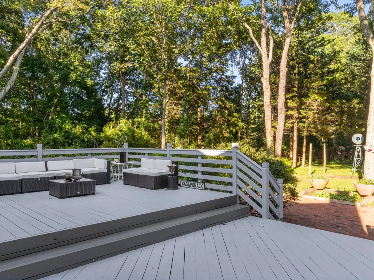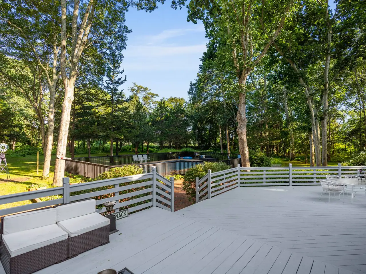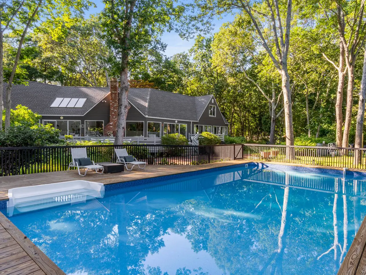 Tucked away on a secluded 2.1+/- acre wooded lot in one of Sagaponack's most coveted enclaves, 139 Greenleaf Lane offers an exquisite blend of privacy, elegance and timeless Hamptons charm. Set at the end of a quiet, tree lined cul-de-sac surrounded by beautifully landscaped homes, this property is a rare find. From the moment you enter into the foyer you are created by soaring ceilings, expansive windows and skylights that bathe the interiors in natural light and give the feeling of being outside in nature. The open concept living, dining, kitchen and sitting areas are designed for effortless entertaining, with seamless access to the outdoors through sliding glass doors that lead to a large multi-level deck. The primary suite is thoughtfully located in its own wing, featuring a wall of windows, walk-in closet, a tiled bathroom with separate tub and shower and deck access. On the other side of the home, two well-sized guest bedrooms share another full bath, accompanied by a powder room and convenient laundry space. The second floor features a generous fourth bedroom with built-ins and an adjacent sitting area. The backyard is a true oasis, surrounded by mature trees that ensure privacy. The expansive deck offers ample space for gatherings, barbecues or simply relaxing. Enjoy the in-ground pool set against the peaceful wooded backdrop. The long driveway ensures a quiet secluded setting, yet the location provides quick access to pristine ocean beaches, Wainscott, Sag Harbor, golf courses and popular local spots like Townline BBQ and Wlffer Winery. And, you have room for tennis! Listing ID:924610