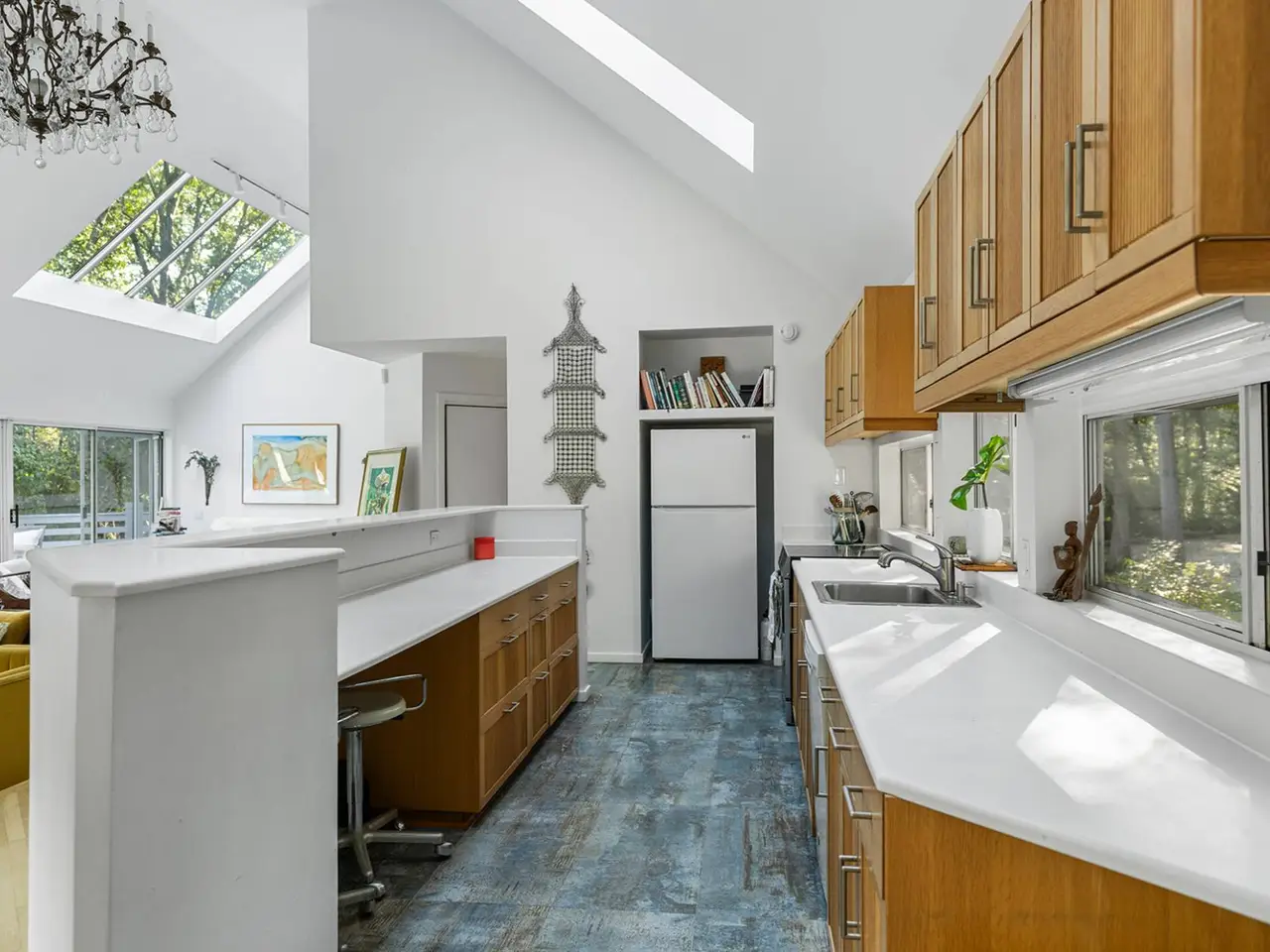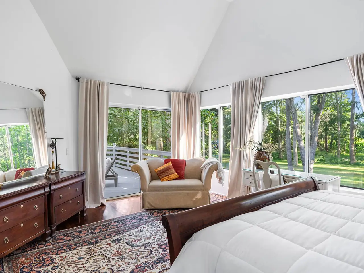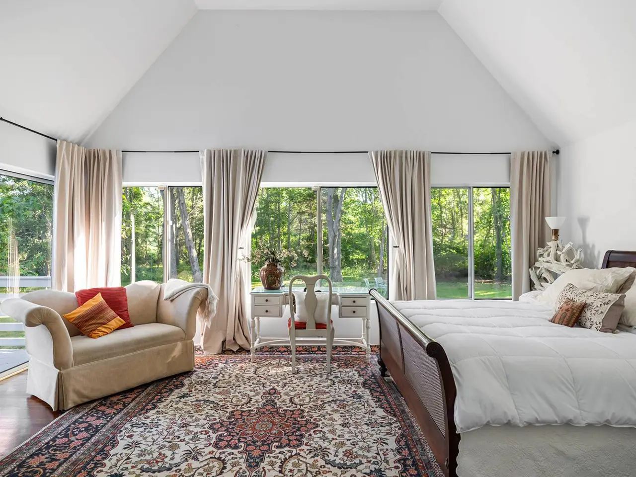 Tucked away on a secluded 2.1+/- acre wooded lot in one of Sagaponack's most coveted enclaves, 139 Greenleaf Lane offers an exquisite blend of privacy, elegance and timeless Hamptons charm. Set at the end of a quiet, tree lined cul-de-sac surrounded by beautifully landscaped homes, this property is a rare find. From the moment you enter into the foyer you are created by soaring ceilings, expansive windows and skylights that bathe the interiors in natural light and give the feeling of being outside in nature. The open concept living, dining, kitchen and sitting areas are designed for effortless entertaining, with seamless access to the outdoors through sliding glass doors that lead to a large multi-level deck. The primary suite is thoughtfully located in its own wing, featuring a wall of windows, walk-in closet, a tiled bathroom with separate tub and shower and deck access. On the other side of the home, two well-sized guest bedrooms share another full bath, accompanied by a powder room and convenient laundry space. The second floor features a generous fourth bedroom with built-ins and an adjacent sitting area. The backyard is a true oasis, surrounded by mature trees that ensure privacy. The expansive deck offers ample space for gatherings, barbecues or simply relaxing. Enjoy the in-ground pool set against the peaceful wooded backdrop. The long driveway ensures a quiet secluded setting, yet the location provides quick access to pristine ocean beaches, Wainscott, Sag Harbor, golf courses and popular local spots like Townline BBQ and Wlffer Winery. And, you have room for tennis! Listing ID:924610