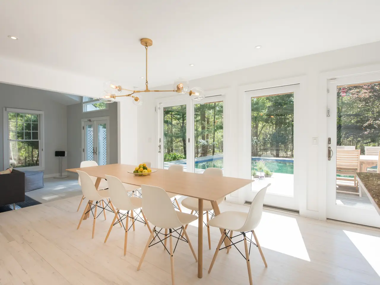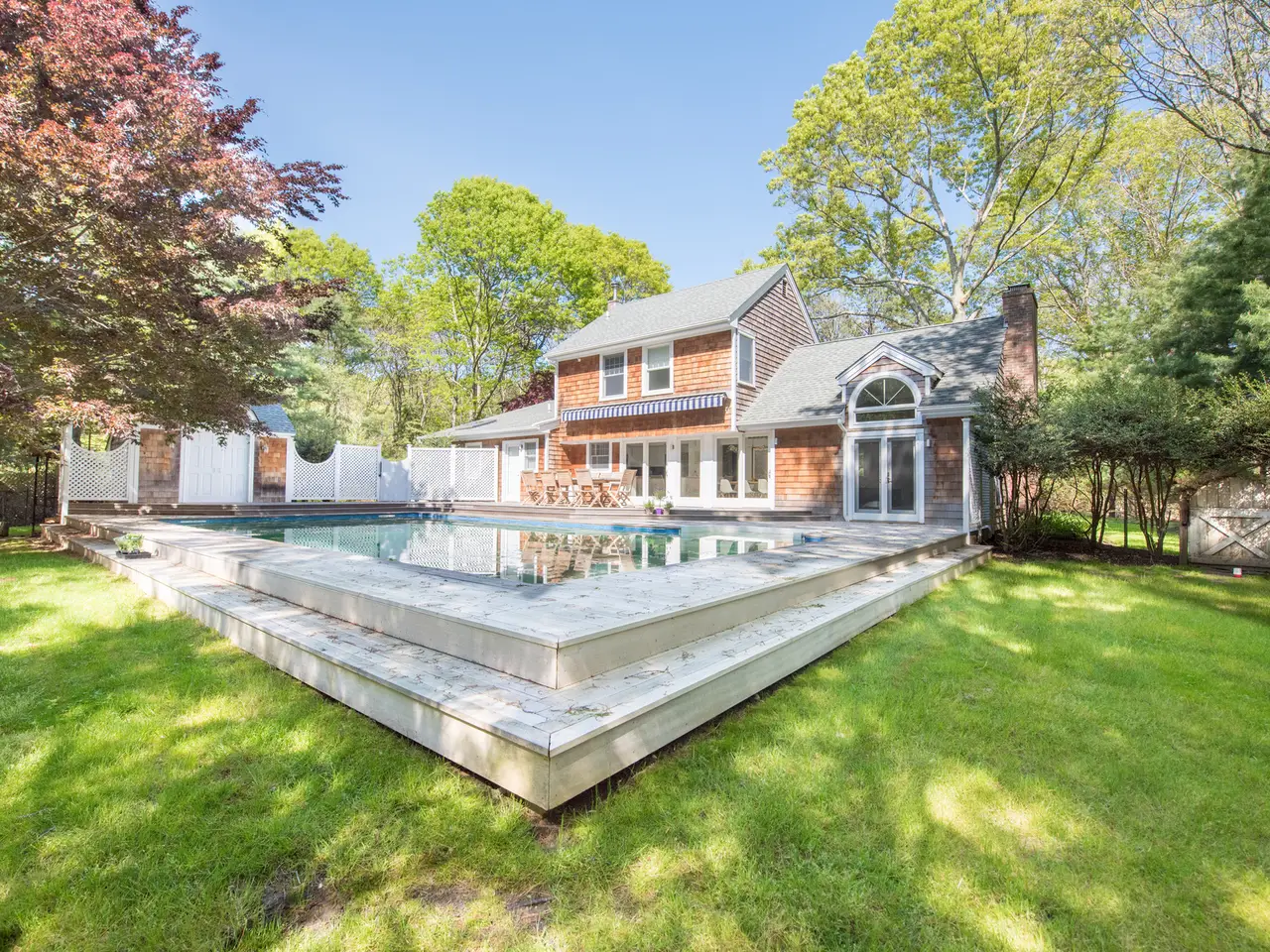 This fabulous totally renovated home is located a stone's throw to Wolffer Winery and five minutes to gorgeous ocean beaches, Sagg Main and Bridgehampton Village. The home boasts four spacious bedrooms and three tastefully redone bathrooms with brand new linens. Huge windows allow for ample natural light to flow through the large kitchen, dining room, family room as well as the separate living room. The entire house has been fitted with bright and beachy, all new modern furniture! Step outside to find a heated salt-water pool, mahogany deck with remote controlled retractable awning and a pool cabana with sofa. A perfect summer getaway!