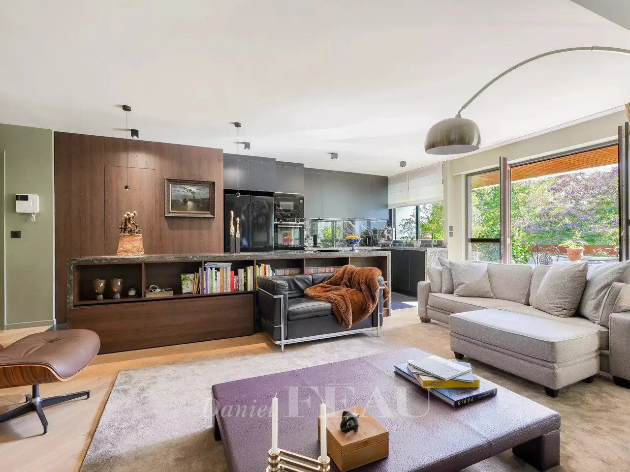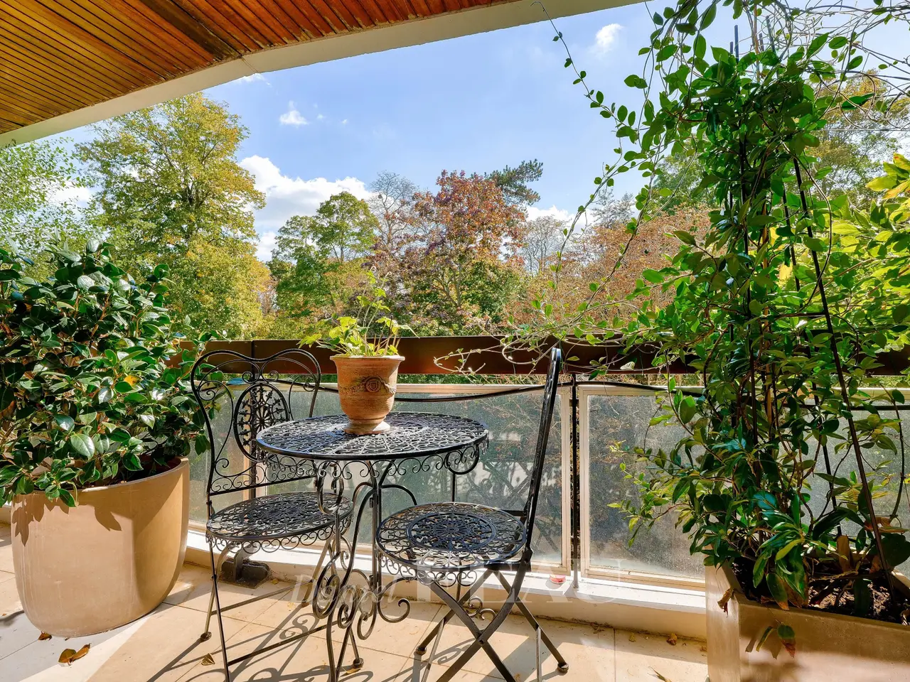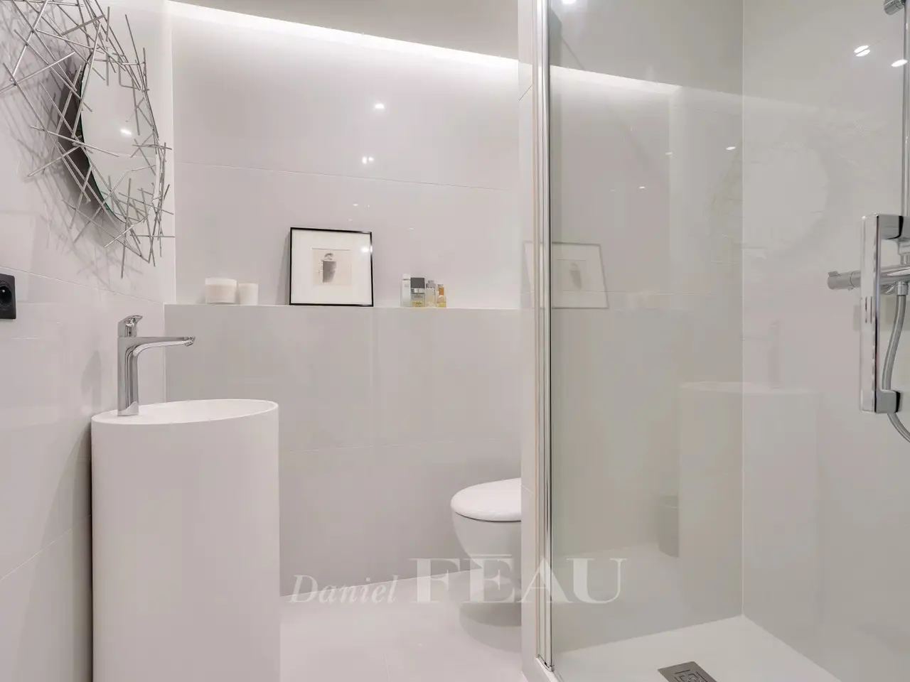 This elegant 101 sqm south-facing apartment is on the 4th floor of a peaceful and perfectly maintained mid 20th century residence with a lift. Renovated throughout and beautifully appointed, it includes a 60 sqm living/reception room with a fully equipped open-plan kitchen opening onto a continuous balcony enjoying an open view over leafy greenery, a master suite with a shower room, a second bedroom opening onto a balcony, and a shower room. A 3rd bedroom would be possible. With a double lock-up garage and a large cellar. In a convenient location near the transport networks a short distance west of the capital.