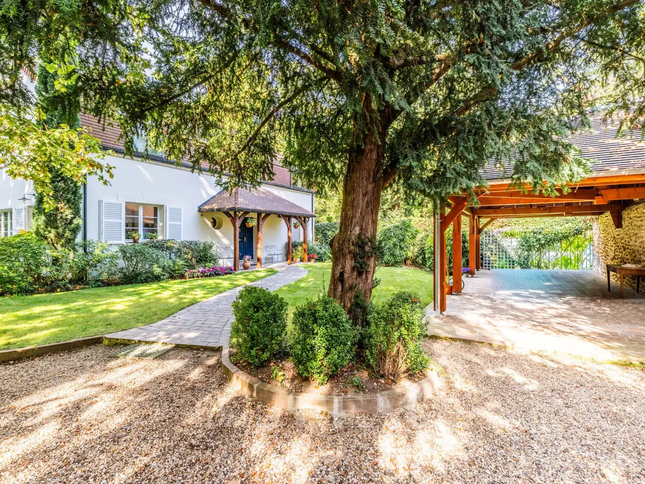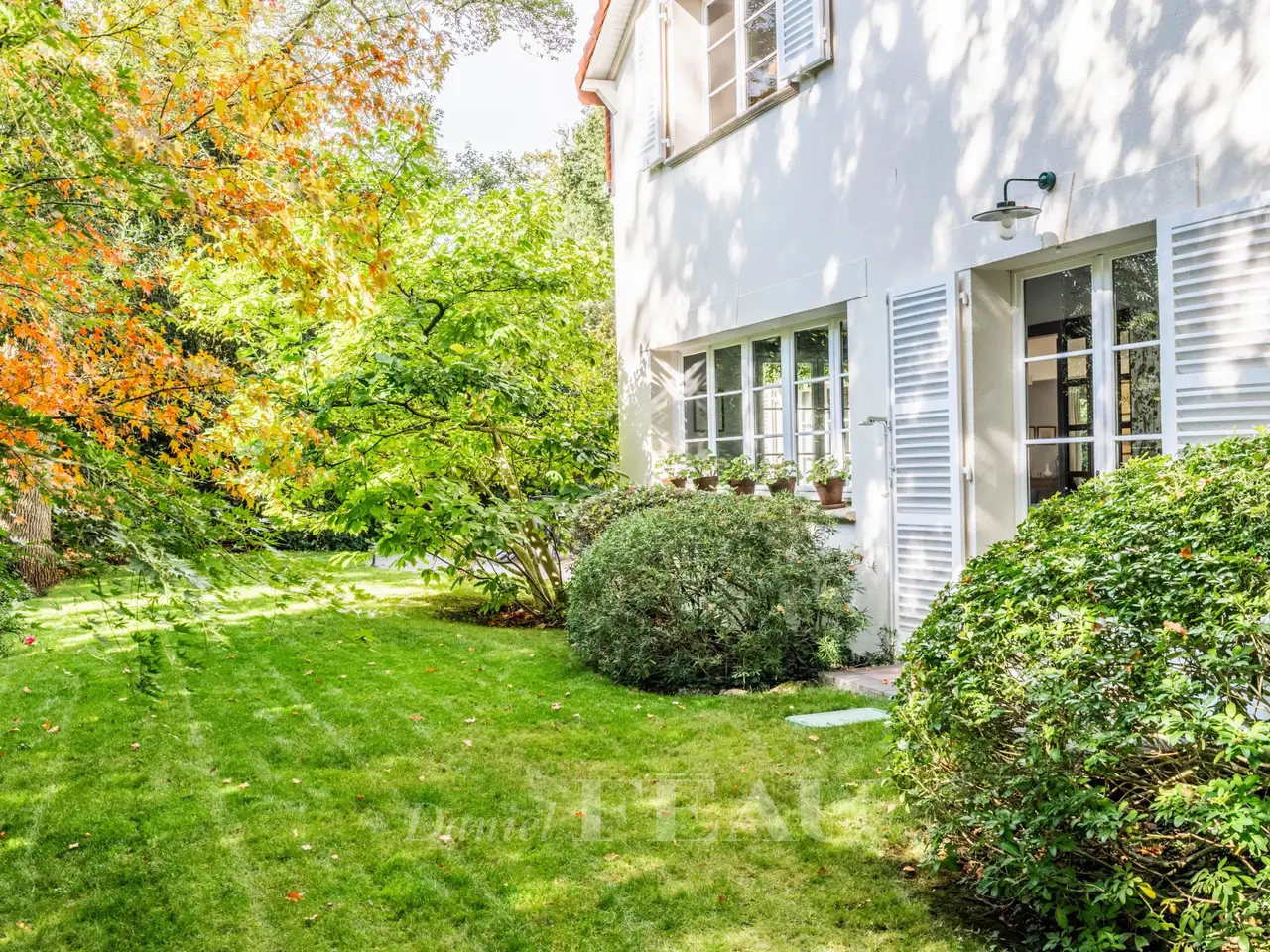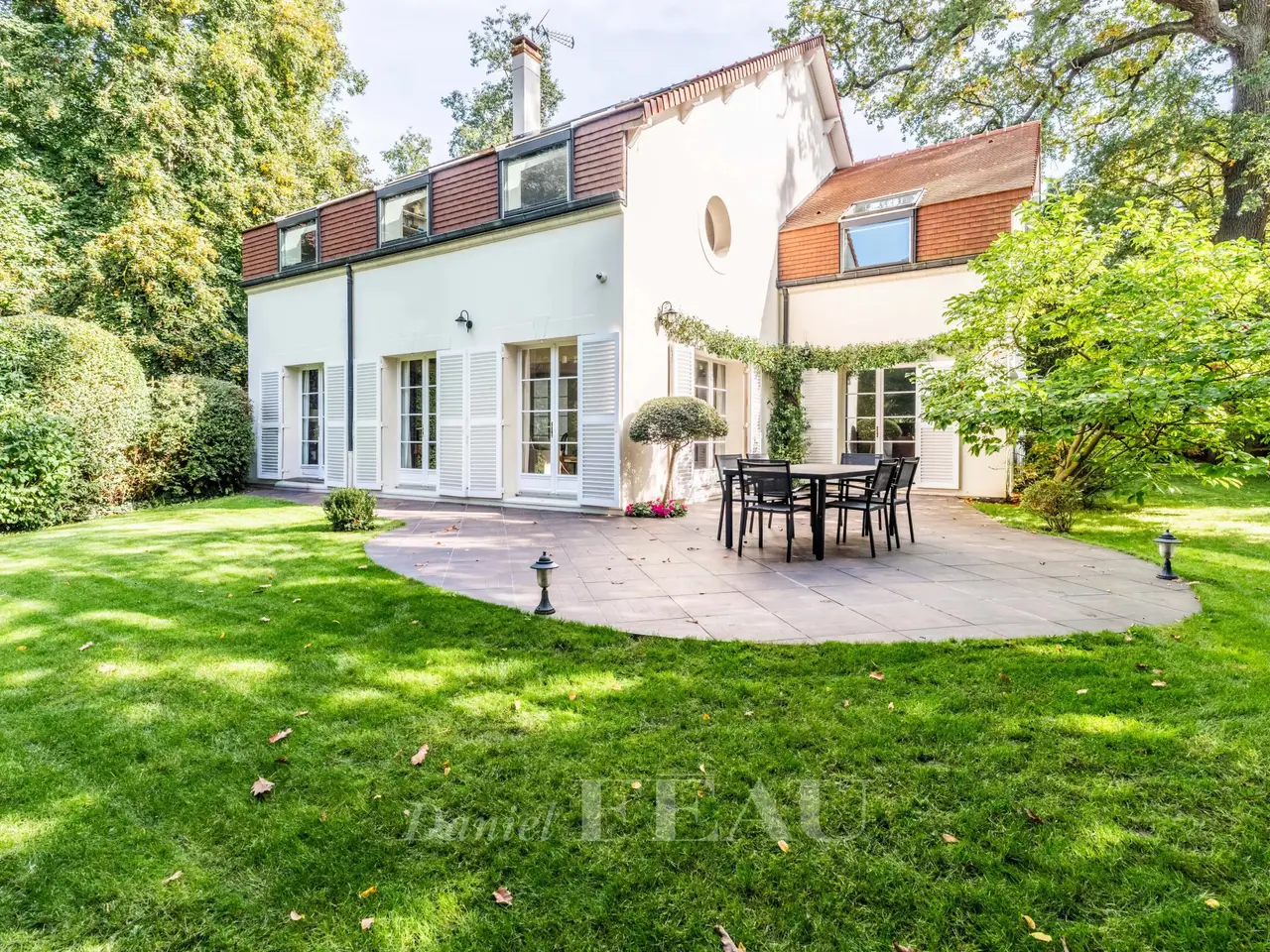 This superb contemporary property hidden from view in a leafy 1100 sqm garden on the edge of the forest offers 306 sqm of floor space and 285 sqm of living space. Set around a glazed central patio, it includes an entry with a cloakroom, a spacious living/reception room opening onto a terrace and the garden, an elegant kitchen with dining facilities, a dining room, and a utility room. It would be possible to create a ground floor bedroom if required. Upstairs a bright landing leads to a master suite with a bathroom and a dressing room, and three further bedrooms with a shower room. The fitted attic could create a spacious bedroom, a study or a recreation room. With a near 26 sqm annex comprising a garage, cycle storage premises and a self-contained apartment. The landscaped garden benefits from terraces and a paved carport. The property is beautifully appointed, benefiting from floor heating, double glazing, solid oak parquet flooring, motorized shutters and an alarm. The roofing has recently been renovated.
