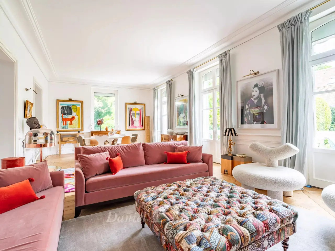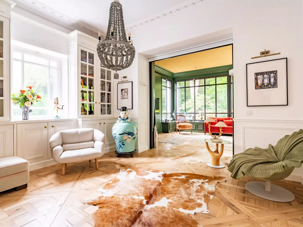 Former mansion steeped in history having belonged to the Duke of Noailles and built in 1840 on a landscaped garden of 1350 m², this beautiful house has undergone a high quality renovation in 2022 and offers private access to the forest. Subtle marriage between classical architecture and contemporary services, it seduces with its generous volumes, its Versailles parquet floors, its beautiful high ceilings with period moldings as well as its living rooms resolutely turned towards the outside. The house offers an entrance, a kitchen, a sumptuous office/workshop, a triple reception with fireplaces. On the first floor there is a master bedroom, two bedrooms, one with terrace and bathroom. On the second and last floor 3 bedrooms and two bathrooms. In the basement, a jacuzzi area, a wine cellar, a music room and cinema. A swimming pool and an outbuilding as well as a garage and a bike shed complete this very beautiful set. Only a few minutes from the city center, international schools and highways leading to Paris, this rare residence in Saint-Germain-en-Laye offers an exceptional lifestyle to a demanding clientele, French or international.