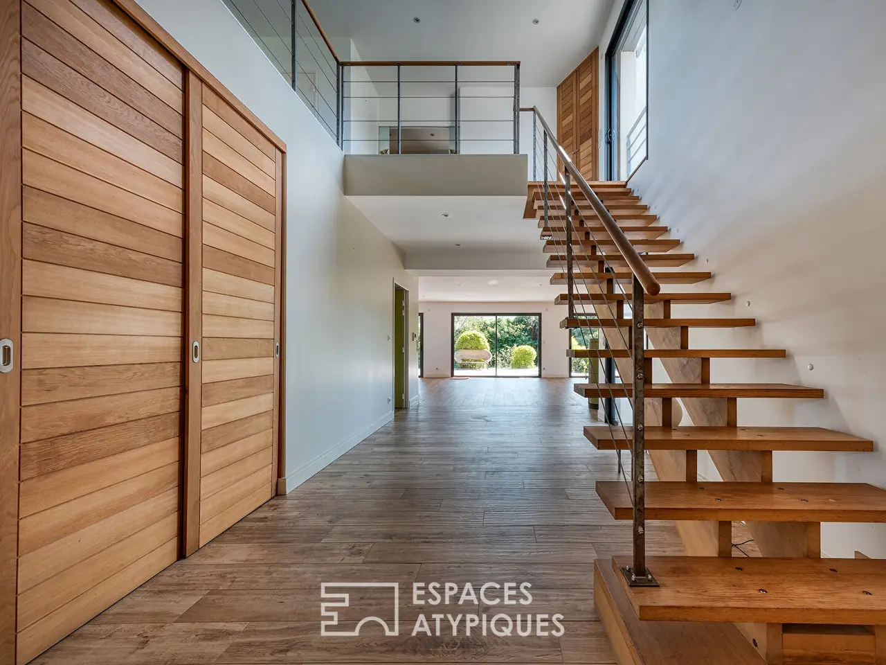 Located in the highly sought-after Saint-Marc neighborhood, just a ten-minute drive from downtown Orleans, this contemporary house built in 2012 with elegant lines offers 345 sqm of living space over three levels. Situated in a quiet second row, it benefits from an enclosed plot of 873 sqm, enhanced by a landscaped garden to the south, carefully planted with trees and punctuated by four terraces that invite you to live indoors and outdoors to the rhythm of the seasons. The ground floor, habitable on one level, accommodates a master suite composed of a bedroom, a dressing room and a bathroom, as well as a guest bedroom equipped with its own shower room and opening onto a private terrace. The large living room, warm and welcoming around its wood-burning stove, opens onto a fitted and equipped kitchen, extended by a utility room and two terraces, one of which adjoins the guest bedroom, offering an intimate and warm atmosphere. Upstairs, a large landing leads, on one side, to a games room with access to a terrace, and on the other, a family bathroom, three bedrooms, one of which has a shower room. All have direct access to the terrace overlooking the landscaped garden. In terms of comfort, nothing has been left to chance: home automation with centralized shutter control, centralized vacuum system, underfloor heating on the ground floor and upstairs: so many high-end features that make this house a truly turnkey residence. The full basement enriches the whole: wine cellar, workshop, boiler room, independent office with direct access to the outside: ideal for a liberal profession as well as an exceptionally large garage that can accommodate up to six vehicles, equipped with an electric charging station. Family-friendly, elegant and modern, this house combines all the advantages: contemporary architecture, optimal comfort, the serenity of a sought-after neighborhood and the immediate proximity of amenities. Schools in the town Amenities 5 minutes by car Orleans train station 10 minutes Bus stop 2 minutes on foot ENERGY CLASS: B CLIMATE CLASS: B Estimated average amount of annual energy expenditure for standard use, established from 2021 energy prices: between EUR1,490 and EUR2,080 Contact: Margaux Clement 06 65 72 08 79 Commercial Agent (EI) RSAC N° 920 708 369 - Orleans REF. 00768EAO Additional information * 7 rooms * 5 bedrooms * 2 bathrooms * 2 shower rooms * Outdoor space : 873 SQM * Parking : 6 parking spaces * Property tax : 4 965 € Energy Performance Certificate Primary energy consumption b : 70 kWh/m2.year High performance housing