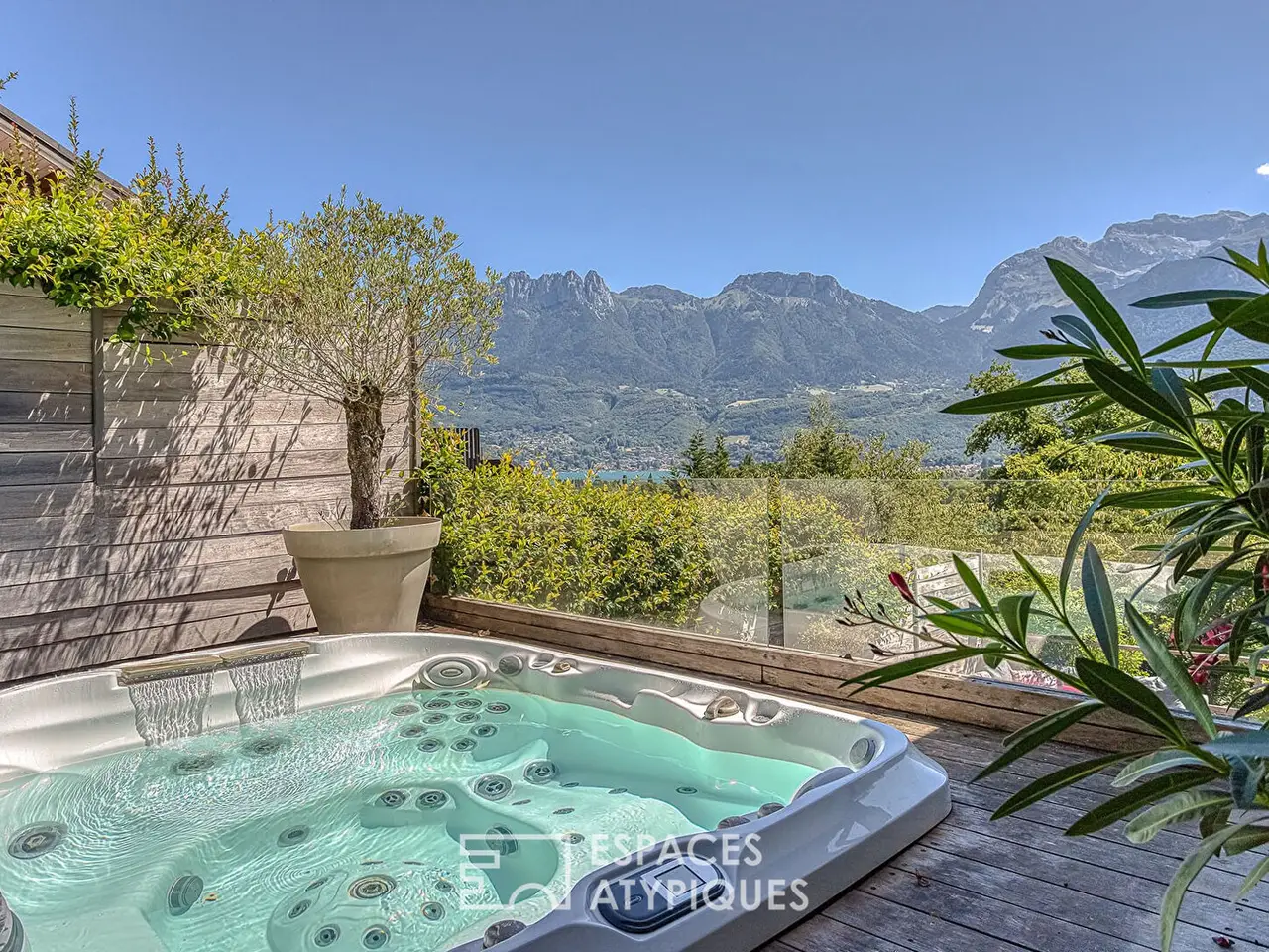 It is in the commune of Saint-Jorioz, in the heart of an area sought after for its calm and its view, that this superb renovated chalet of approximately 160 m2 of living space and approximately 1,700 m2 of land is located. The whole benefits from a privileged natural setting with a view of Lake Annecy and the surrounding mountains. Organized on three levels, the property offers many assets: terraces with a view, relaxation areas with swimming pool and jacuzzi, wooded garden, and an independent apartment. From the entrance, the light, the generous volumes, and the solid parquet or waxed concrete floors, highlight a warm renovation where wood, contemporary lines and materials, and openings blend elegantly. The main living area brings together a friendly living room with a fireplace, a dining room bathed in light and a beautiful contemporary semi-open kitchen fully equipped and The whole is extended by a bay window opening onto a south/west facing terrace surrounding the house with an exceptional view. A bedroom and a bathroom with shower, sink and storage complete this level. The first floor consists of a dressing room and two spacious bedrooms in the attic, including a master suite with a bathroom and a private balcony with a view. The basement houses a laundry room, a garage, a cellar and a separate apartment. The latter is ideal for entertaining, for a teenager, or for a rental investment. It consists of a living room, a bedroom, a kitchen, a bathroom and a charming terrace. The exteriors are not lacking in charm, multiplying the atmospheres: relaxation and well-being area with jacuzzi, swimming pool area, fruit trees and a third convivial terrace to the west. This magnificent chalet will seduce lovers of unique living spaces, between nature, comfort and authenticity. 8 minutes from the center of Saint-Jorioz by car. 8 minutes from the Lake by car. ENERGY CLASS: F / CLIMATE CLASS: E Estimated average amount of annual energy expenditure for standard use, established from the energy prices of the years 2021, 2022, 2023: between 3,970 Euros and 5,440 Euros Information on the risks to which this property is exposed is available on the Georisques website for the areas concerned: www.georisques.gouv.fr.REF. 2004EAAdditional information* 6 rooms* 4 bedrooms* 2 bathrooms* 2 floors in the building* Land area: 1733 m2* Parking: 2 spaces* Property tax: €1,797Energy performance diagnosticsPrimary energy consumptionf: 342 kWh/m2.yearExtremely efficient housing*A*B*C*D*E*342kWh/m2.year58*kg CO2/m2.yearF*GExtremely inefficient housing* Of which greenhouse gas emissions: 58 kg CO2/m2.yearLow CO2 emissions*A*B*C*D*58kg CO2/m2.yearE*F*GEvery high CO2 emissionsAverage estimated annual energy expenditure for standard use, indexed to 2021, 2022, 2023: between €3,970 and €5,440 (subscription included)Agency feesFees are inclusive of tax and are payable by the sellerMediatorFranchise-Consumer Mediationwww.mediation-franchise.com29 Boulevard de Courcelles 75008 ParisInformation on the risks to which this property is exposed is available on the Georisques website: www.georisques.gouv.fr
