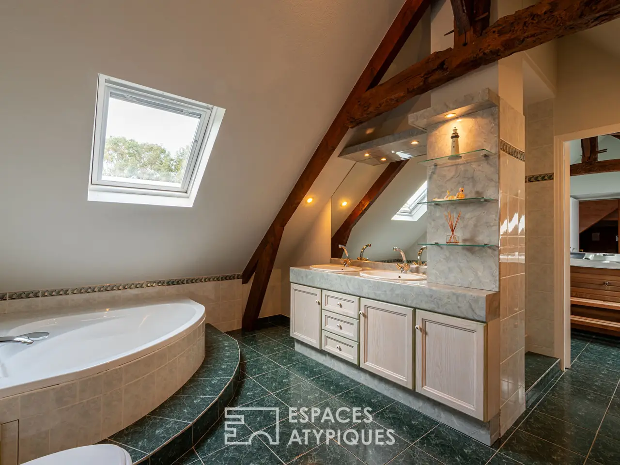 This sumptuous 434 sqm residence offers a refined living environment, combining comfort and high-end amenities. Located in a privileged environment, it seduces with its generous volumes and exceptional finishes. It features six bedrooms and four bathrooms, vast reception rooms bathed in light, and a wellness area including a hammam, sauna, and gym. Outside, a magnificent landscaped garden surrounds a large swimming pool, providing a peaceful haven ideal for relaxing and entertaining. A rare property, designed for lovers of luxury and serenity. REF. 10157Additional information* 14 rooms* 6 bedrooms* 1 bathroom* 3 shower rooms* 2 floors in the building* Outdoor space : 6760 SQM* Property tax : 3 653 €Energy Performance CertificatePrimary energy consumptionb : 103 kWh/m2.yearHigh performance housing*A*103kWh/m2.year3*kg CO2/m2.yearB*C*D*E*F*G Extremely poor housing performance* Of which greenhouse gas emissionsa : 3 kg CO2/m2.yearLow CO2 emissions*3kg CO2/m2.yearA*B*C*D*E*F*GVery high CO2 emissions Estimated average annual energy costs for standard use, indexed to specific years 2021, 2022, 2023 : between 2310 € and 3170 € Subscription Included Agency feesThe fees include VAT and are payable by the vendor MediatorMediation Franchise-Consommateurswww.mediation-franchise.com29 Boulevard de Courcelles 75008 ParisInformation on the risks to which this property is exposed is available on the Geohazards website : www.georisques.gouv.fr