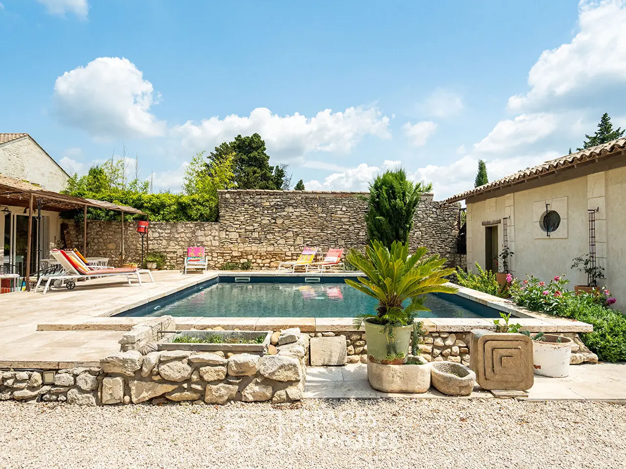 Located in the town of Saint-Remy-de-Provence, this 17th century stone farmhouse covers an area of 410m2 with a 2500m2 garden. This bastide steeped in history is a place of family life resulting from a contemporary rewriting and is based on materials such as wood, stone and steel. The main house opens onto a singular kitchen with imposing volumes. In its extension, the living room is divided into three spaces: a living room, a living room and a cinema area. A laundry room and a technical room complete this level. The sleeping area takes place upstairs and consists of four suites with independent bathrooms and a relaxation room. The large garden has all the necessary facilities to enjoy outdoor life with a summer bar equipped with a barbecue and pizza oven, a swimming pool, a permaculture and aquaponic vegetable garden and a chicken coop. An independent mazet of 36m2 and a building of 38m2, used as a workshop, take place on either side of the swimming pool. Close to the city center. ENERGY CLASS: C / CLIMATE CLASS: C Estimated average amount of annual energy expenditure for standard use, established based on energy prices for the year 2021: between EUR3,230 and EUR4,460 REF. 4174 Additional information * 7 rooms * 4 bedrooms * 1 bathroom * 4 shower rooms * Floor : 2 * 2 floors in the building * Outdoor space : 2500 SQM * Parking : 4 parking spaces * Property tax : 2 308 €