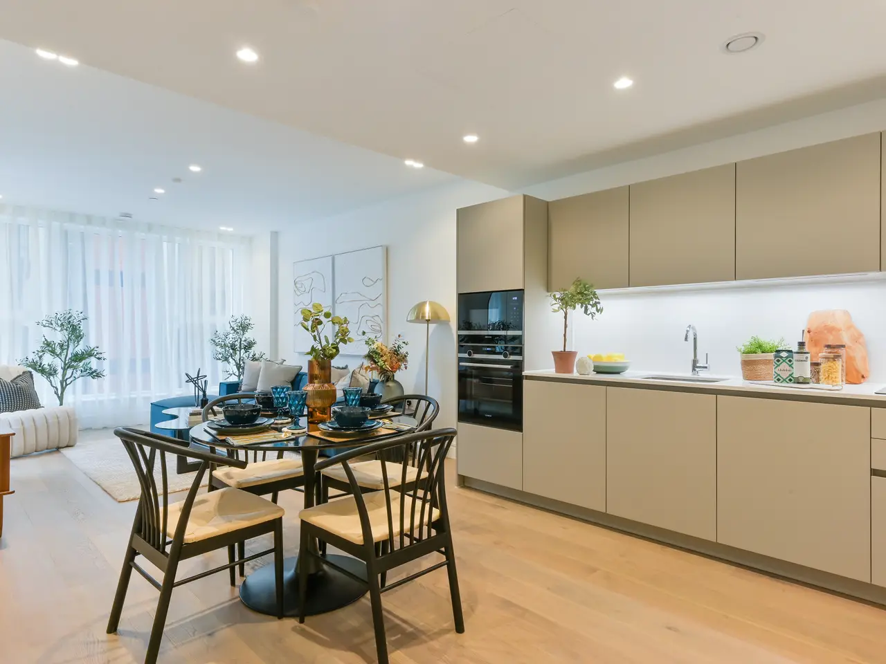 Welcome to Chiswick Green, where effortlessly sophisticated interiors by Millier meet the perfect blend of modern urban living in a beautiful green setting. Spilling onto the park at the heart of Chiswick, this contemporary collection of 1-, 2- and 3-bedroom apartments, penthouses and townhouses is arranged across four elegant buildings. This exceptional three-bedroom townhouse spans 1,262 sq ft across three levels with a generous 70 sq ft roof terrace. The ground floor features an elegant open-plan kitchen and dining area with integrated storage, complemented by a well-appointed living room that opens directly onto a private terrace. The first floor houses the master bedroom with fitted wardrobes and a luxurious en-suite bathroom, while the second floor offers two additional bedrooms and a family bathroom, providing flexible accommodation for modern living. The crowning feature is the expansive roof terrace, perfect for entertaining and outdoor dining while enjoying excellent natural light throughout all levels. Developed by Great Marlborough Estates, this award-winning development features apartments with elegant interior palettes complemented by high specifications of natural finishes and tactile detailing. Each home includes integrated Siemens appliances and private balconies or terraces. Residents benefit from a beautifully decorated entrance lobby with dedicated concierge service on the ground floor of Empire House, plus access to communal roof terraces. Four spacious penthouses with wraparound terraces sit atop Empire House, boasting sublime, uninterrupted views across London, including the City skyline and Canary Wharf. Two additional penthouses in Stoll House also feature private terraces and exacting design. The exclusive terrace of four contemporary family homes tucked behind Chiswick High Road provides flexible living over three storeys with private roof gardens, and parking is available for selected units. Perfectly positioned for connectivity, a short walk takes you to Chiswick Park Station (3-minute walk) for Underground services. Alternatively, choose Overground or Mainline trains from Gunnersbury Station (10-minute walk) or Chiswick Station (8-minute cycle). Enquire now to arrange a private viewing. Service Charge: estimated £4.88 per sq. ft. per annum Ground Rent: Peppercorn Tenure: 999 year leasehold