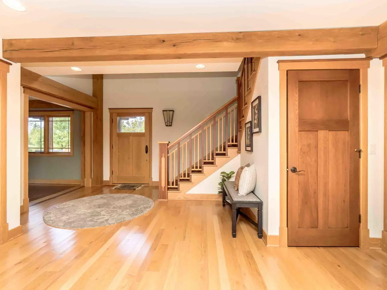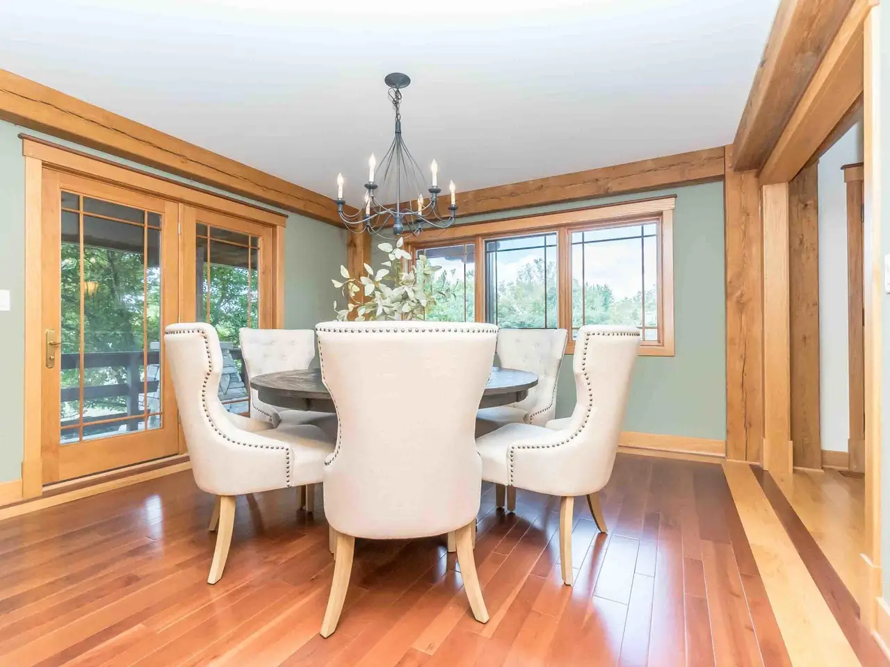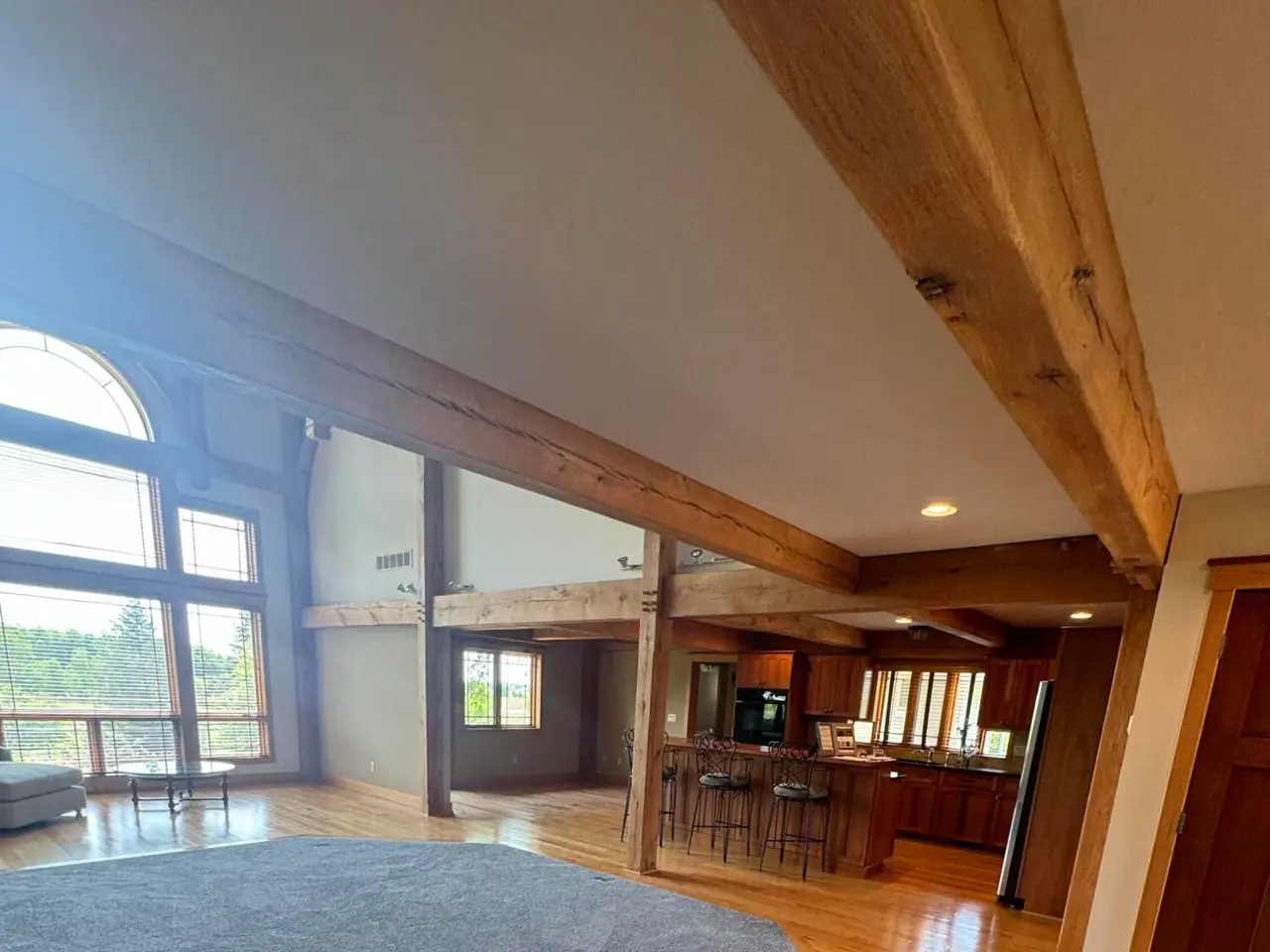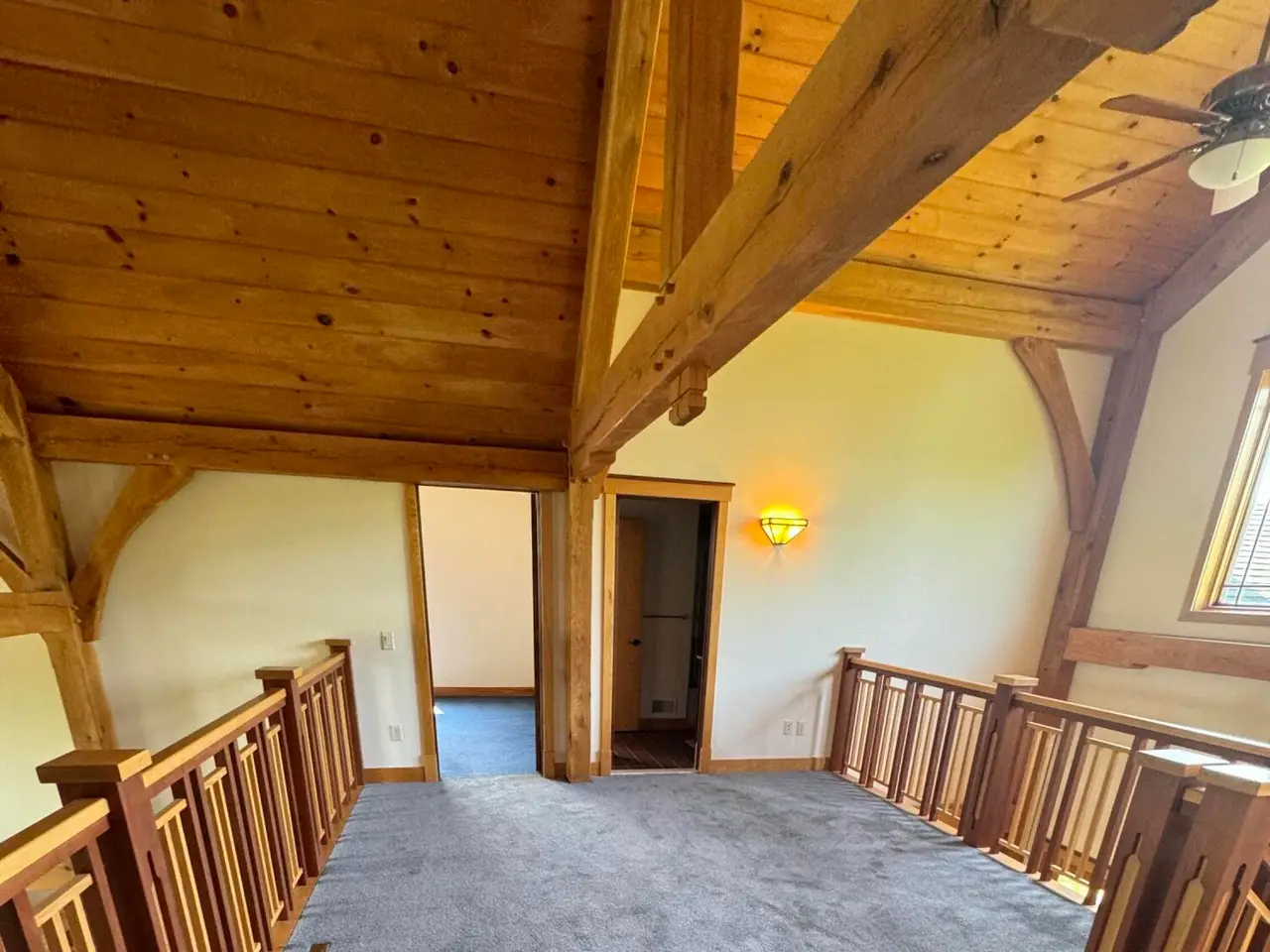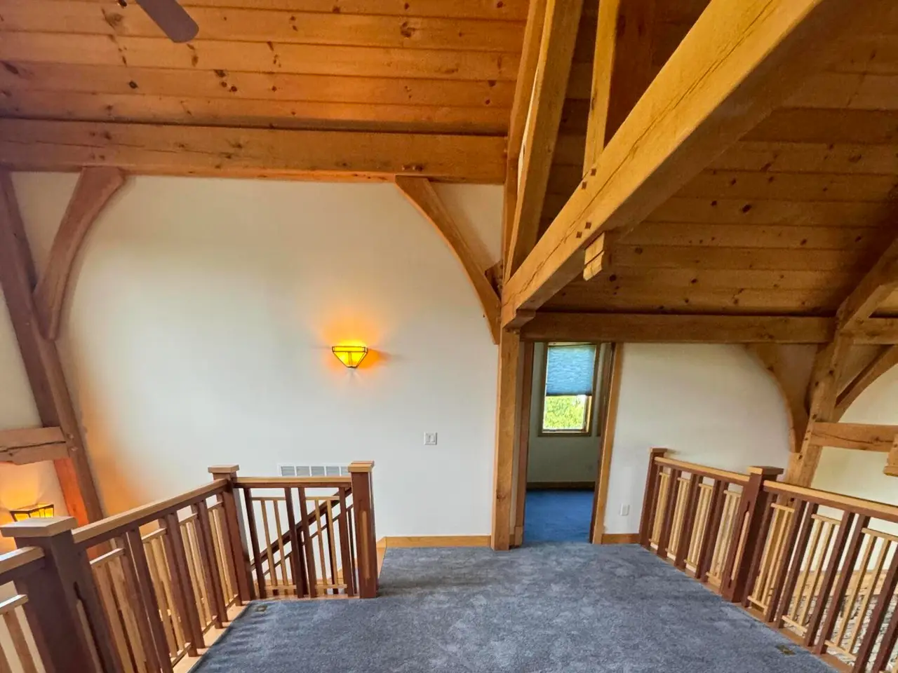 Nestled on a sprawling property, this stunning Timber-frame home offers elegance and modern comfort. With its signature architectural details, exposed beams, wide overhangs, and handcrafted woodwork, this residence exudes charm and craftsmanship. The expansive lot is a nature lover's paradise, offering privacy, lush landscaping, room for horses (or other animals) and plenty of space for outdoor living. Warm hardwood floors and large windows that flood the space with natural light. The gourmet open kitchen features a large center island, a cozy breakfast nook and a formal dining room. The spacious living areas, complete with a stone fireplace and coffered ceilings, create an inviting atmosphere for family gatherings. See new carpet installed! Scroll for updated pictures at the end.