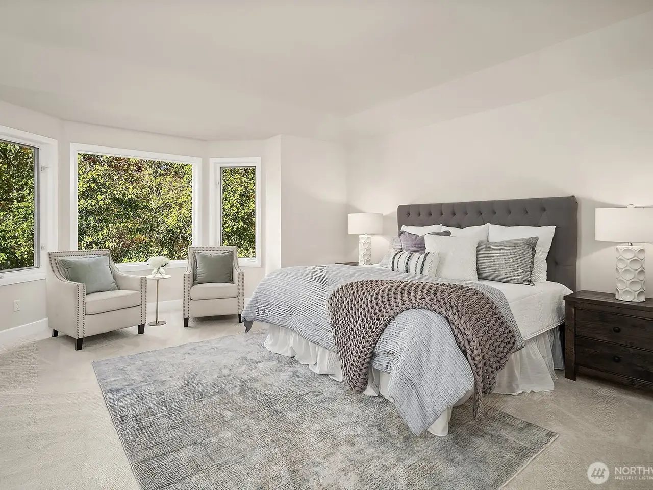 Stunning 4 bedroom retreat set in one of Sammamish's most desirable neighborhoods. Gorgeous living room with soaring vaulted ceilings. spacious great room flows into the chef's kitchen, floorplan perfect for entertaining or quiet nights at home. Main-level bonus & full bath offer ideal flexibility. Luxurious primary suite with ensuite bath & walk-in closet. One of the secondary bedrooms also features an ensuite bath. Second upstairs bonus room provides the perfect space for play, media, or study. Freshly painted & brand new carpet. Set on a greenbelt & next to a neighborhood park, this home offers exceptional privacy and a sense of nature at your door. Enjoy the quiet, tree-lined streets, community parks & trails, and top-rated schools.