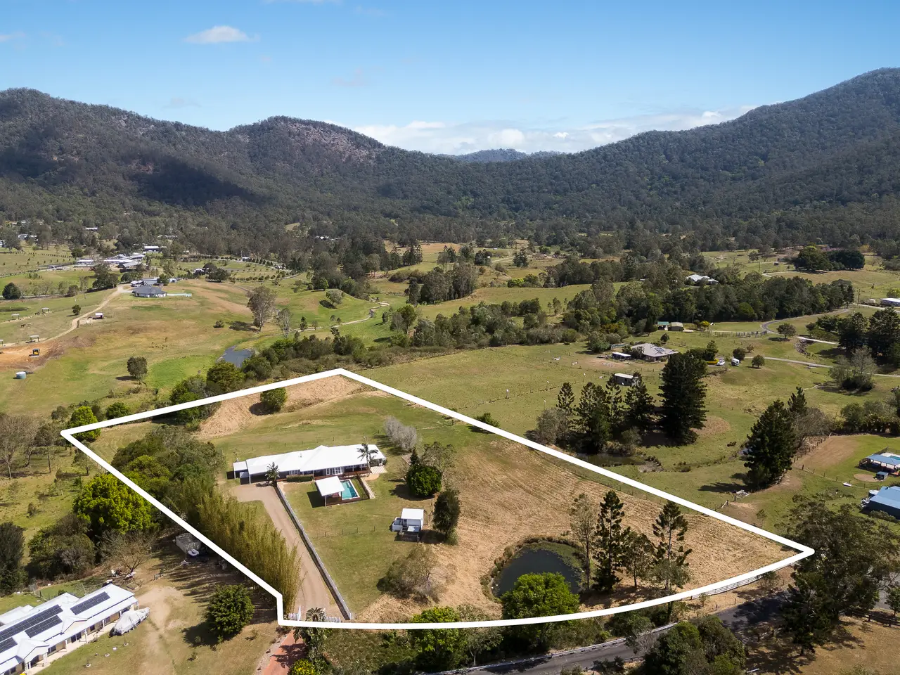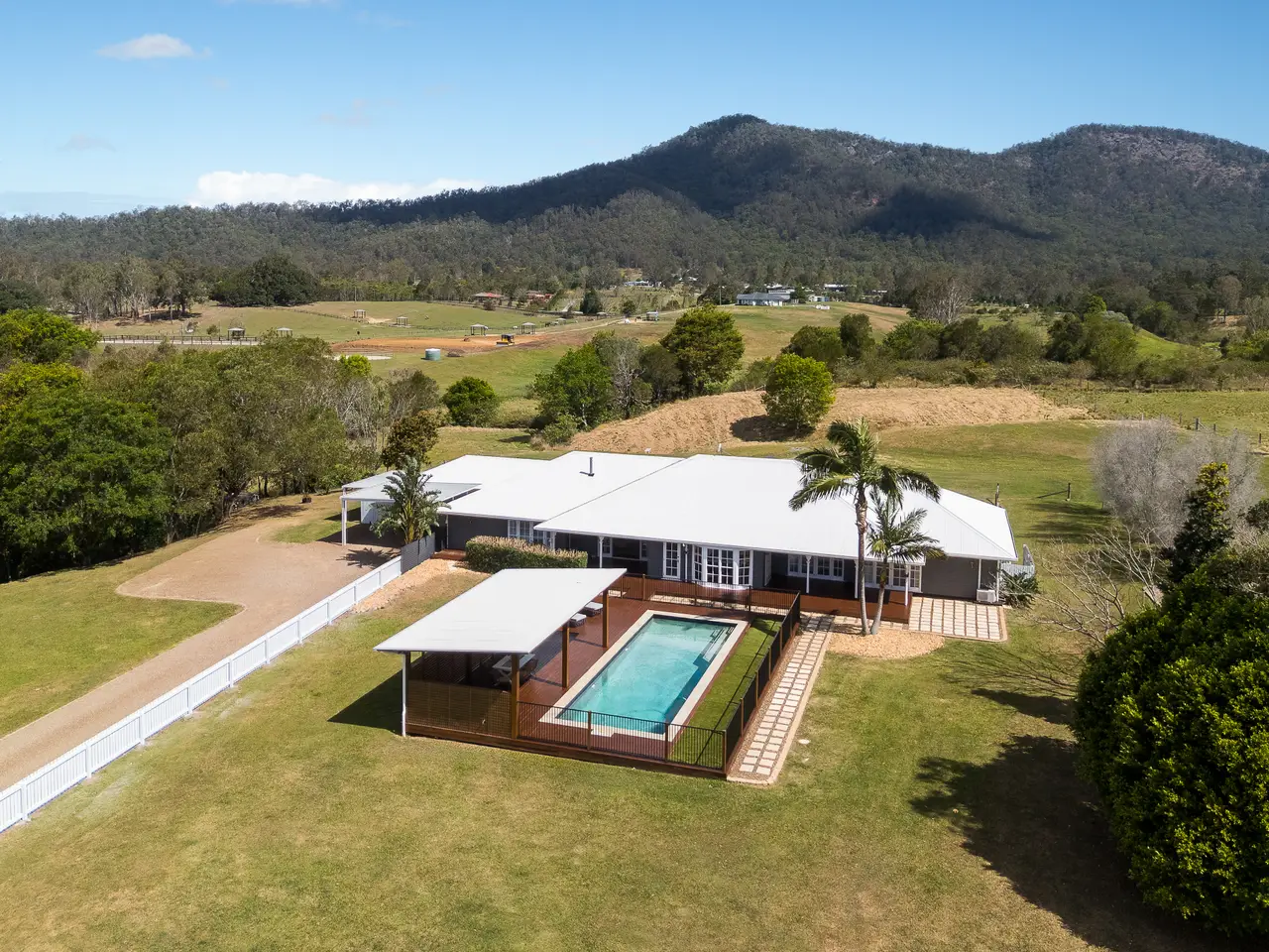 Resting on a lush five acres of beautifully usable grounds, this contemporary home is a true masterpiece, offering a private paradise like no other. It sets a high standard for living and entertaining excellence with its supremely spacious layout that cleverly integrates with the outdoors and enjoys beautiful countryside outlooks. This high-quality home has been architect-designed to make the most of the natural breezes, sunlight and leafy rural surrounds. Five bedrooms are separated at either ends of the floorplan and feature two primary suites, both with walk-in robe and ensuite. The chef's kitchen is stylishly finished with Tasmanian Blackwood benches, Neff appliances and a butler's pantry, plus there are separate areas for living, lounge, dining and a kids' retreat. What truly sets this property apart is its incredible outdoor spaces. The low-maintenance gardens, alfresco entertaining areas and sparkling inground swimming pool with a poolside deck and pavilion, all offer a perfect backdrop for relaxation and fun. The property also features fully fenced paddocks for livestock, electric entry gates and a custom-built studio/cubby. This peaceful sanctuary offers perfect tranquility in a boutique cul-de-sac just 15 minutes from the local shops, cafés and amenities of both Samford Village and Dayboro. Property highlights: - Supremely spacious family residence of resort-inspired luxury - A very private 5-acre block with views to the mountain ranges - Flowing single-storey layout featuring multiple living areas - Deluxe swimming pool, entertainment spaces and poolside pavilion - Five bedrooms include two master retreats with walk-in and ensuite - Fenced livestock paddocks, established grounds, kids' cubbyhouse or studio - High-end island kitchen with premium appliances and full butler's pantry - Air-conditioning, gas fireplace, double carport plus a double garage - A scenic 15-minute drive to both Dayboro and Samford Village. Whilst all care has been taken to ensure accuracy, the Selling agents confirm that they cannot guarantee accuracy of the same and accept no liability (express or implied) in the event that any information contained in the document or provided within is inaccurate. The Seller and Selling agent make no representation and give no warranty that the information provided is accurate. Parties must ensure they make their own due diligence enquiries to satisfy themselves about the accuracy of the information. This information provided is indicative only and must not be relied upon unless confirmed by a party through their own due diligence.