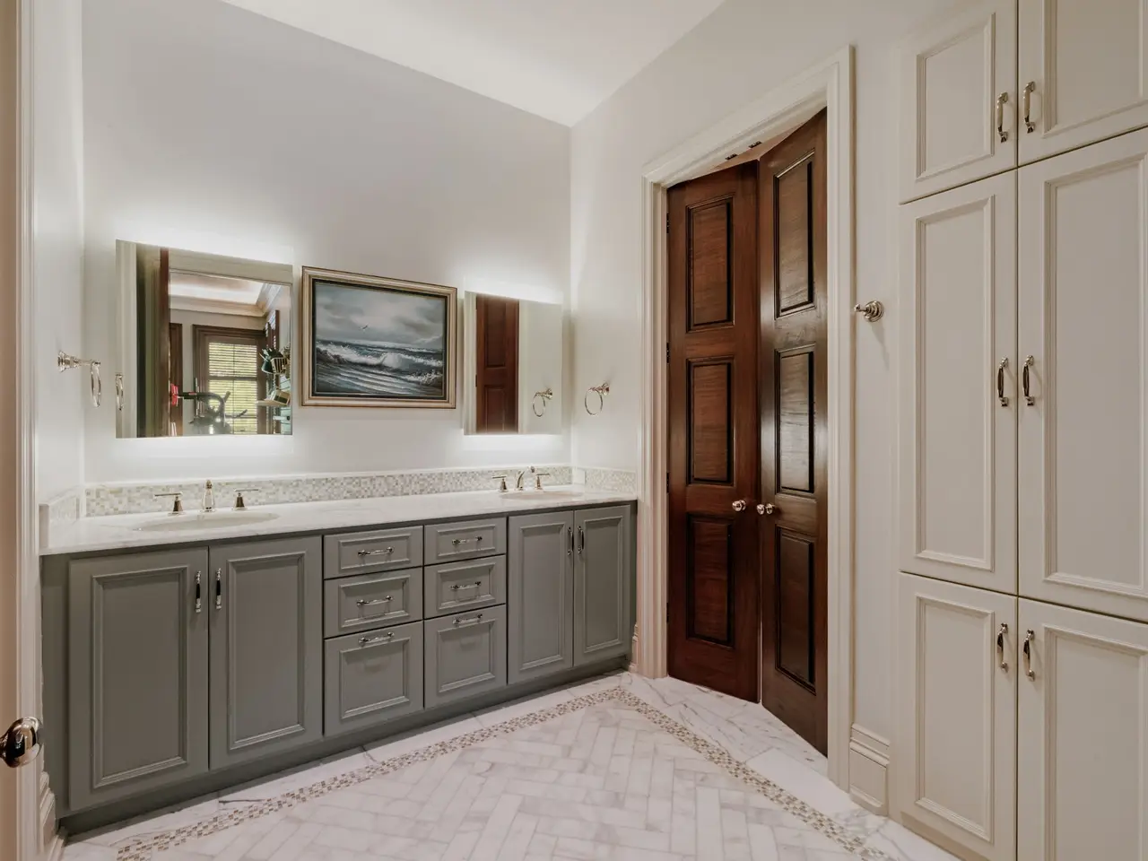 This breathtaking estate, completed in 2009 by Mauze Construction and designed by renowned architect Roy Braswell, exudes unparalleled quality and craftsmanship. With a hand-cut limestone exterior and an Italian-style barrel tile roof, complemented by full copper gutters, this home offers timeless elegance. Inside, custom finishes throughout include Palmer Todd-designed cabinets in the kitchen, bar, primary bath and primary closet. The primary closet is larger than most bedrooms and has two islands the make packing a breeze. Boasting 4 bedrooms, 4 bathrooms, and 4 powder baths, it offers 12-foot ceilings, 4 fireplaces, and a beautiful family room featuring a hand-carved mantel and hand-painted wood beams. The outdoor living space is a true highlight, offering a 1,238-square-foot lanai with 3 fully retractable custom Koaba wood doors, a fully equipped outdoor kitchen, and a cozy fireplace. This is the finest outdoor living area you will ever see. The lower level wine room, complete with custom iron doors to the wine cellar also has a powder room and a catering kitchen. You can walk outside and take the beautiful stone staircase to the lanai. . A private office, custom bar, and spacious family room add to the home®s appeal, while the primary bath with heated floors, a coffee bar, and retractable doors opening to a patio overlooking the pool ensures a spa-like experience. Further luxury is found in the 5-car garage, a separate apartment above the garage, and a gorgeous backyard with a pool, koi pond, and lush oaks. With advanced systems like Lutron lighting, Creston controls, and a mosquito nix system, this estate is a true masterpiece. - 4/4/2025 8:01:20 AM