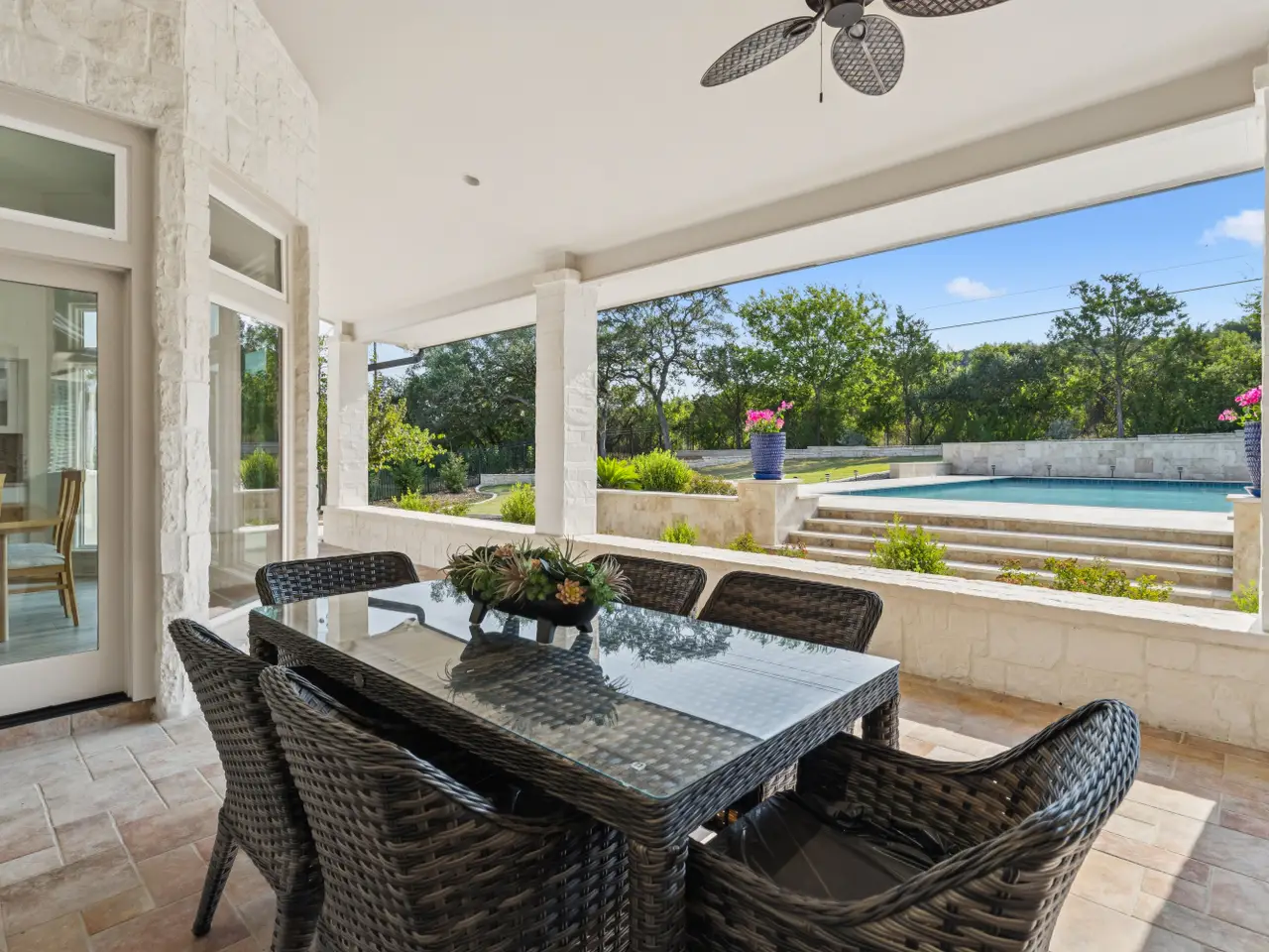 Welcome to this meticulously transformed home, perfectly situated in the heart of The Dominion. Designed for both grand entertaining and a private retreat, this residence blends modern sophistication with timeless elegance. Step inside to soaring ceilings, abundant natural light & immediate views of the outdoors. Walls of glass open seamlessly to a resort-style living space featuring an outdoor fireplace, covered patios & panoramic city views. Anchoring the property is an award-nominated 40® x 20® Cody lap pool with elegant travertine decking & dramatic lighting, a true center piece for entertaining day or night. The modern kitchen offers custom cabinetry, granite countertops & updated appliances, while Italian porcelain tile flooring flows throughout. Every bathroom has been elegantly redesigned with timeless finishes. Fresh paint, enhanced architectural lighting inside and out & energy-efficient Low-E Pella windows add comfort and peace of mind. Terraced balconies span over 700 square feet on two levels, providing the perfect setting for phenomenal views for sunset gatherings or quiet morning sunrises. A versatile 705 sq. ft. guest apartment with full bath, set privately above the garage, is ideal for family, an executive office, or an au pair suite. Designed by top-rated landscape architect Bronson Blue, the tree-lined grounds offer fabulous curb appeal and unmatched privacy, with direct adjacency to Camp Bullis & sweeping hilltop views. This is a rare opportunity to own a home that is move-in-ready, balancing prestige, craftsmanship & a lock-and-leave lifestyle in The Dominion. - 10/31/2025 8:00:54 AM