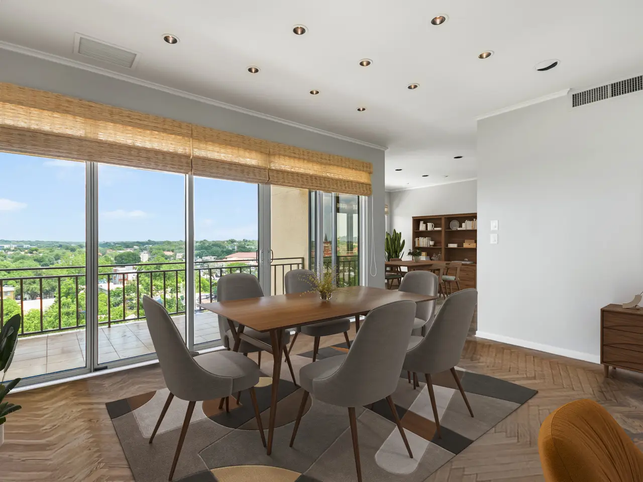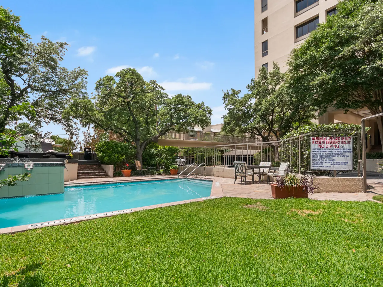 Perched high above the vibrant heart of Alamo Heights in San Antonio, this luxury high-rise condo offers a blend of modern sophistication, breathtaking views, and unmatched convenience. Step inside and you're greeted with floor-to-ceiling windows that flood the space with natural light and great views of the San Antonio Country Club golf course. The living space features sleek hardwood floors, cozy spaces, and incredible floor plan to take in the views from every room. The kitchen has a functional layout right off the main living room to make it easy for entertaining. The master suite is a tranquil retreat with a large walk-in closet, and a spa-inspired bathroom and a spacious sitting room. 3 generous size bedrooms with built-in cabinets, custom closets, bookcases and storage. This condo is just a walk across the street to the San Antonio Country Club and quick access to city life.