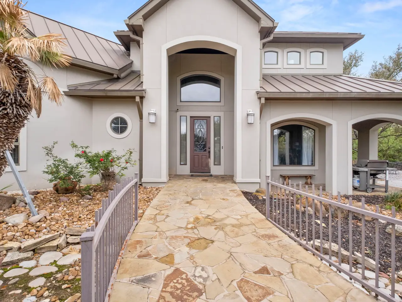 Welcome to 25052 Whistling Wind, a Mediterranean masterpiece nestled in the exclusive Hidden Spring Estates. This gated community gem, crafted by the esteemed Malatek Home Builders, rests on nearly 3 acres of lush, picturesque land, offering breathtaking views of the enchanting Hill Country. As you enter this luxurious estate, you'll find two distinct residences: a grand main house and a charming guest house. The main house, spanning approximately 3,200 square feet, boasts a thoughtfully designed floor plan. The primary suite, located on the first floor, serves as a serene retreat with a sumptuous en-suite bathroom featuring an oversized garden tub and a stand-up shower. The main level also includes an elegant dining room, perfect for cozy dinners, and a spacious island kitchen that flows seamlessly into the inviting living area, ideal for entertaining loved ones. Upstairs, the home offers comfortable and private secondary bedrooms. Step outside to find an expansive wooden deck, creating an intimate setting for special gatherings and memorable moments. Beyond the deck, a generous sparkling pool awaits, heated for year-round enjoyment and relaxation. Additional outdoor amenities include an in-ground trampoline, a dog run, and a tree house. The main house includes an attached 2-car garage. Designed with the famous Ballory Hotel in New York City mind, the nearly 1,600-square-foot guest house, ensures that visitors feel right at home with every comfort provided. It features a full kitchen and family room, two bedrooms downstairs, and an upstairs loft that can serve as an office, media room, or third bedroom. The walkout balcony on the second level provides extensive views of the surrounding hill country. The guest house also includes an attached 2-car garage. A private utility drive provides convenient access for contractors needing to service the property. 25052 Whistling Wind is a rare sanctuary in San Antonio, offering an exquisite blend of luxury, space, and tranquility amidst the stunning beauty of the Hill Country. Welcome home.