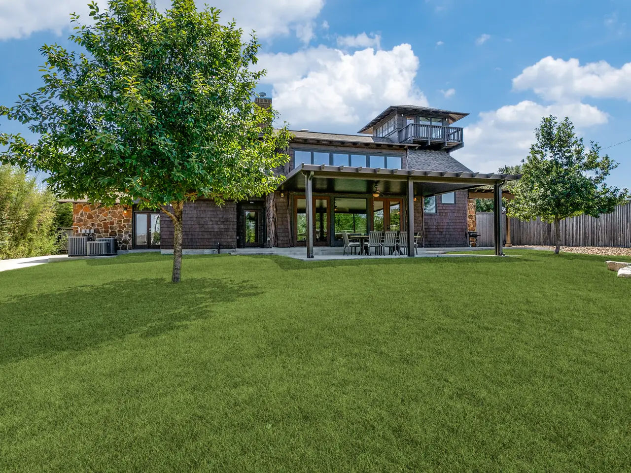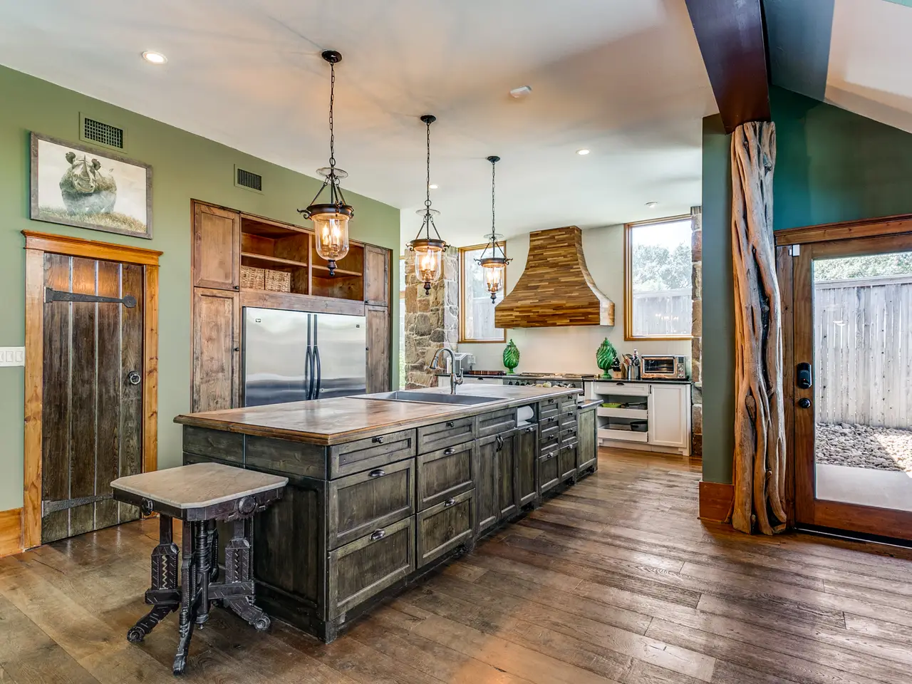 Discover this striking custom-designed home nestled on a sprawling lot in the coveted community of Terrell Hills. The expressive stone exterior sets the stage for the exquisite craftsmanship found inside. Step into a grand interior featuring soaring ceilings with exposed beams, walls of windows that bring in abundant natural light, and rich wide-plank wood flooring. The impressive culinary kitchen is a chef's dream, boasting a commercial-grade gas stove, a stunning wood-detailed vent hood, a spacious gathering island, chic open shelving, and a large walk-in pantry. Designed for effortless entertaining, the kitchen seamlessly flows into the living and dining areas, anchored by dual-sided stone fireplaces that add warmth and elegance. The main level offers three spacious bedrooms, while the primary suite occupies the upper level, showcasing a vaulted ceiling, a cozy fireplace, and a luxurious spa-inspired bath with a soaking tub, walk-in shower, dual vanities, and an expansive walk-in closet. Ascend to the third-floor office or fitness room, which opens to a private balcony offering breathtaking city views. Step outside to the covered patio, perfect for year-round enjoyment, overlooking a private, beautifully landscaped yard with mature trees. This one-of-a-kind property is a true retreat, offering both style and serenity. Possibility exists to pay tuition to attend Alamo Heights Schools. Contact AHISD for more details.