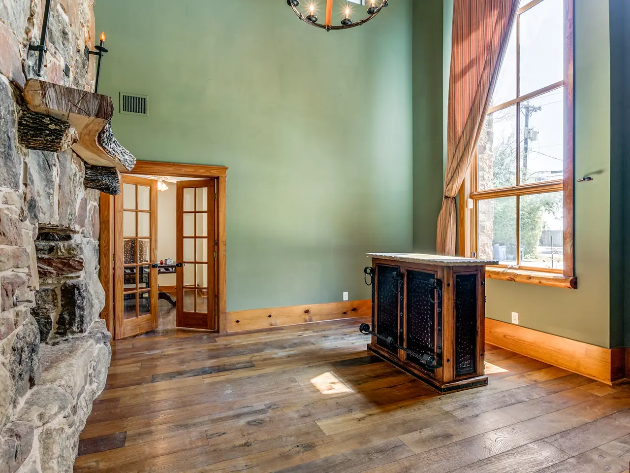 • Dual-sided stone fireplaces