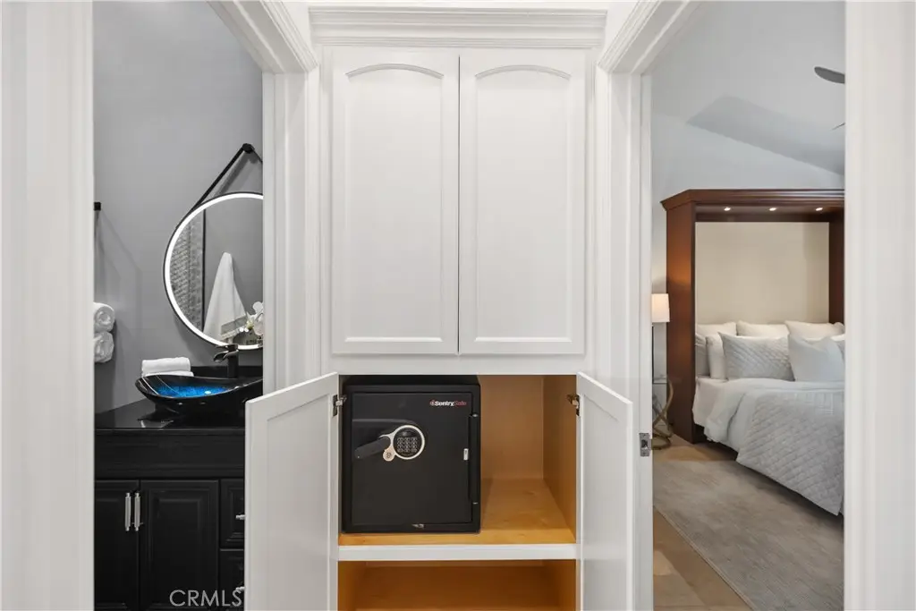 Two luxurious primary suites feature walk-in closets, spa-inspired bathrooms, and in-suite washer/dryers--creating a private, retreat-like experience on either end of the home. A versatile third bedroom with a custom wall bed provides flexible use as an office, guest room, or studio. Additional highlights include motorized shades, hard surface flooring throughout, and abundant storage.