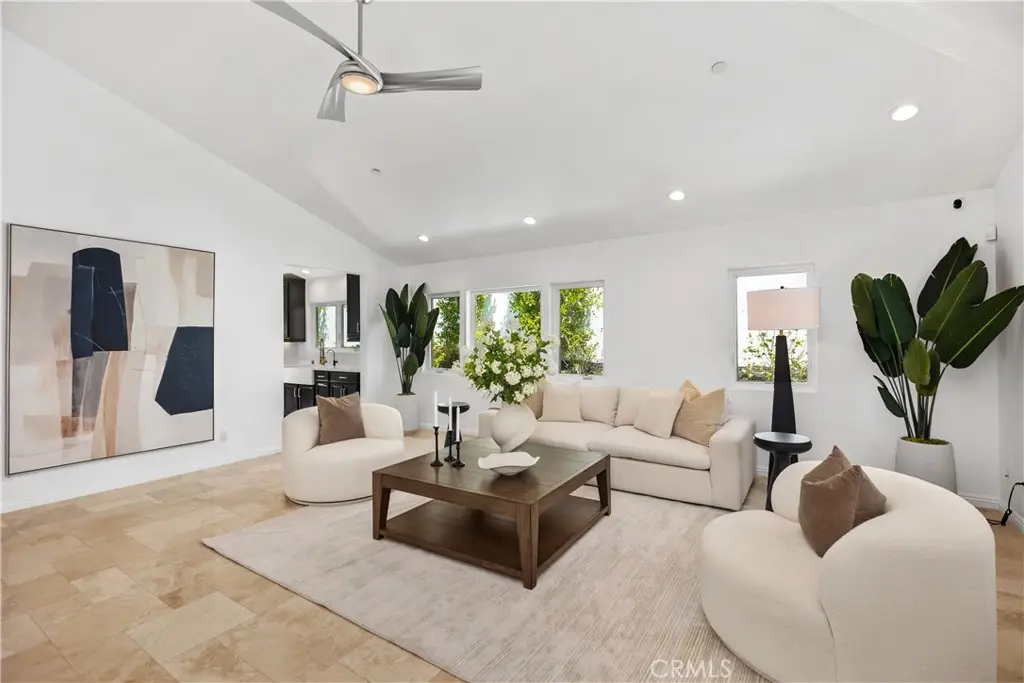 From the curb, tasteful stonework, modern exterior tones, and lush landscaping set the stage. Beyond custom iron gates, a private courtyard leads to an impressive entry opening into expansive living spaces filled with natural light and dramatic vaulted ceilings. Walls of windows frame breathtaking coastline views from nearly every room.
