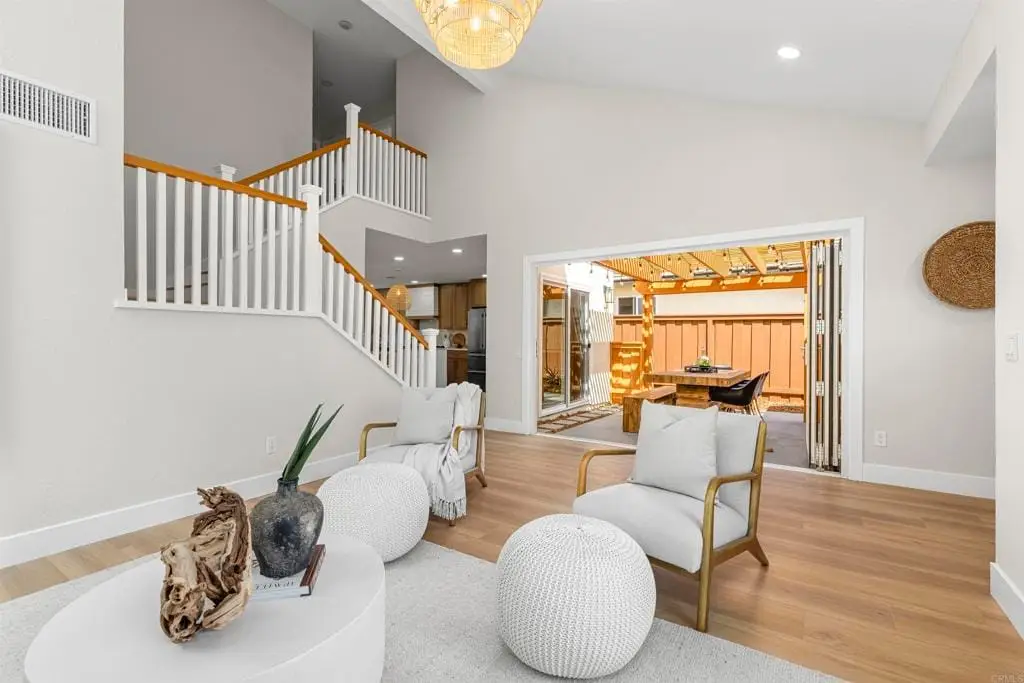 Welcome to this beautifully remodeled family home, ideally situated in a quiet cul-de-sac just steps from Torrey Pines High School, ranked among the best high schools in the United States. Located in one of San Diegos most sought-after neighborhoods, this residence offers the perfect blend of luxury, convenience, and lifestyle. Enjoy unparalleled access to Del Mar Highlands Town Center, Sky Deck, One Paseo, and world-class dining at Steak 48all within walking distance. Beaches, shopping, and major freeways are just minutes away, making it effortless to reach anywhere in San Diego. Inside, no detail has been overlooked in this top-to-bottom high-end remodel. The open-concept floor plan features cantina style doors that seamlessly connect indoor and outdoor living spaces, perfect for entertaining or relaxing in the coastal breeze. The chefs kitchen boasts a cantina style pass through window, Forno high-end stainless steel appliances, a massive quartz island with waterfall edges, and custom white oak cabinetry. The spacious primary suite includes vaulted ceiling, a walk-in closet and a spa-inspired bathroom. Every room has been thoughtfully upgraded with modern finishes, bringing style and comfort to every corner of the home. This home truly defines the San Diego lifestyleluxurious, convenient, and coastal. Dont miss this rare opportunity!