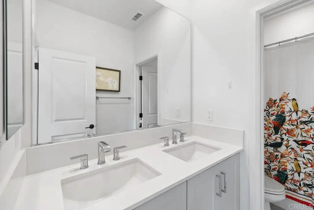 Citrine at 3Roots - Sorrento Mesa: Modern living awaits in this newly constructed Citrine residence, set on a premium-size lot with a view of the canyon hill reserve (open space) within the desirable 3Roots master-planned community. Offering 4 spacious bedrooms, 3.5 baths, and 2,316 sq. ft., the home's contemporary floor plan is designed for comfort and function. Sun-filled interiors showcase upgraded flooring, quartz countertops, custom cabinetry, and premium stainless steel appliances throughout the chef-inspired kitchen. On the entry level, a versatile suite with an ensuite bath provides the perfect space for guests or a dedicated home office. The second floor opens to expansive living and dining areas, seamlessly connected to a covered balcony--ideal for entertaining or enjoying California's indoor-outdoor lifestyle. The owner's suite is a restful retreat featuring a luxurious bath with a soaking tub and a private balcony. Continuing, there are two spacious secondary bedrooms and a full bathroom with a double sink vanity on the same floor. Additional features include a two-car garage and drought-tolerant landscaped grounds. Eco-friendly living with rooftop solar, Smart home technology, integrated air filtration system, providing sustainable energy and long-term savings, and Ring security. Residents of 3Roots enjoy access to an exclusive array of amenities: a cutting-edge fitness center, resort-inspired pool, multiple parks, playgrounds, sports courts, and scenic walking trails throughout the community, reflecting a commitment to wellness and convenience. Perfectly positioned in Sorrento Mesa, this home offers quick access to area beaches, shopping, dining, and major employment centers. Contact today for a private showing and make this exceptional Citrine home your next address in San Diego.