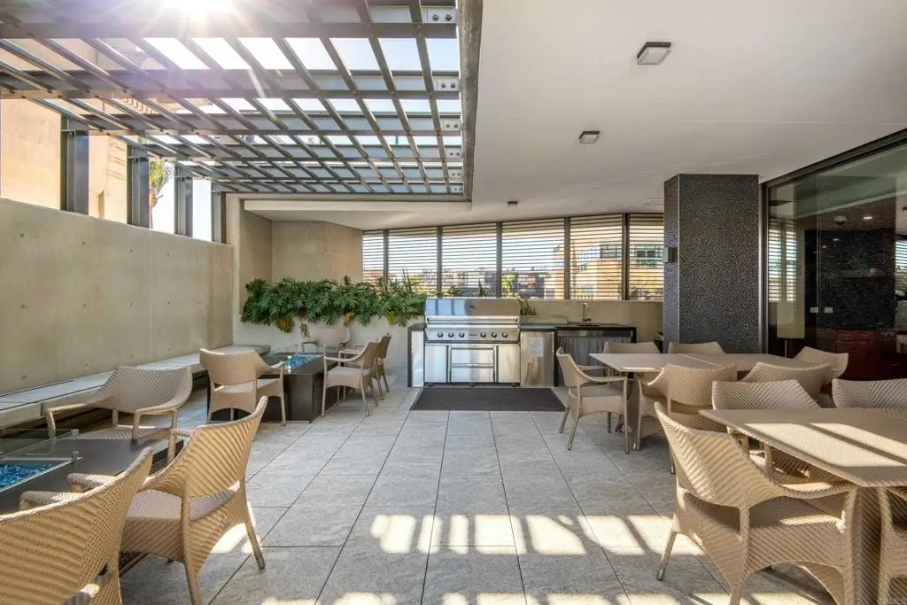 Luxury defined! Newly updated and professionally designed interior accentuates the modern architecture in this stunning townhouse that lives like a single-family home. Plus, the added value of a 'lock-and-go' lifestyle, 24/7 front desk staff and access to luxury high-rise amenities. Experience sophistication & comfort in this rare offering - the largest townhouse at The Park Bankers Hill, one of San Diegos most prestigious addresses. This contemporary townhouse features three levels serviced by a private elevator. The interior is a triumph, highlighted by floor-to-ceiling glass windows and floating staircases. The floor plan includes two bedrooms, plus a den/office, two and a half baths, a family room, a large dining room, an open kitchen, and a relaxed, cozy living room. Designed to 'blur the sense of indoor/outdoor living', there are five outdoor terraces/patios that infuse San Diego's equable natural sunlight & provide spaces for dining, entertaining, and a curated garden. Creston & Amazon Alexa fully automated Smart Home system conveniently operates lighting, Sonos audio, and solar window shades. The exterior is clad in glass, Volakas marble, and stamped concrete formwork to announce a sophisticated arrival. Sited across the street from Balboa Park's 1,200 acres in the vibrant Bankers Hill neighborhood, this exceptional residence offers a unique opportunity to enjoy upscale urban living just steps away from renowned dining and the citys cultural landmarks. The Park was completed in 2018 by DIALOG (architects), developer Zephyr, and contractor Balfour Beatty. Lavish amenities include 24/7 front desk staff, private lounge, conference/dining room, full event kitchen, wine room, gym with yoga room, pool, BBQ, two guest suites, and a dog wash. The six townhomes at The Park complement the 14-story luxury tower comprised of 60 modern homes and 2 ground-level retail spaces. The townhouse has 2 parking spaces with an EV charger.
