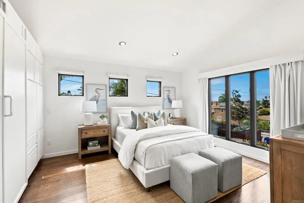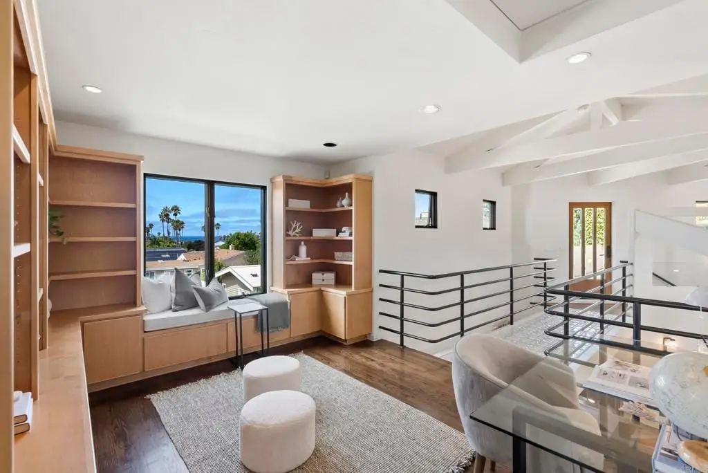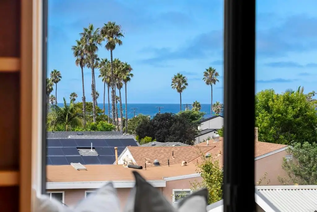 Sunset Cliffs Lifestyle-3 Bedrooms,3 Bathrooms, Two Blocks from the Pacific! Just moments from the ocean, this beautiful 3-bedroom, 3-bath home captures the essence of Sunset Cliffs living. Walk along the cliffs, watch the waves crash, and take in breathtaking sunsets just steps from your door. Architectural beams, abundant windows, and French doors bring in natural light and ocean breezes indoors. The open floor plan connects the oversized kitchen--complete with granite countertops, two ovens, a center island, and sit-at-bar--to the dining and living rooms, making it perfect for entertaining. The primary suite is a private retreat, offerng a cozy firelace, sitting area, large walk-in closet, and luxurious bath with double sinks, a spacious walk-in shower, soaking tub, generous storage and a separate water closet. Upstairs, a versatle study loft joins two bedrooms and a full bath, while the downstairs bonus room offers endless options: TV lounge, game room, home theatre, or fitness space. Outdoor entertaining is effortless with two distinct areas: a hot tub patio off the great room and a second floor deck ideal for gatherings under the stars. An attached two-car garage with laundry hookups completes this exceptional property.