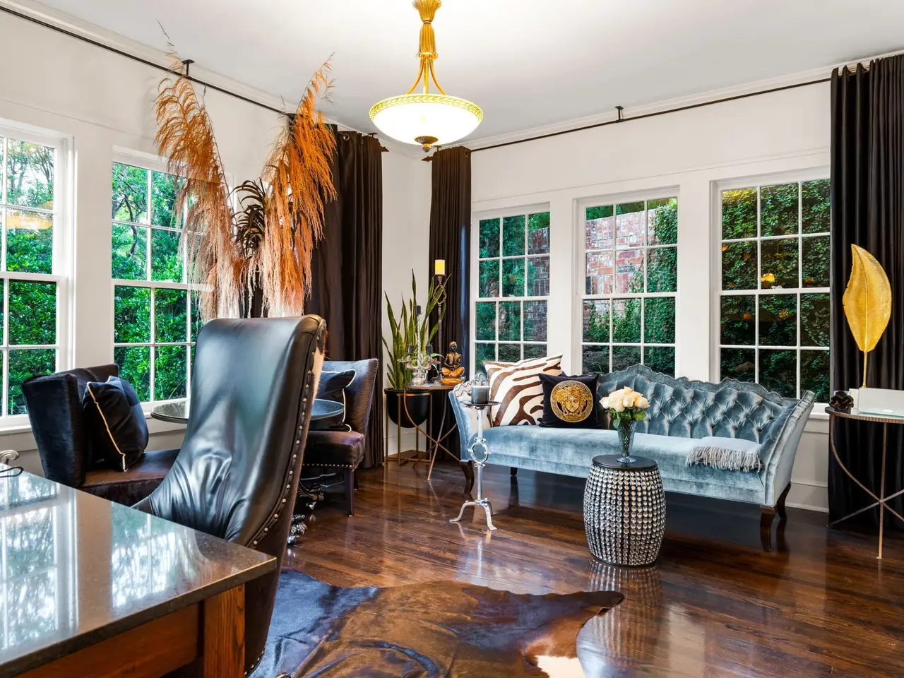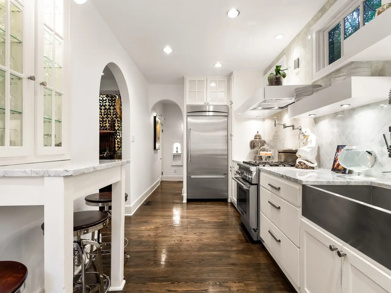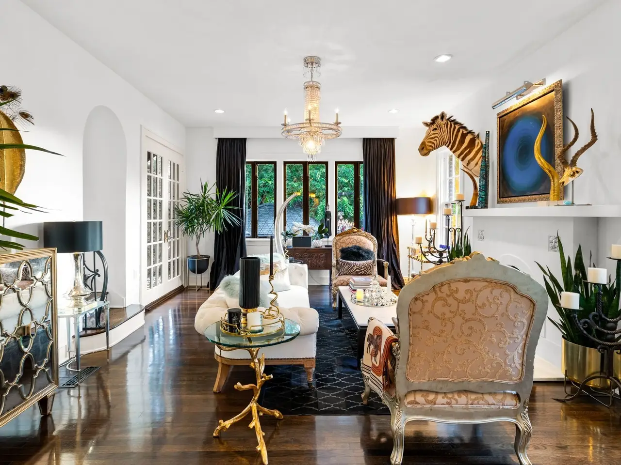 Nestled on a cul-de-sac in the highly sought-after area of Kessler Park, this 1927 Tudor has been renovated with every attention to detail including updates and quality finishes throughout. The homes Tudor charm is restored with subtle Gothic elements and Old Hollywood design for today's living and entertaining. The neighborhood's topography, historic architecture, placement of homes on irregular shaped lots with winding streets, like this home, is unlike anything in Dallas. Primary suite is a resort in itself, with wall of windows which open fully to a private terrace with entertainment bar and outdoor living areas. Suite features gas fireplace, speakeasy and intimate media room. Primary suite bath features oversized shower with steam unit and Velux fresh air skylights. Entertaining areas outside offer a relaxing oasis with an intimate pool that has three functions: pool with chilling feature, a heated jetted spa with extra jet power built in, and when not used as a pool or spa, it is the centerpiece with multiple fountain features. Watch your favorite shows from the built-in TV while at the pool, multiple seating areas with outdoor gas fireplace. Multiple private outdoor areas to enjoy the beautiful gardens, extensive landscaping and nature. Resort-style living and a magical place to entertain and call home.