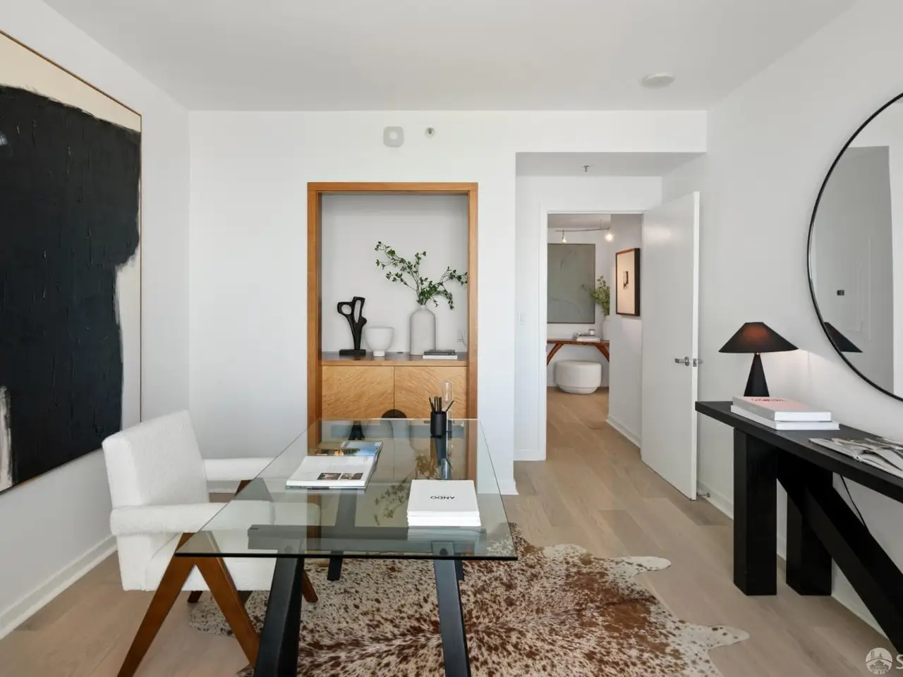 Experience luxe high-rise living in this exceptional 3 bedroom, 2 bath home with sweeping views of the Bay, Bay Bridge, and sparkling City skyline. The formal entrance is a perfect gallery to showcase art and leads to an expansive living area surrounded by floor-to-ceiling windows framing breathtaking views of the Bay Bridge and beyond. Open to the living and dining areas, the chef's kitchen is outfitted with Studio Becker cabinetry, Thermador and Bosch appliances, stone countertops, and a custom island with bar top. New hardwood flooring runs throughout the living space, while custom window treatments provide both light control and privacy. Primary suite with custom walk-in closet and a spa-inspired bath with dual vanities, walk-in shower, soaking tub, and stunning skyline views. Secondary bedrooms enjoy awe-inspiring Bay Bridge views and easy access to the adjacent full bath. Also incl. central A/C, in-unit washer/dryer, built-in speakers and garage parking for 2 cars with EV charger! Infinity's world-class amenities incl: 5,000 sq ft gym, 75-foot indoor pool and spa, sauna, private theater, business center, conference rooms, club lounge w/catering kitchen and bar, outdoor fire pits, 24-hour concierge and security.