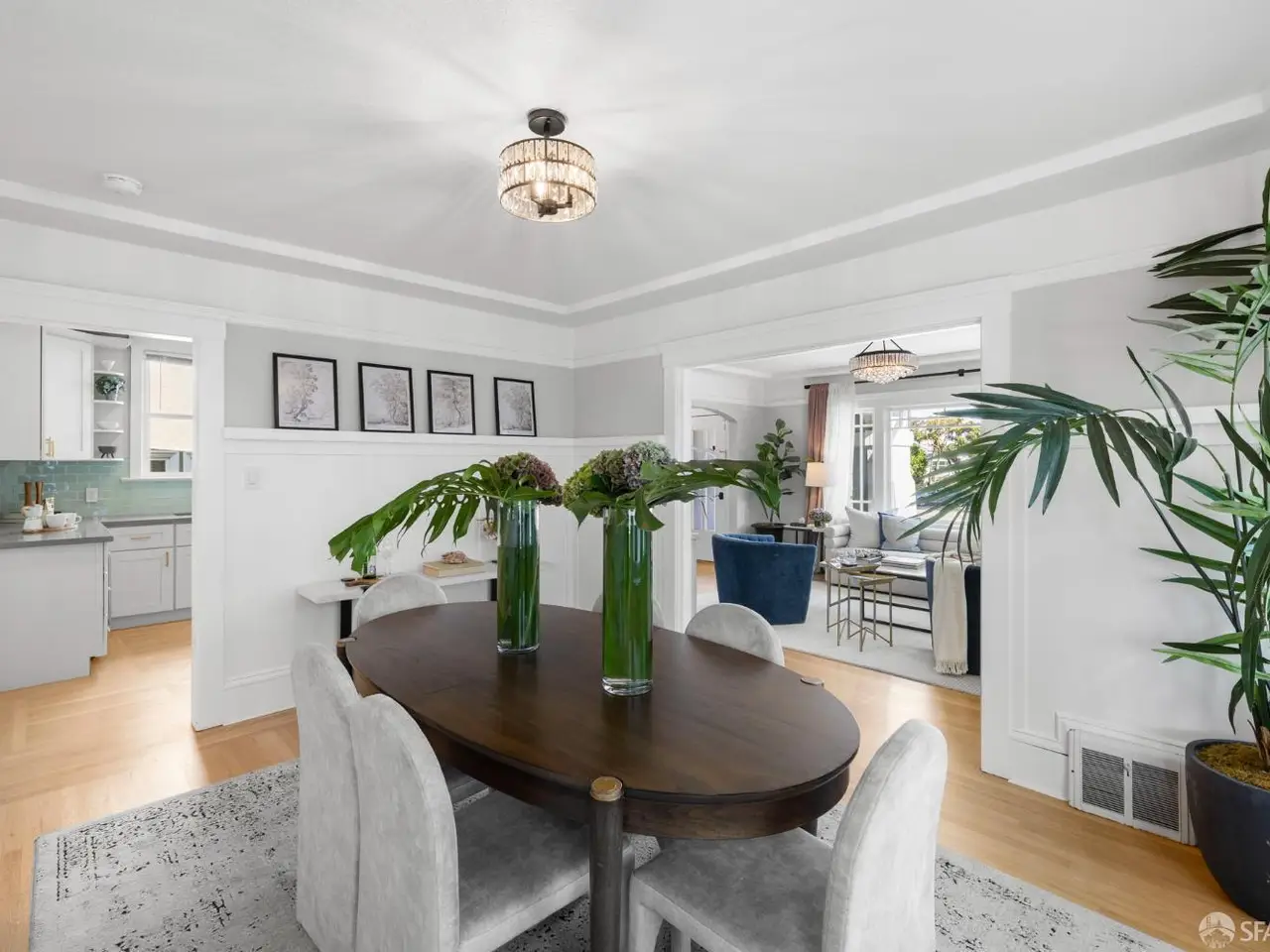 Life in Westwood Park feels like a hidden retreat in the heart of San Francisco; tree-lined streets, historic architecture, and a sense of calm that's hard to find in the city. This fully detached, beautifully renovated 4-bedroom, 2-bathroom home blends this rare setting with modern comfort. Inside, the light-filled living room, with its graceful tray ceiling and wood-burning fireplace, invites cozy gatherings. The formal dining room, framed by original built-ins, flows to a renovated kitchen with quartz counters, stainless appliances, and gas range. Two spacious bedrooms and a remodeled bath with jetted tub complete the main level. Downstairs, a 2015 permitted renovation added two bedrooms, a spa-inspired bath with dual vanity, laundry, and a family room opening to the elegantly landscaped yard complete with fire pit, string lighting, and seating, perfect for entertaining under the stars. Refinished hardwood floors, double-pane windows, and preserved period details elevate every space. Minutes from Whole Foods, the public library, Ocean Avenue cafes and shops, and easy freeway access. Epoxy-finished garage with EV charger plus driveway parking.