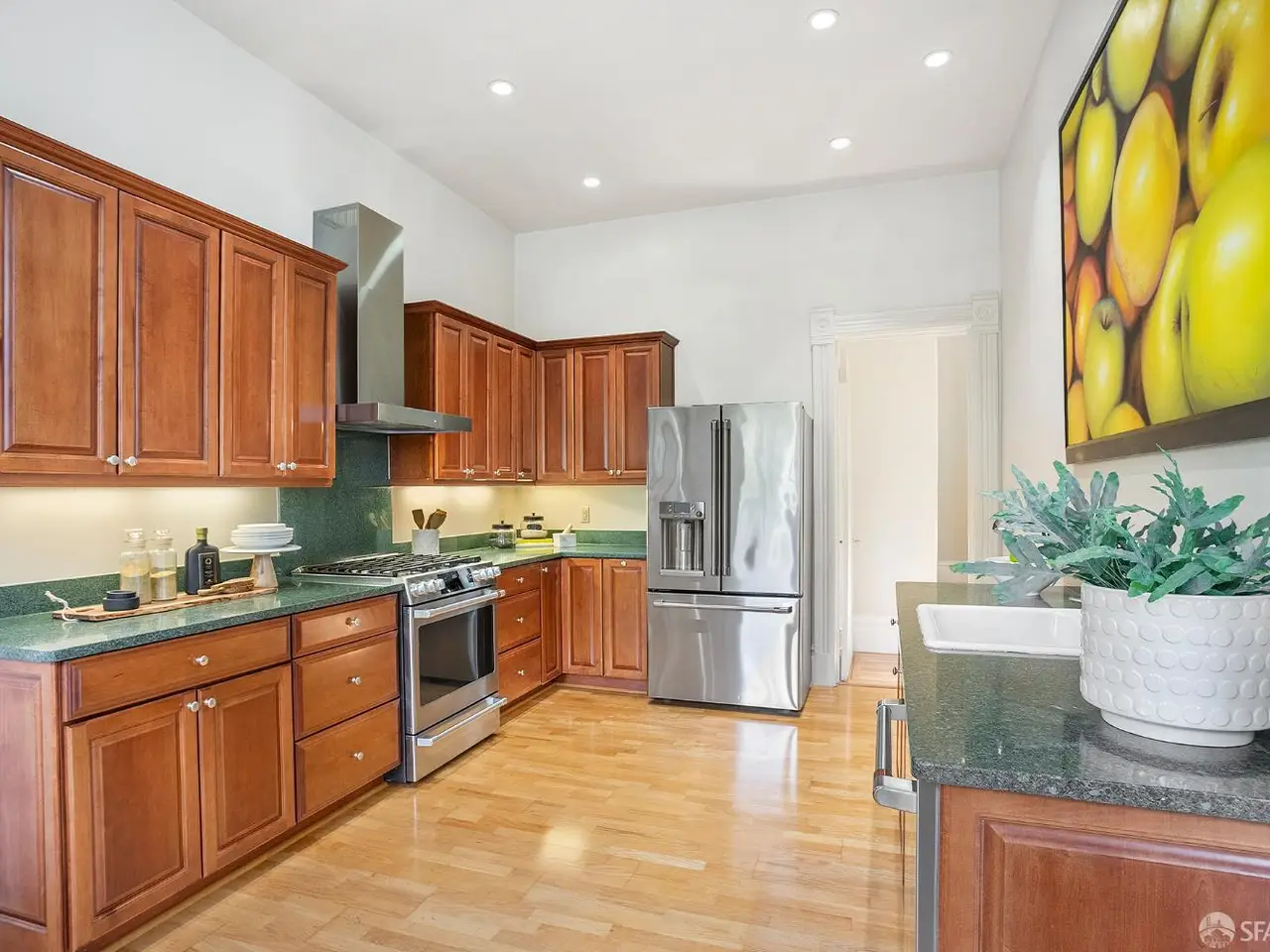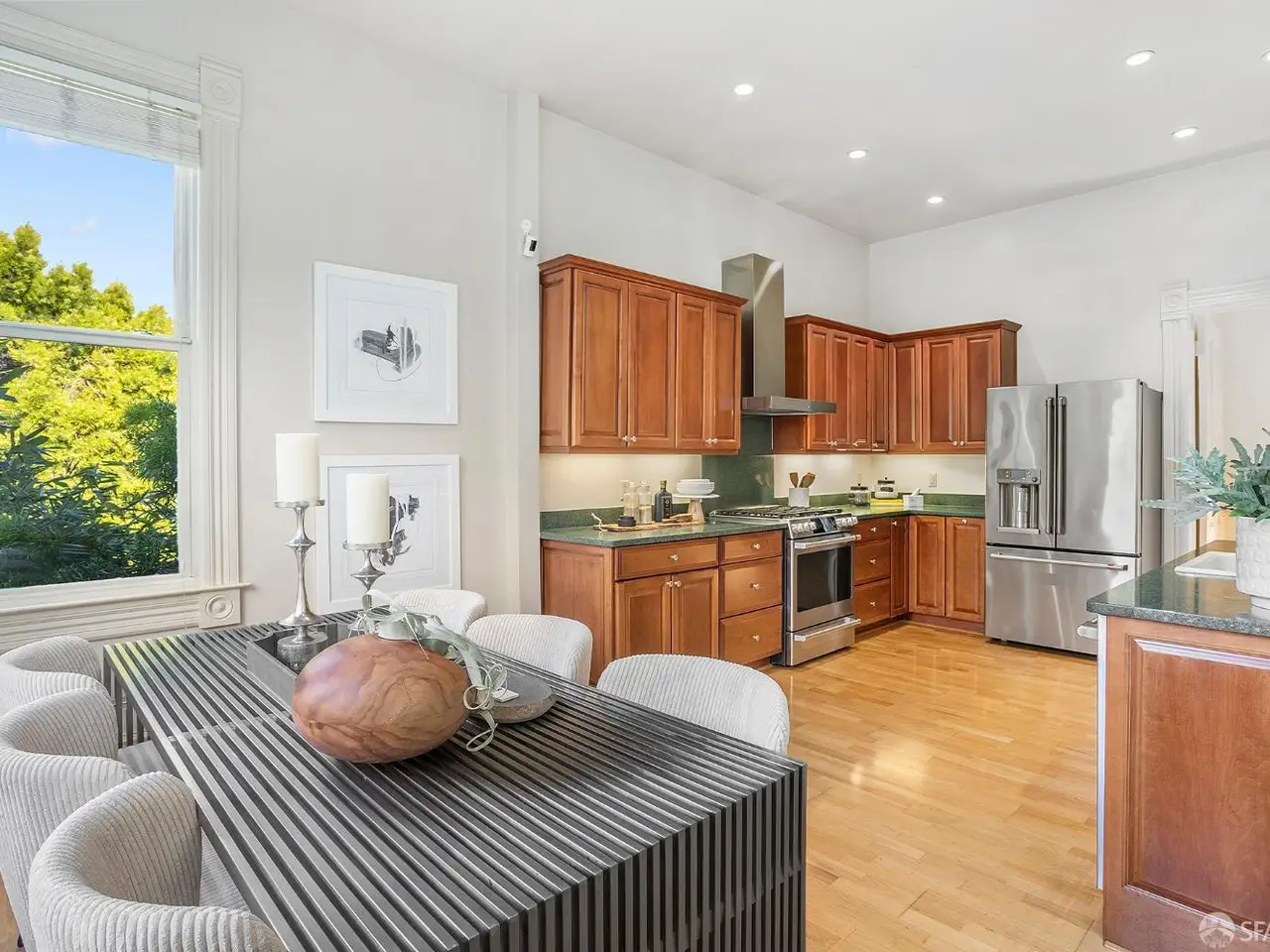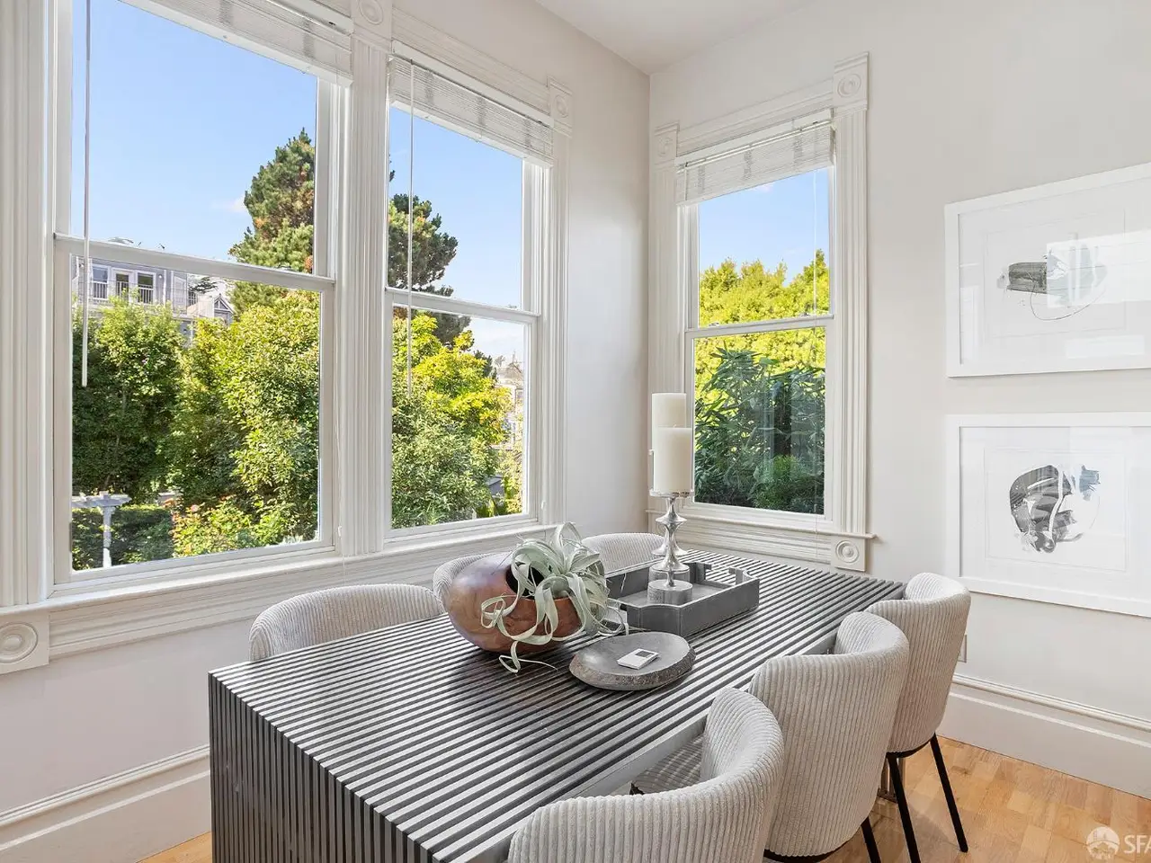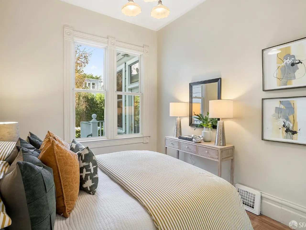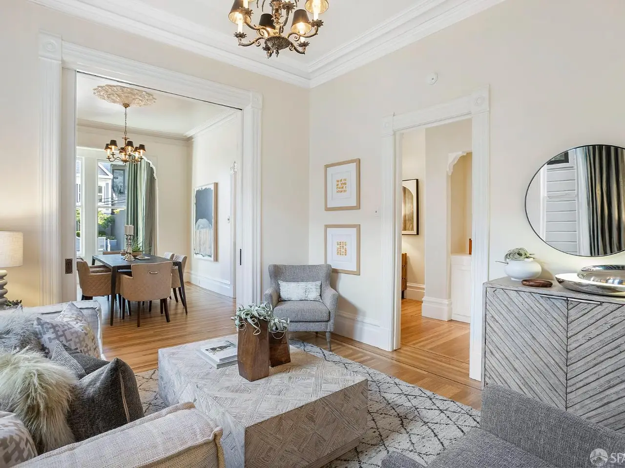 A seamless blend of San Francisco's Victorian charm and modern sophistication, this beautifully renovated residence offers timeless elegance, updated comfort, and a private outdoor oasis; all within one of the city's most desirable neighborhoods. High ceilings, wood floors, and abundant natural light define the main level. The living & dining rooms feature large windows & a beautiful decorative fireplace. Original moldings, doors, and waincotting have been meticulously preserved. The chef's kitchen is a showpiece with custom cabinetry and an eating area surrounded by tall windows that overlook the professionally designed English garden with fountain, iron railings, flagstone patio and mature plantings that bloom year-round. Two ample bedrooms and a classic renovated full bath complete the upper level. The lower level has direct street access with good ceiling height, wood floors & French doors to the garden. This level boasts a bedroom, stylish full bath, office area & bonus yoga/exercise room. An attached garage offers ample storage, washer/dryer & one car parking. A newer water heater, roof & upgraded electrical panel offer system upgrades.