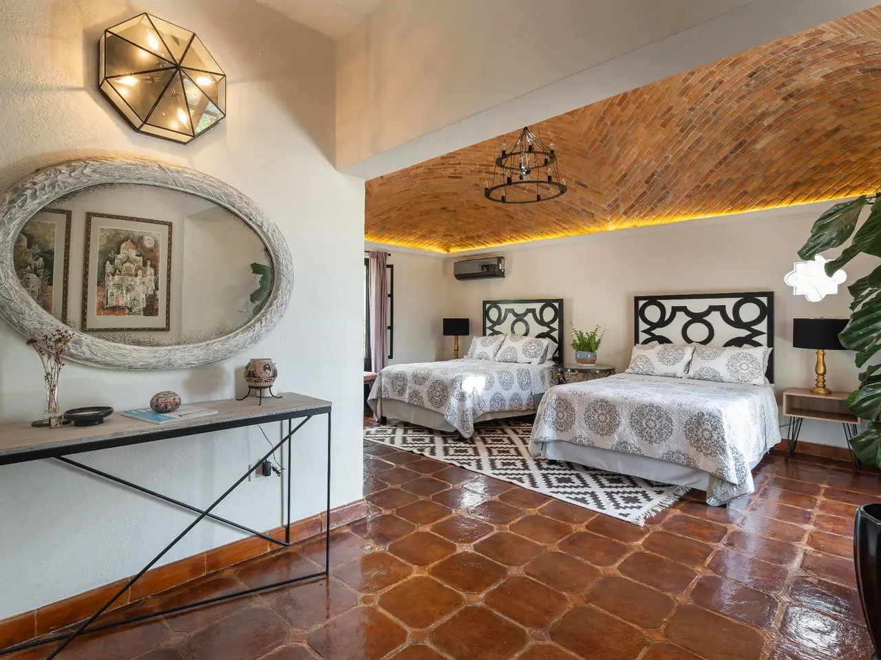 Welcome to Casa Oasis, a Modern Colonial gem tucked away on one of the most coveted streets in Colonia Atascadero—one of San Miguel de Allende’s most desirable neighborhoods. As you enter through the antique wooden doors, you’re welcomed by a beautifully landscaped garden featuring a serene pool, a covered loggia, and an inviting outdoor dining area. It’s a peaceful sanctuary that sets the tone for the elegance and tranquility found throughout the home. Inside, the residence has been thoughtfully updated to blend timeless charm with modern sophistication. Flooded with natural light, the interiors feel bright, open, and effortlessly comfortable. At the heart of the home, the spacious gourmet kitchen, dining room, and sunken living room all look out toward the lush gardens, creating a seamless connection between indoor and outdoor living. Whether preparing meals in the well-appointed kitchen or relaxing in the living room, you’re constantly surrounded by beauty and light. A stylish bar—complete with a wine refrigerator—adds the perfect touch for entertaining and opens directly to the outdoor dining area, making gatherings both easy and memorable. The main house features two spacious bedrooms, each with its own en-suite bathroom. Between them lies a versatile space ideal for a home office, den, or reading nook. The primary suite features a private sitting area that opens onto two terraces with lovely views—ideal for morning coffee or an evening under the stars. For guests, a separate casita offers a private retreat, complete with its charm and space to unwind. Although just a 15-minute walk (albeit a charmingly hilly one) from the lively Jardín, Casa Oasis feels a world apart—offering privacy, serenity, and sweeping views that only Atascadero can provide yet minutes from centro.