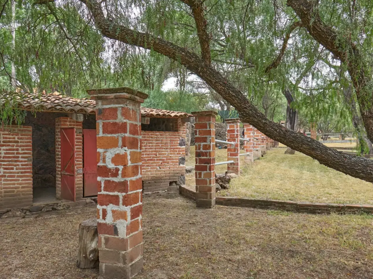 Riding pen and horse stalls