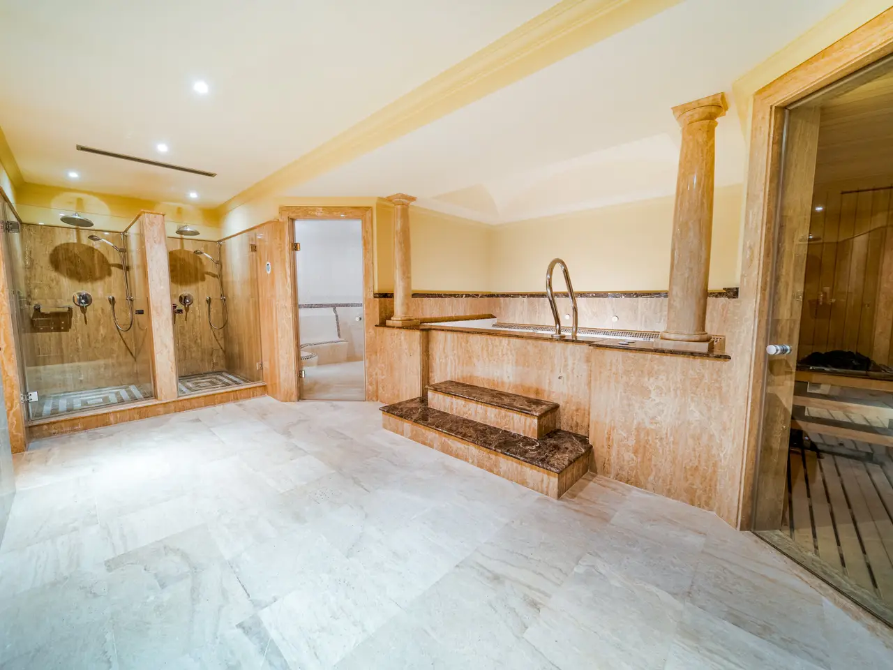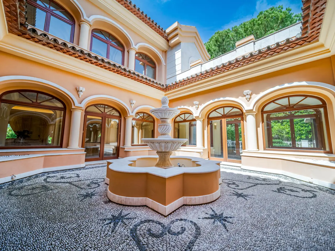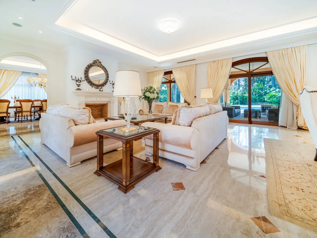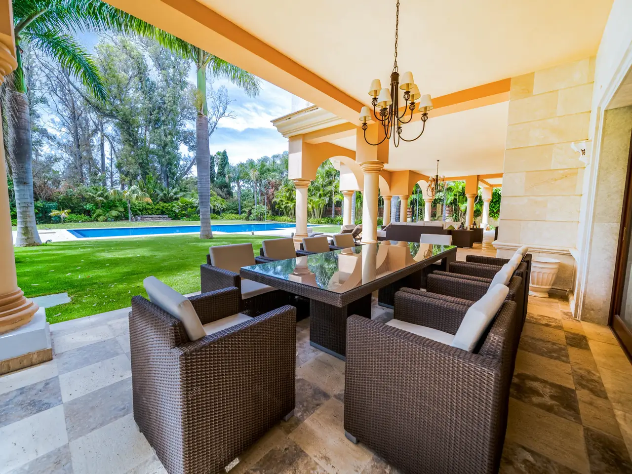 This stunning beachside residence is a rare gem for those in search of refined coastal living. Nestled on a generous plot of nearly 5,000 m², the villa spans around 2,000 m² of beautifully designed living space that blends contemporary Andalusian charm with a touch of imperial elegance. Located in the prestigious and peaceful enclave of Guadalmina Baja, just a short stroll from the shoreline, the property offers a serene escape for those who cherish sea breezes, sunshine, and the gentle rhythm of coastal life. The home features eight well-appointed bedrooms with partial sea views, a formal dining room, a spacious living area, and the convenience of a private lift. The lower level is dedicated to leisure and wellness, boasting a fully equipped gym, a luxurious spa complete with sauna, jacuzzi, Turkish bath, and ice fountain, as well as a cinema room, wine cellar, and billiards lounge. Highlights of this exceptional property include underfloor heating throughout, an advanced smart home system, and solar panels that support energy efficiency. Outside, lush tropical gardens surround the home, creating a tranquil oasis. A large heated swimming pool, a picturesque pond with waterfall, and a shaded summer pergola beneath mature palm trees offer the perfect setting for relaxation and outdoor enjoyment. The estate also features full perimeter security, a six-car garage, and separate staff quarters for added privacy and comfort. Set within one of the most sought-after beachside communities near Marbella, this is a truly one-of-a-kind opportunity to embrace the most exclusive lifestyle the Costa del Sol has to offer.
