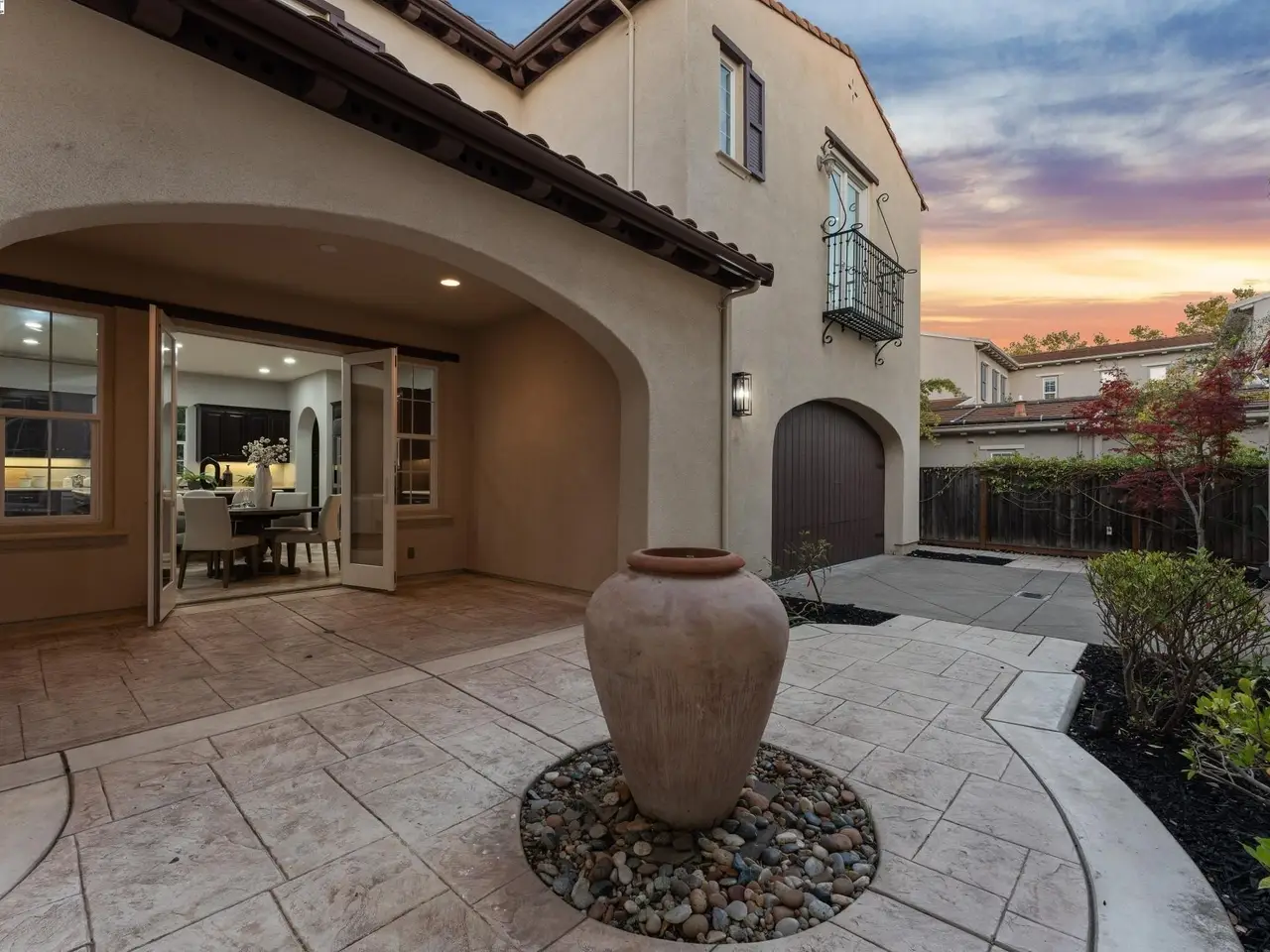 French doors opening to courtyard