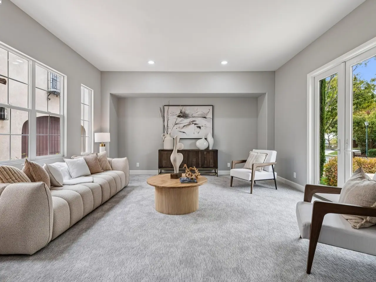 French doors opening to courtyard