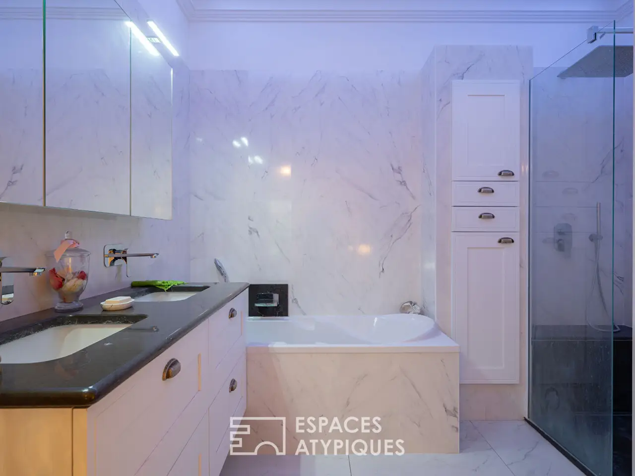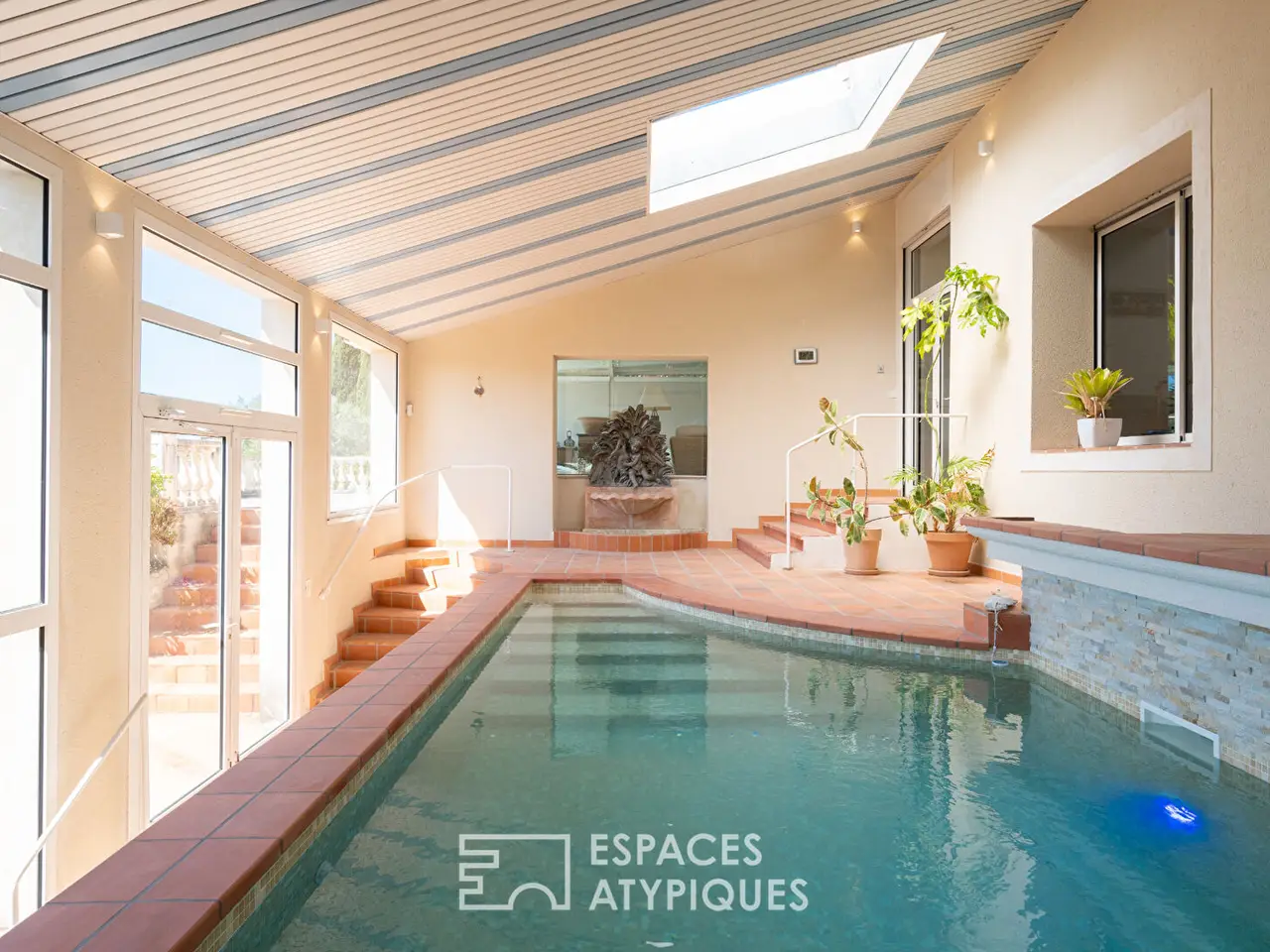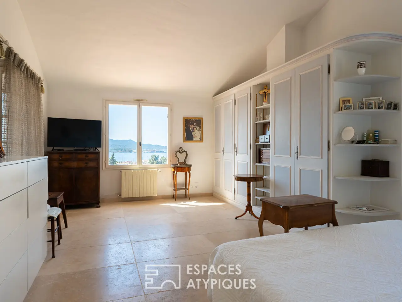 Vue mer et village a pied A few minutes walk from the village, this Provencal style villa offers a beautiful sea view overlooking Sanary. The premises offer generous volumes with a living area of approximately 300 m2. The entrance opens onto a first north-facing summer lounge opening onto a shaded terrace to enjoy this space as you wish. Continuing, the main living space is organized around a double living room with an open high-end kitchen, a lounge with fireplace before accessing a veranda welcoming a lounge to enjoy the view of the sea and the the roofs of the village of Sanary with its famous 'square tower'. The living room gives access to a heated indoor swimming pool to enjoy it all year round. The level is completed by two bedrooms, a bathroom, two shower rooms, a sauna. A large space also offers the possibility of a layout for a very large bedroom, a games room or a creative workshop. Upstairs, a very large suite with its bathroom offers numerous possibilities with a sea view terrace. Possibility of creating an apartment with its own entrance. Carport for two vehicles. Double garage. Garden shed. Cellar. A property on the outskirts of Sanary offering a beautiful sea view and pedestrian access to the village center. Rare. 'ENERGY CLASS: D189 / CLIMATE CLASS: D30. Estimated average amount of annual energy expenditure for standard use, established based on energy prices for the year 2021: between EUR3,830 and EUR5,260' Additional information: * 7 rooms * 3 bedrooms * 1 bathroom * 3 shower rooms * Floor : 1 * 1 floor in the building * Outdoor space : 1800 SQM * Parking : 10 parking spaces * Property tax : 4 170 €